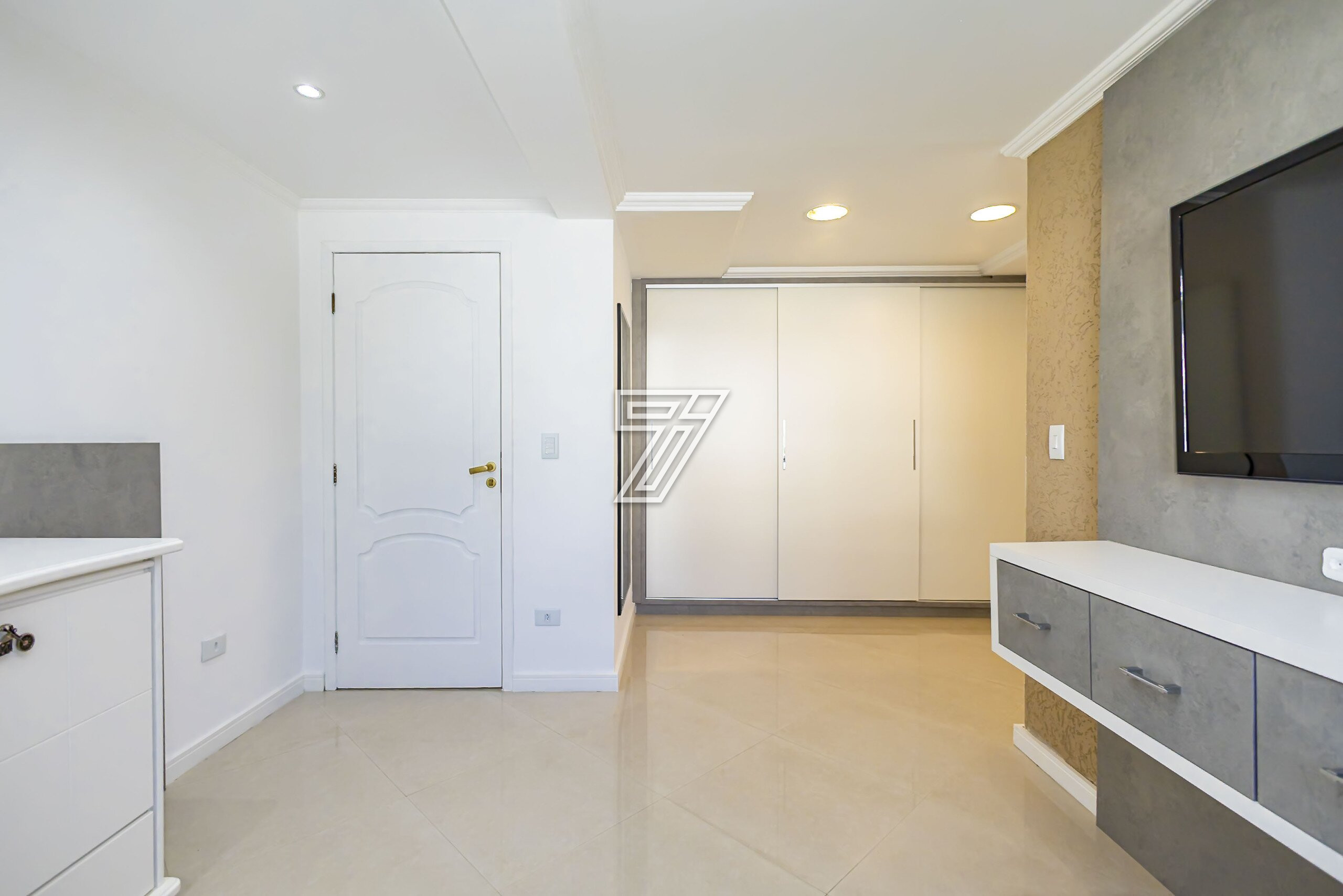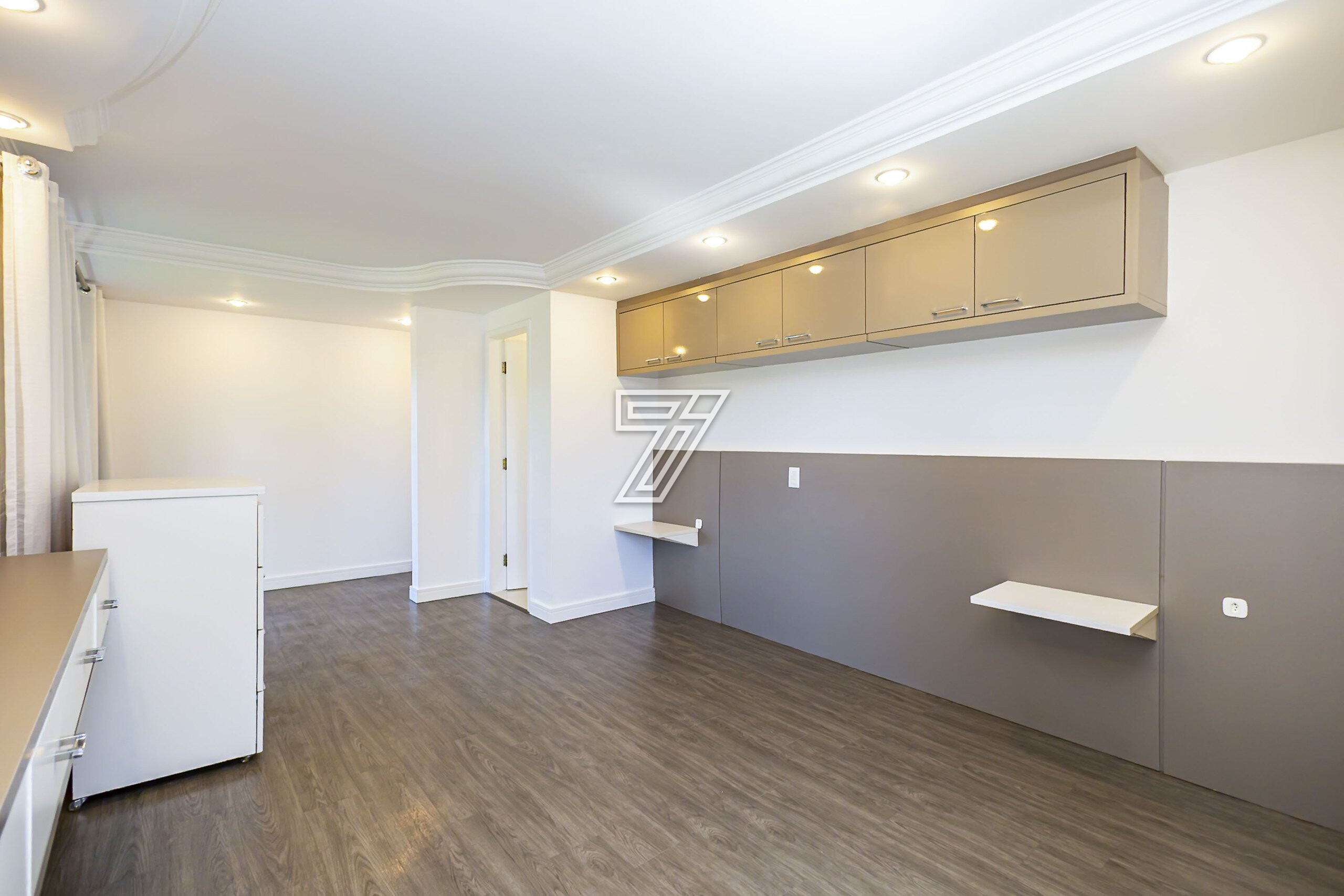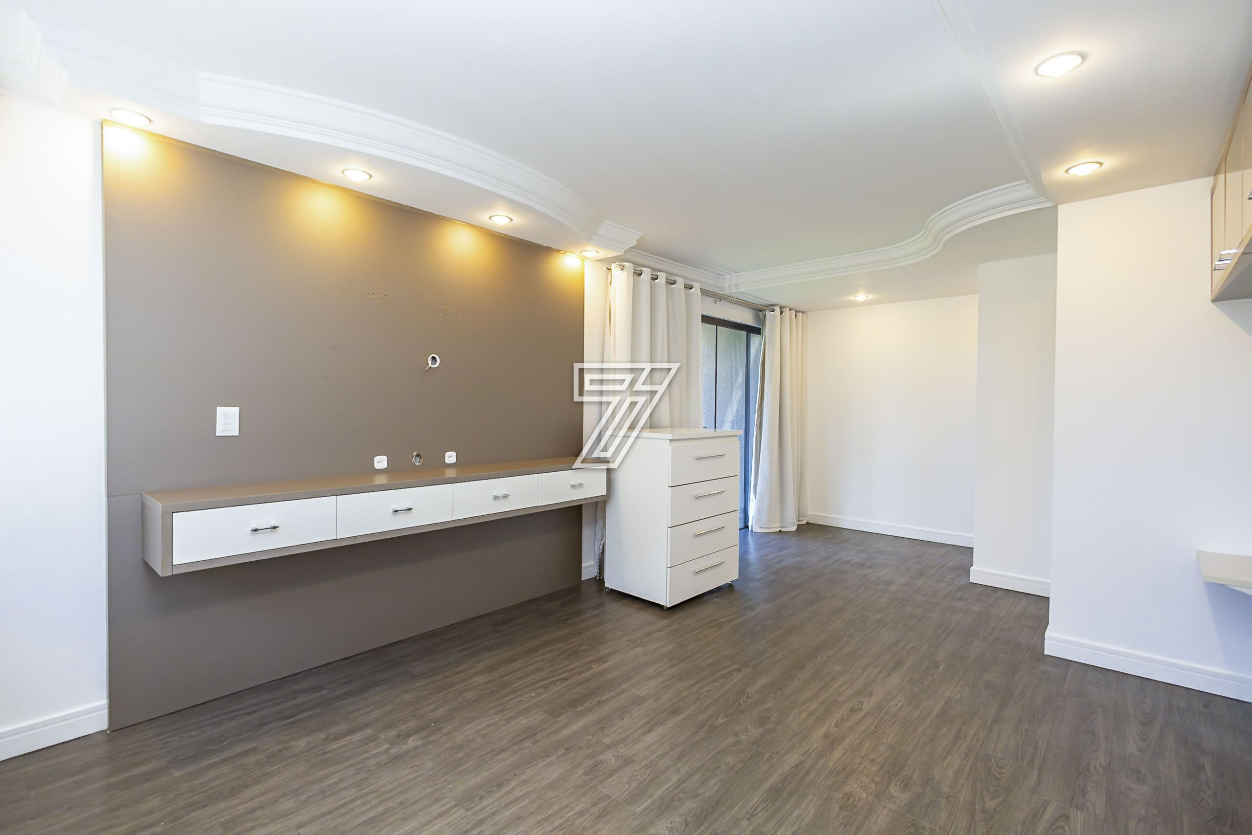 O living, distribuído em três ambientes, apresenta um espaço amplo e imponente, com pé-direito duplo, lustre decorativo, lareira e sancas em gesso com iluminação embutida, criando um ambiente acolhedor e perfeito para receber.