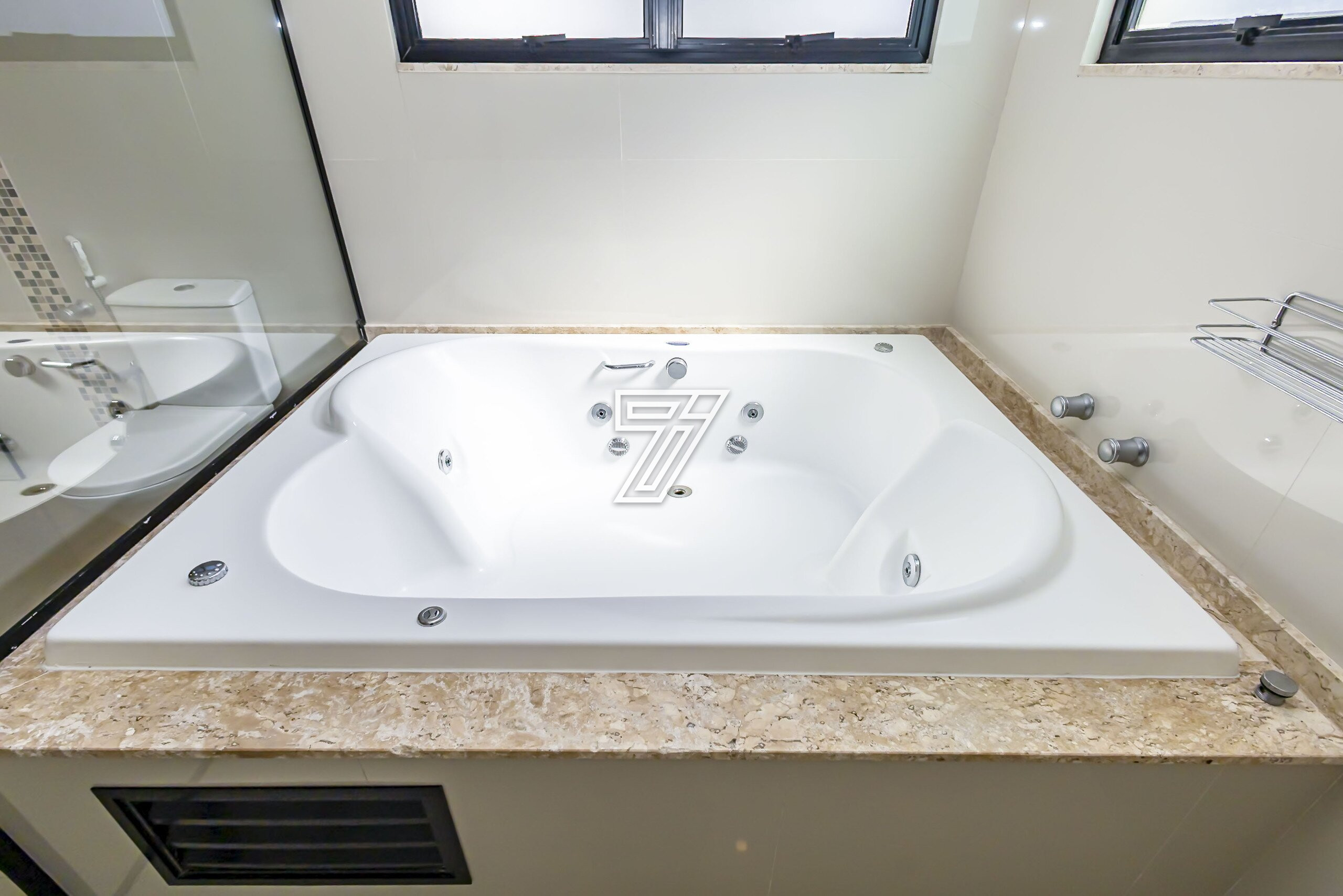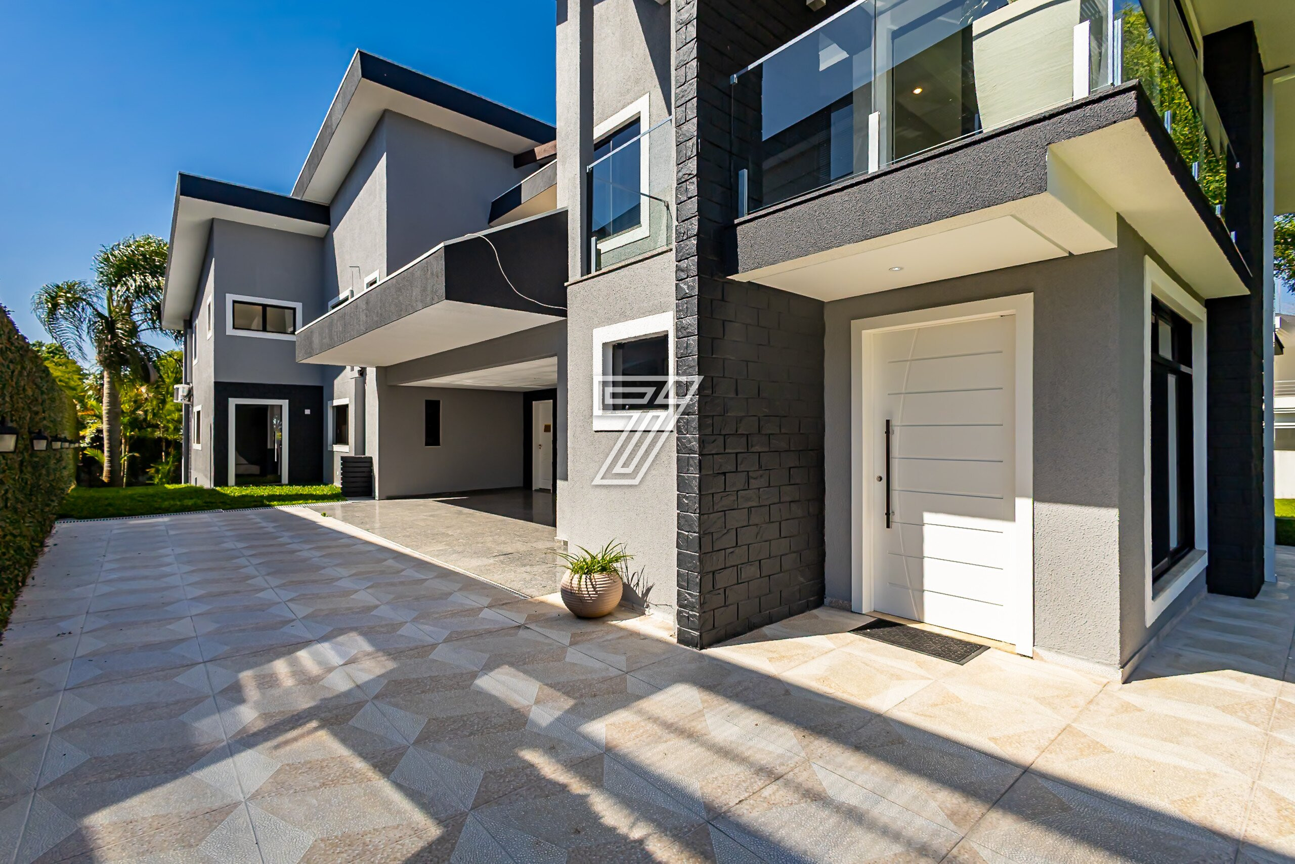 A casa conta com 5 suítes, incluindo uma suíte máster com sacada, banheira de hidromassagem e cuba dupla, proporcionando um verdadeiro refúgio de conforto e exclusividade.