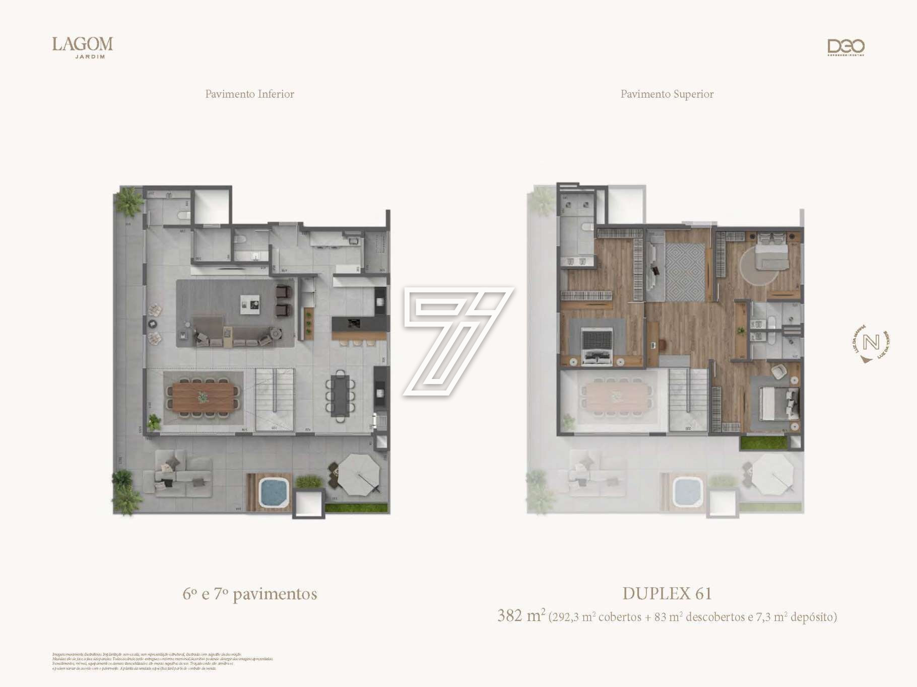 292,30m² de apartamento + 83m² de terraço + 7,30m² de depósito = 382m² privativos