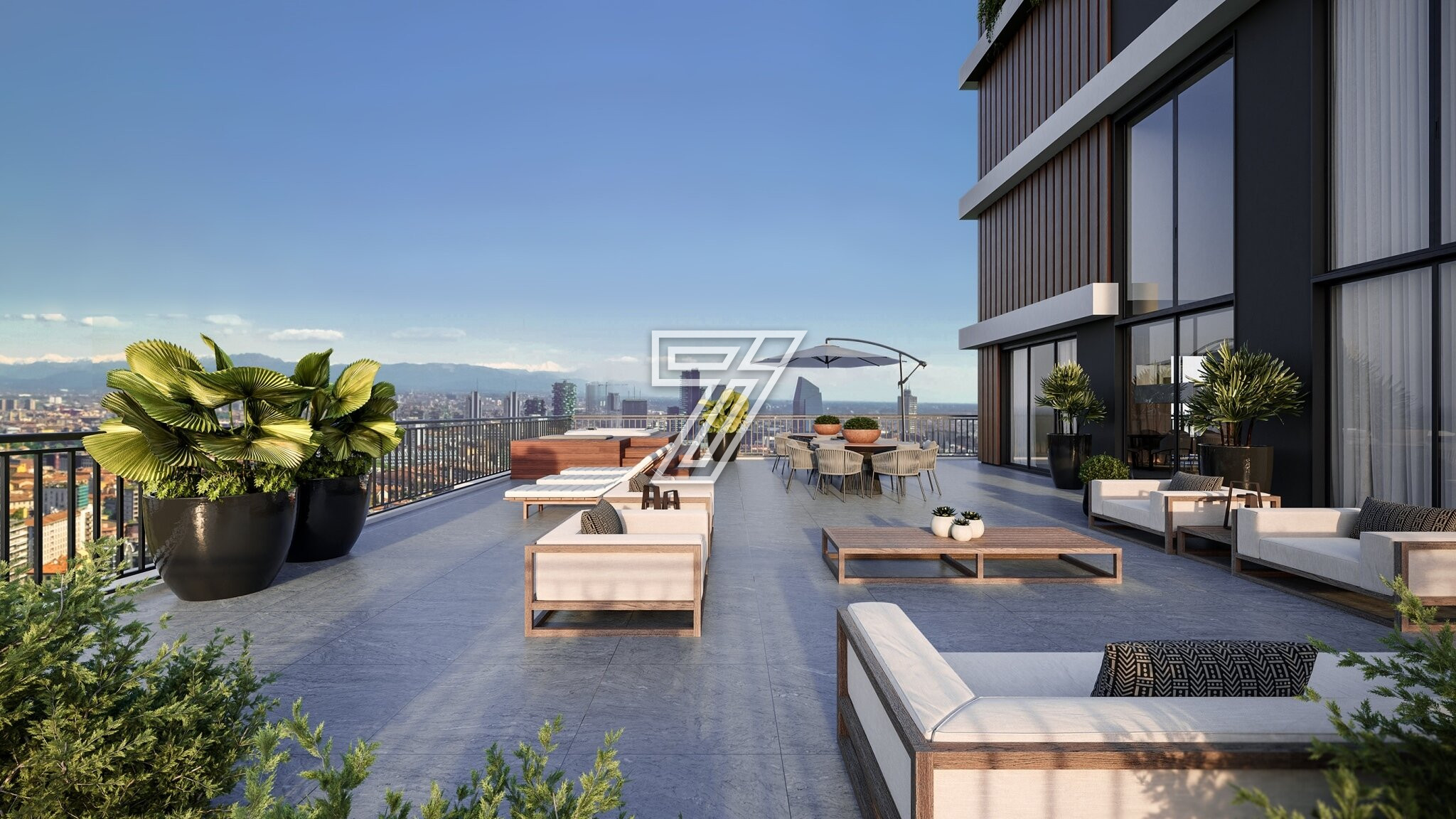 290,60m² de apartamento + 197,80m² de terraço + 7,30m² de depósito = 495m² privativos