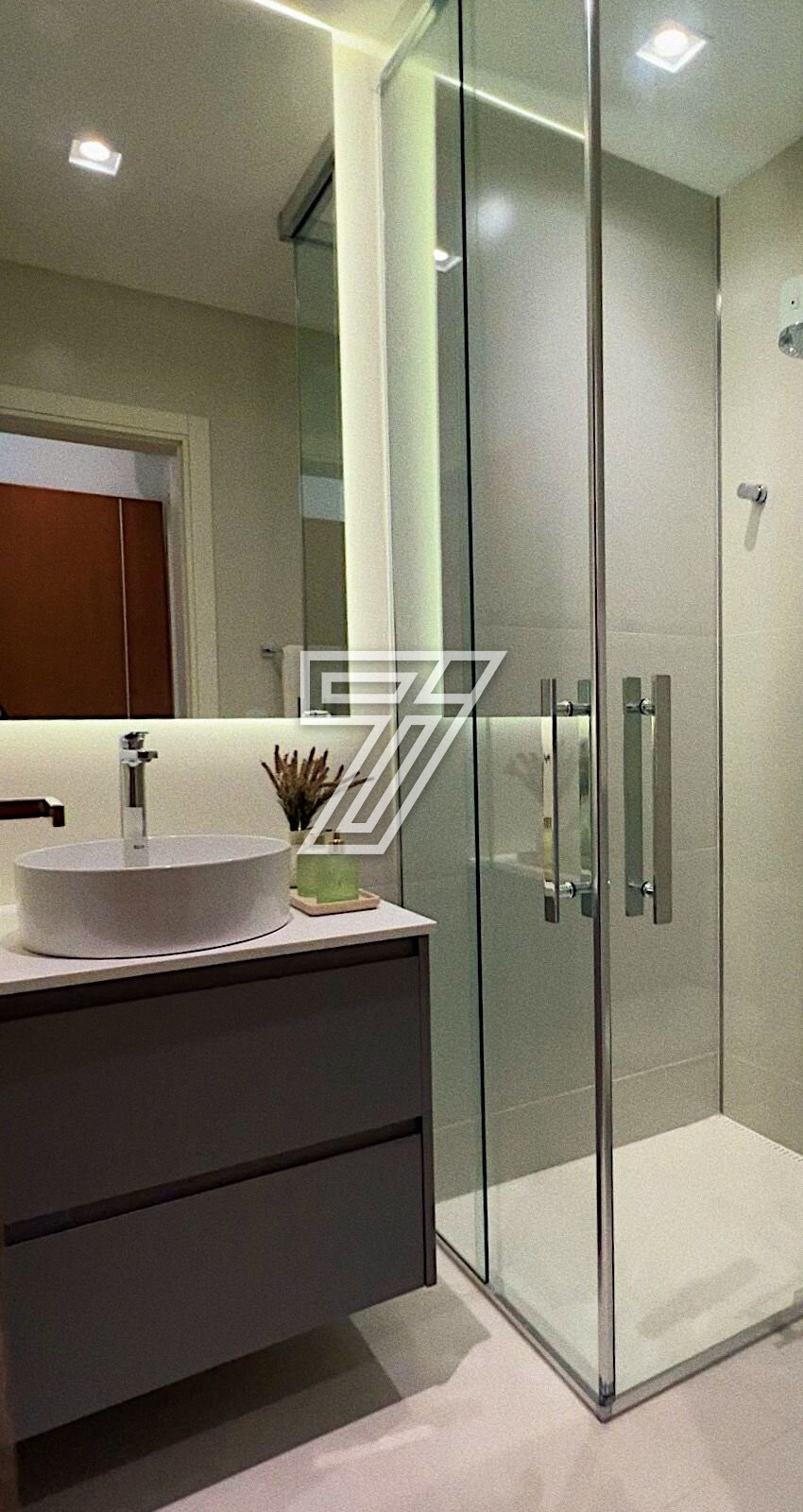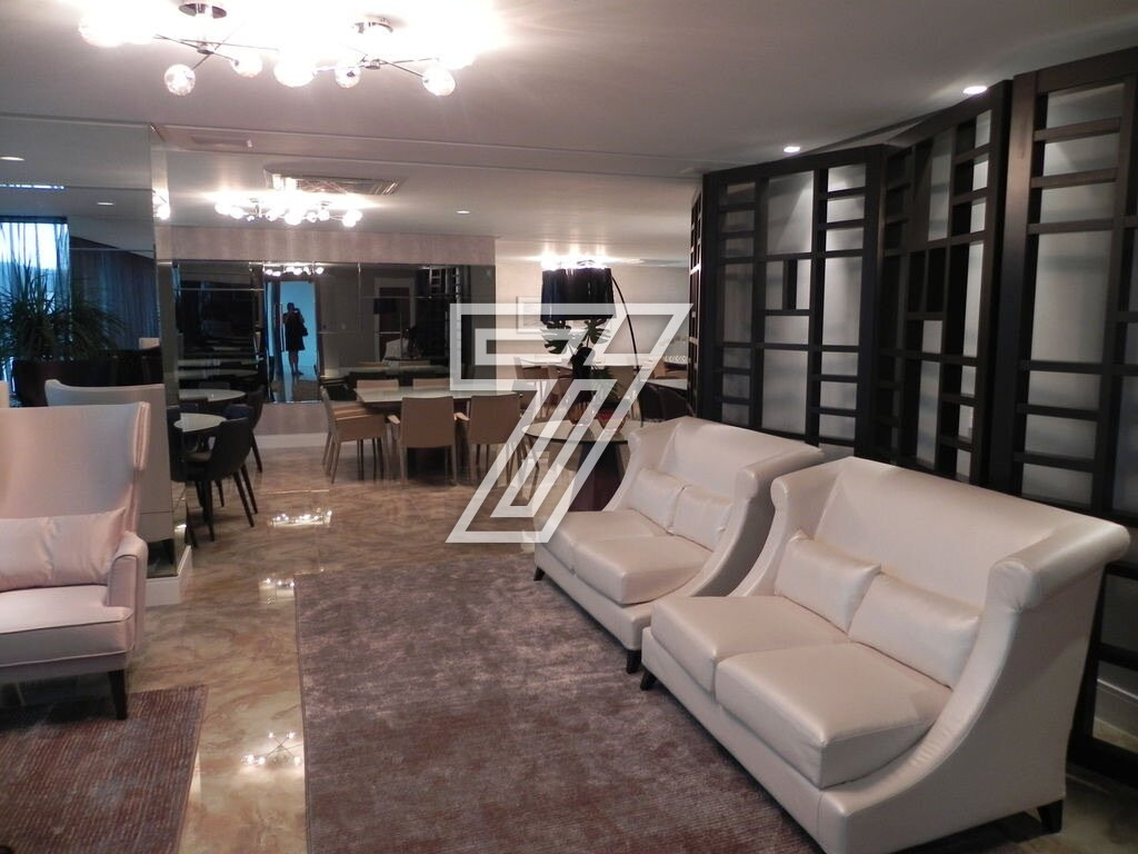 Apartamento novo, pronto para morar, com 182,80 m² privativos, totalmente mobiliado e decorado, porteira fechada, com ar condicionado em todos os cômodos, distribuídos em 3 suítes (suíte master com hidromassagem e closet), sala para 3 ambientes, elevador privativo, lavabo, cozinha integrada, dependência de empregada com banheiro, 3 vagas de garagem livres, box de praia, Marina para barco até 30 pés e heliponto.
