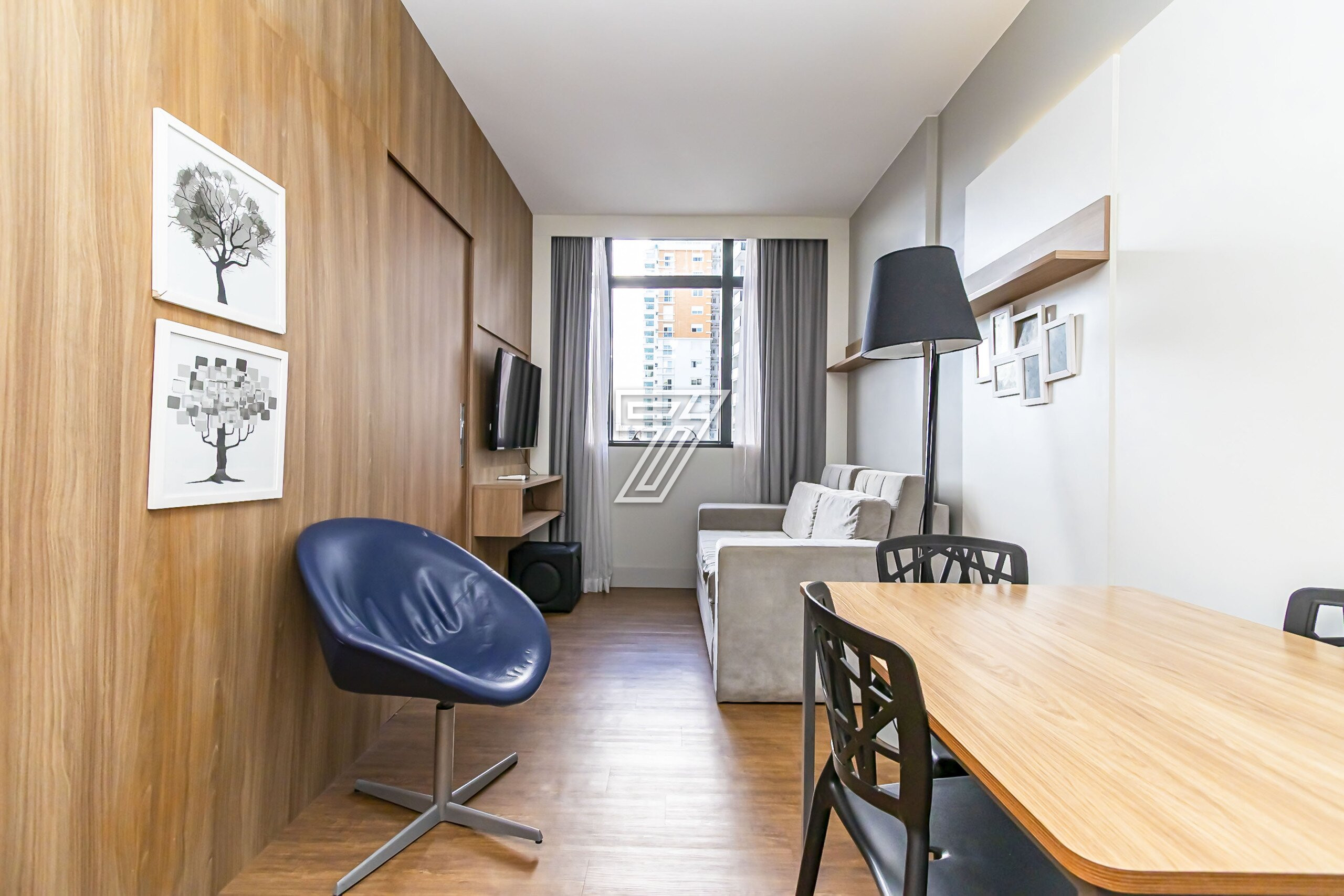 Apartamento de 1 quarto no Batel, mobiliado e decorado, andar alto, face oeste, com 36m² privativos!