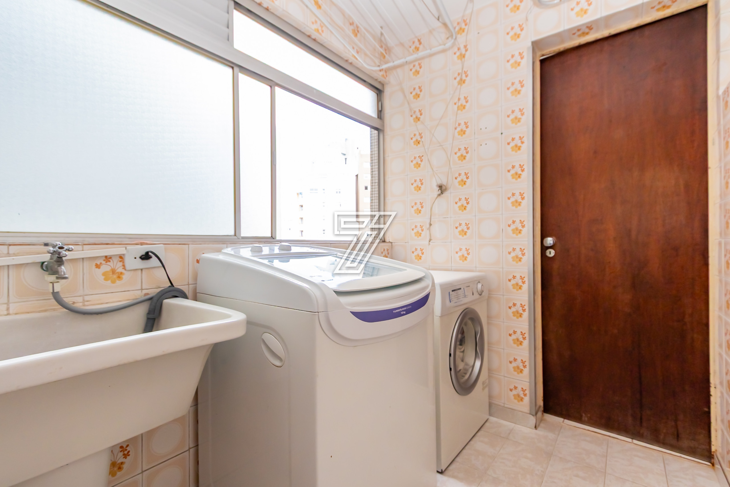 Com uma área privativa de 92m² e área total de 124m², o apartamento possui 3 dormitórios, sendo 1 suíte, uma sala ampla para dois ambientes, cozinha e área de serviço com banheiro. Fica em andar alto, tendo muita iluminação e ventilação natural.