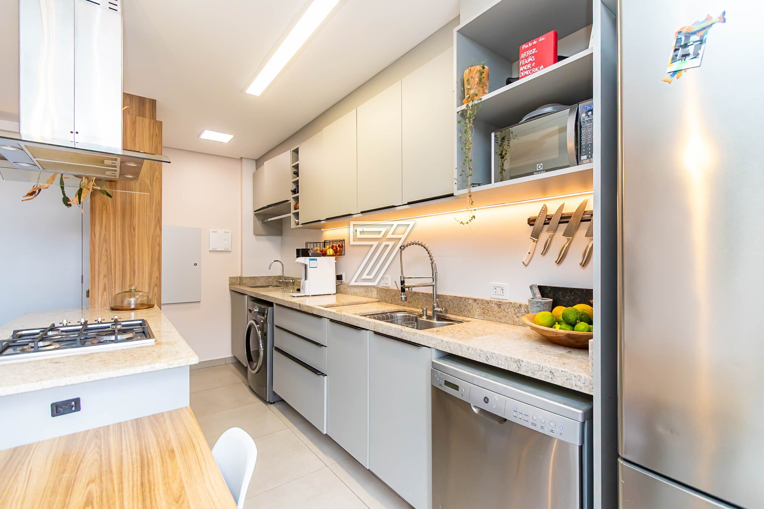 Charmoso apartamento compacto e mobiliado no Campo Comprido com 2 quartos sendo um suíte, com extensa varanda que interliga os quartos e com churrasqueira à carvão, cozinha mobiliada e integrada ao espaço de convívio, e 2 vagas paralelas com grande depósito na garagem. Área privativa de 68 m². Ideal para quem gosta de praticidade sem perder o encanto e sossego do bairro.