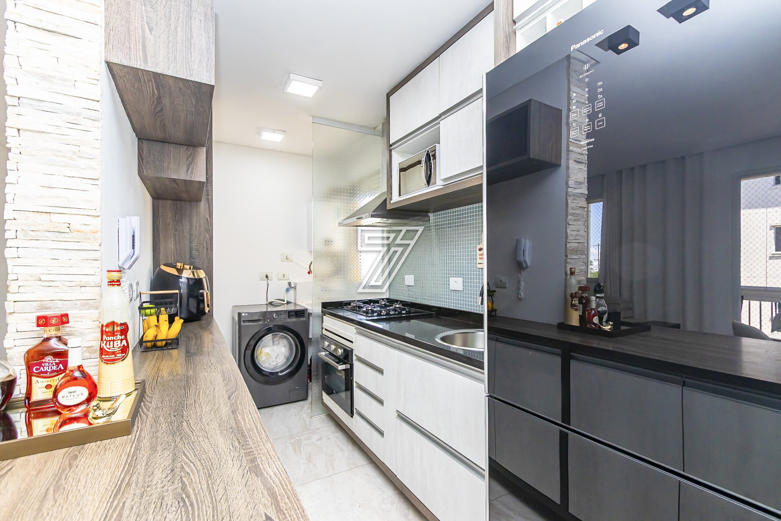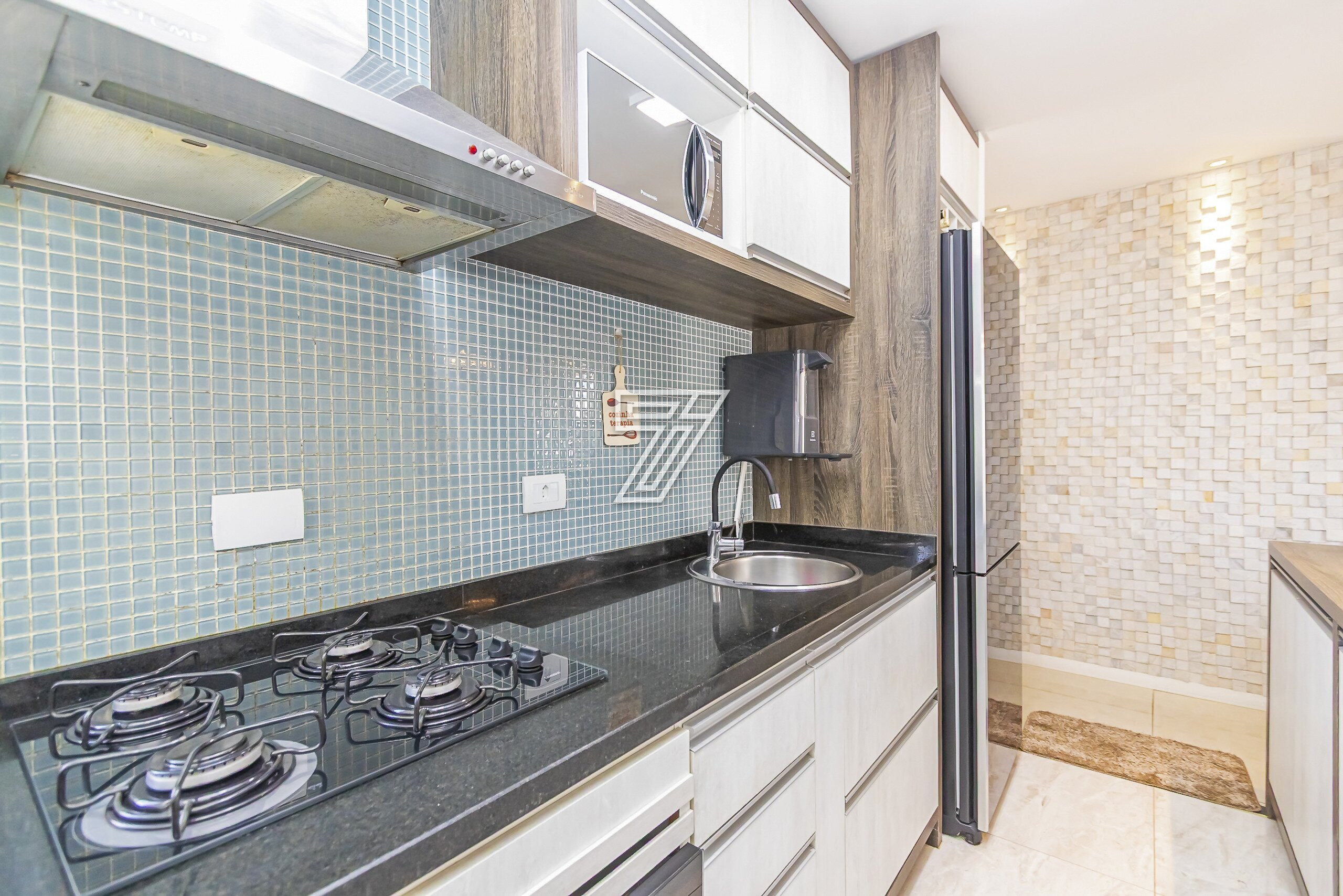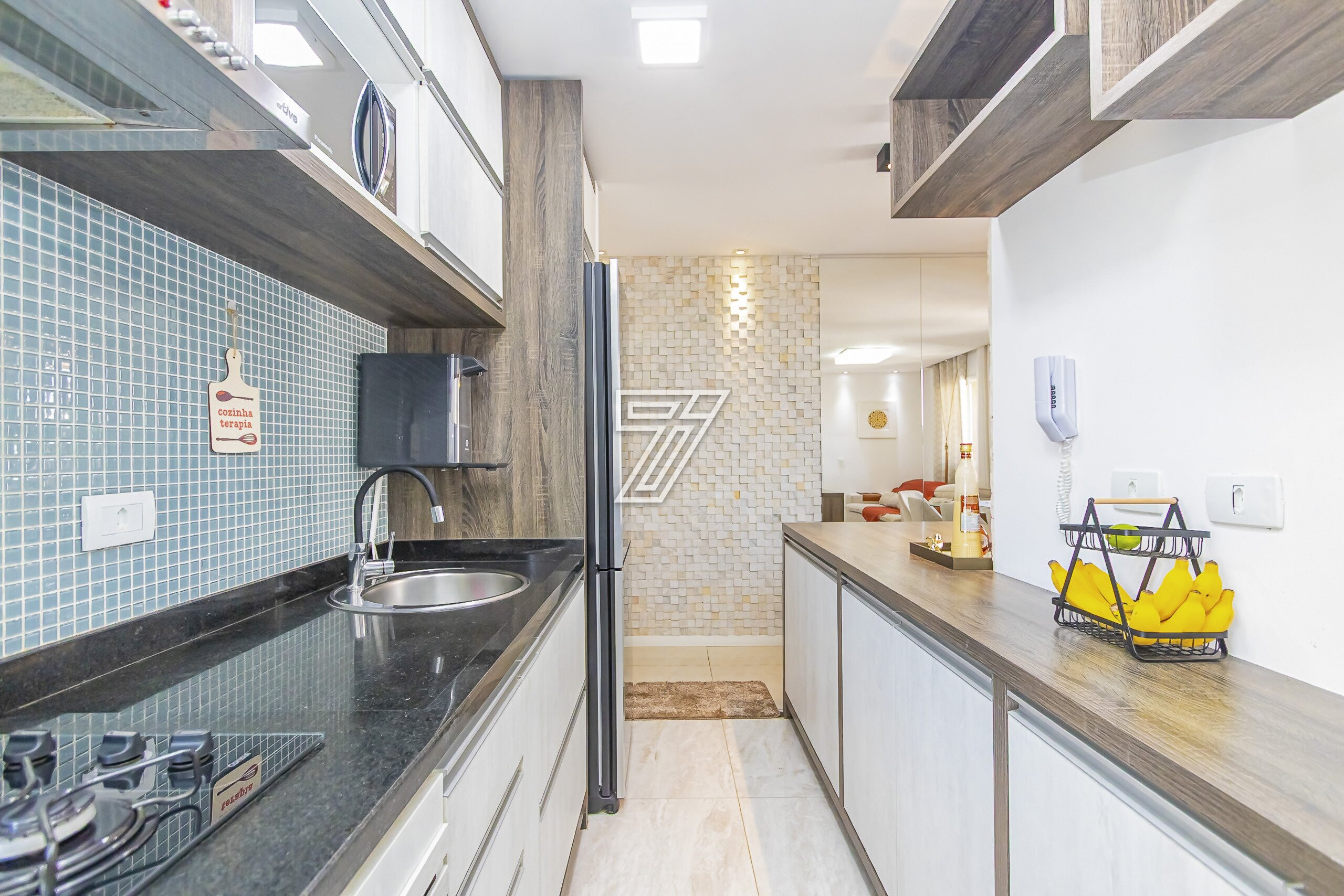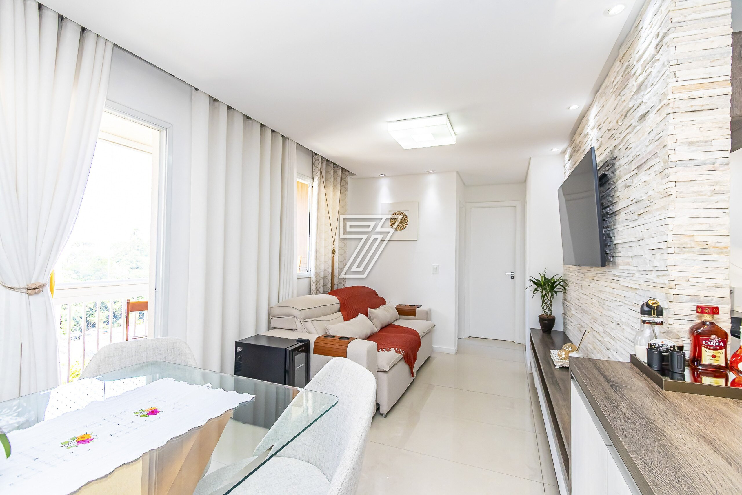 Apartamento semi mobiliado, andar alto, com excelente padrão de acabamento com 2 quartos com 57,33 de área privativa, ambientes integrados cozinha mobiliada estilo americano, piso em porcelanato, sala com painel parede revestida com pedra São Tomé filete, hall de entrada com pedra São Tomé 10 x 10 e espelho, teto rebaixando em gesso, com iluminação com uma sacada ampla com churrasqueira a carvão com sistema reiki, e armário planejado, quartos com ármarios planejados e piso laminado, quarto do casal completo cama embutida, banheiro com ventilação natural e sistema a gás, com pedra revestida São Tomé, entrar e morar