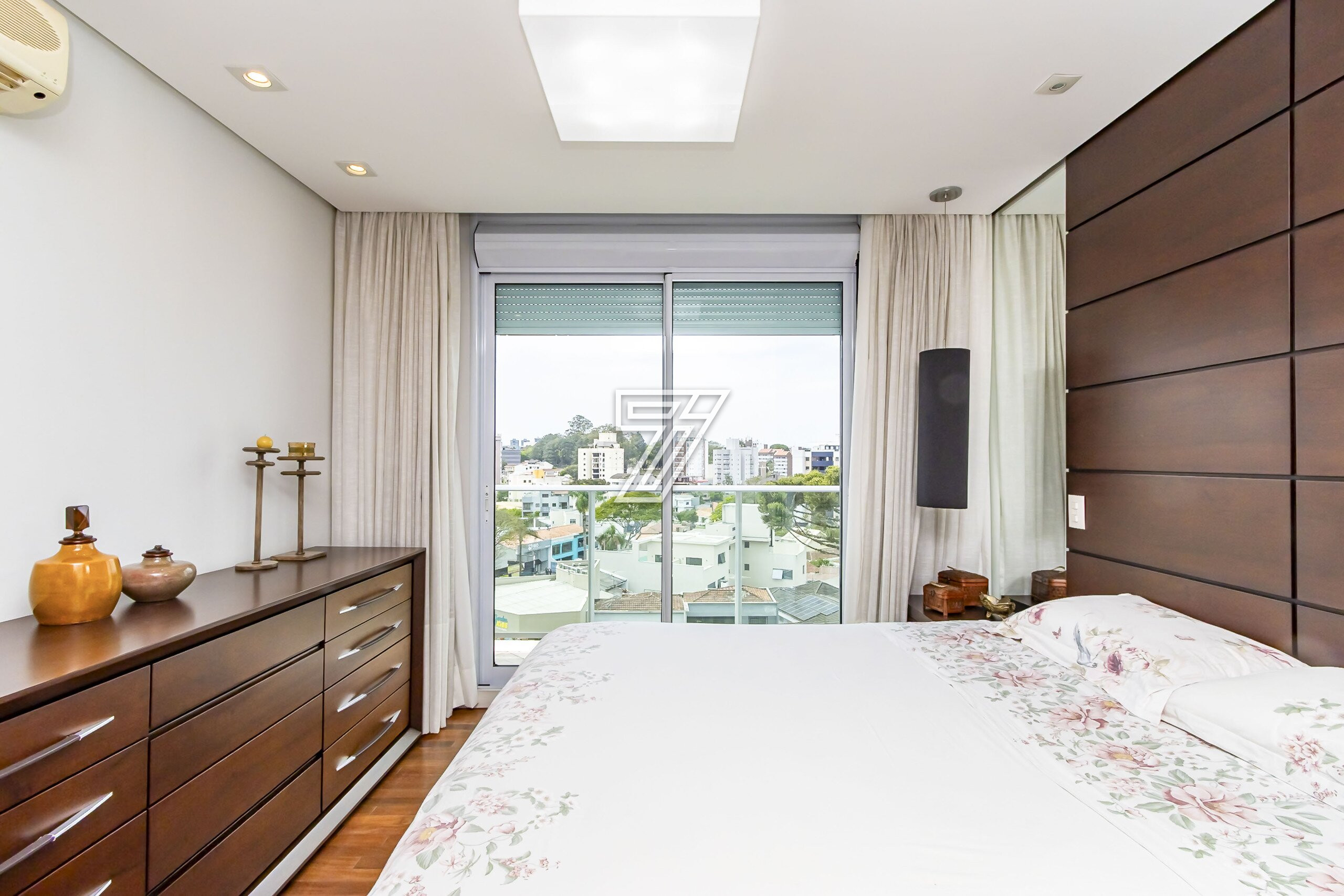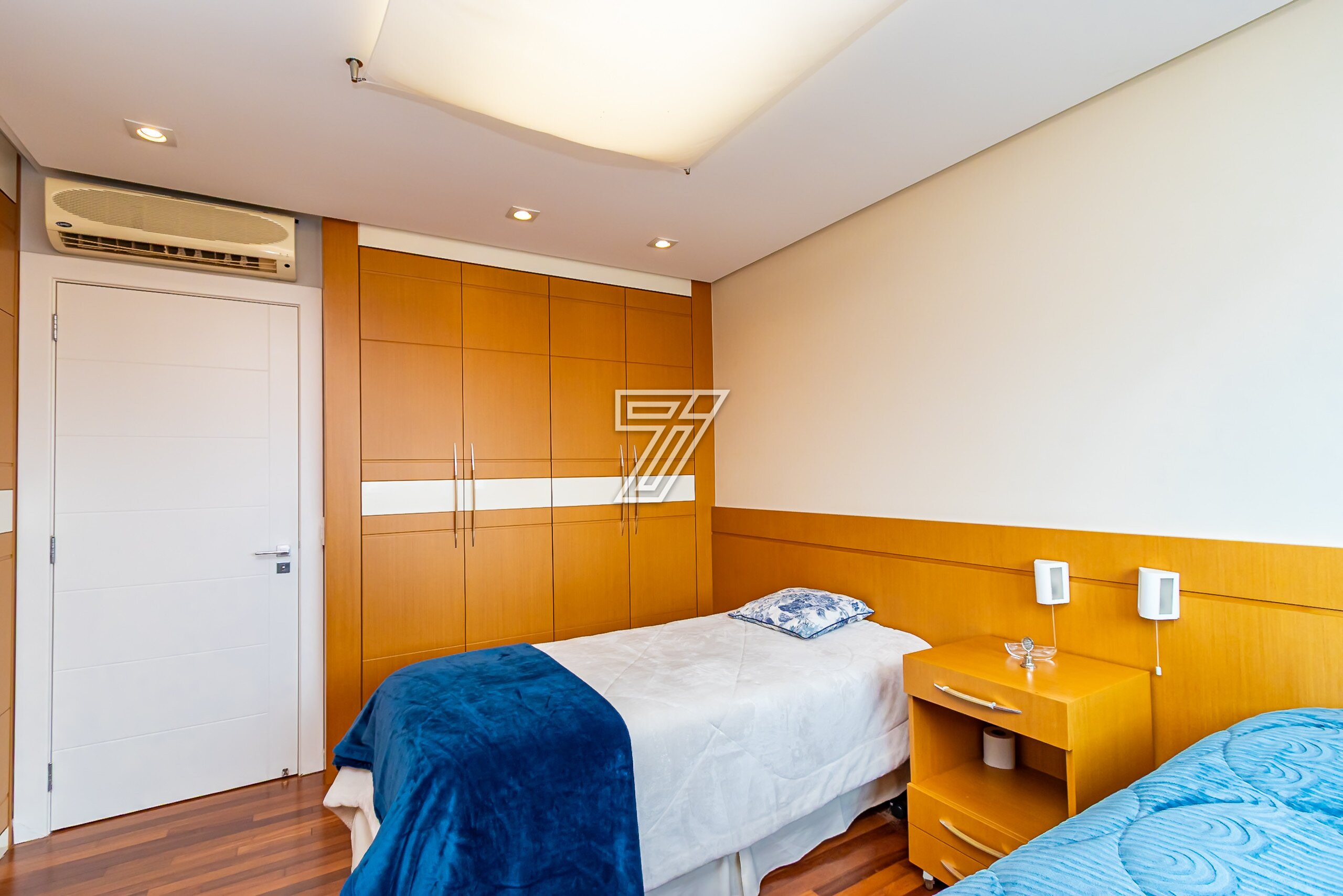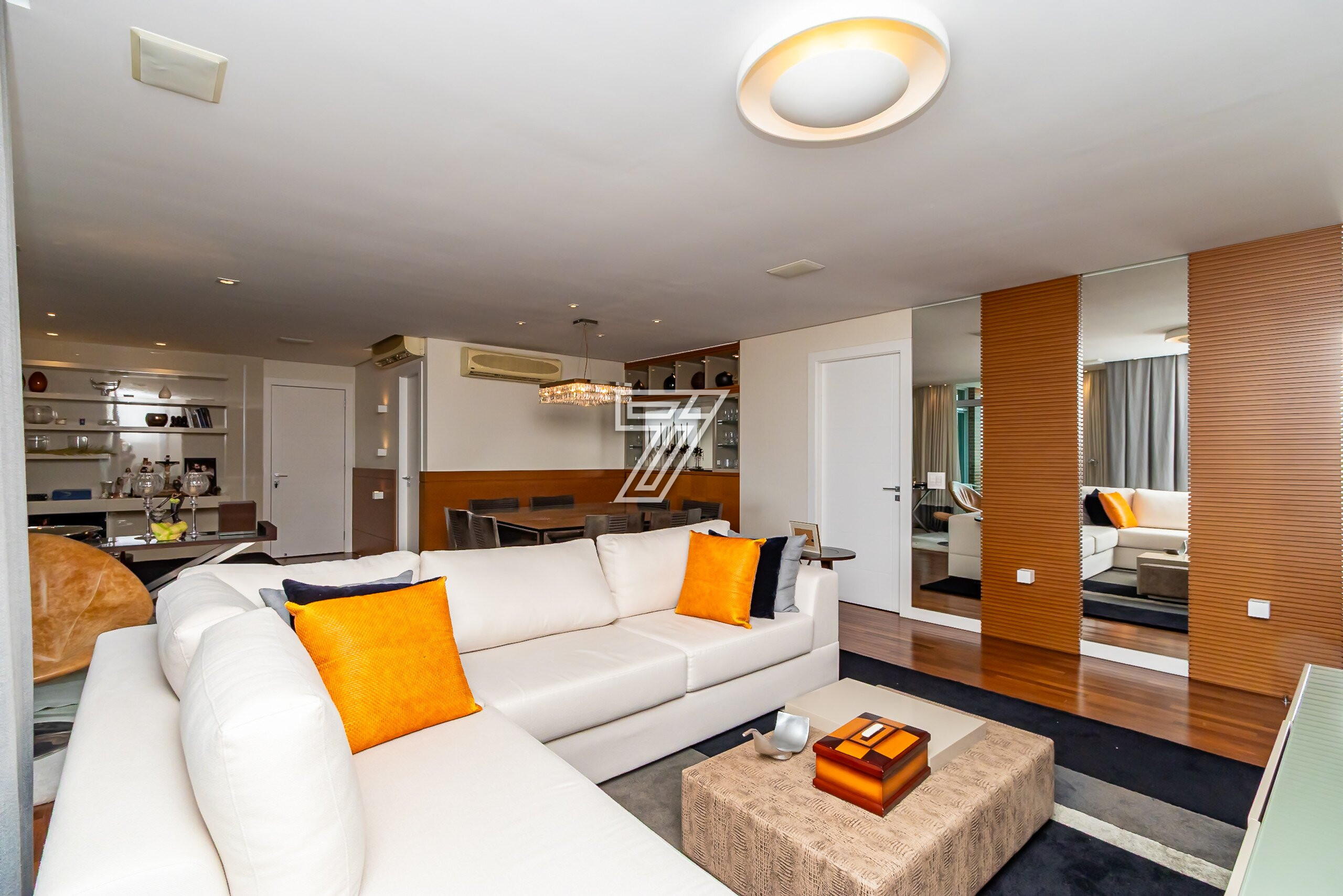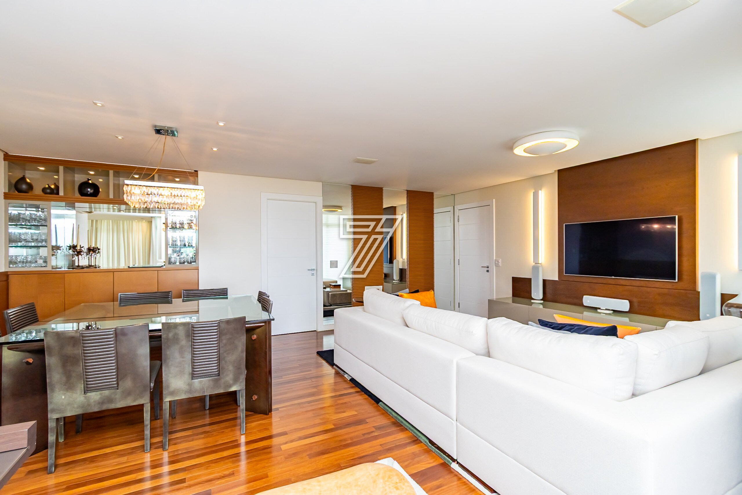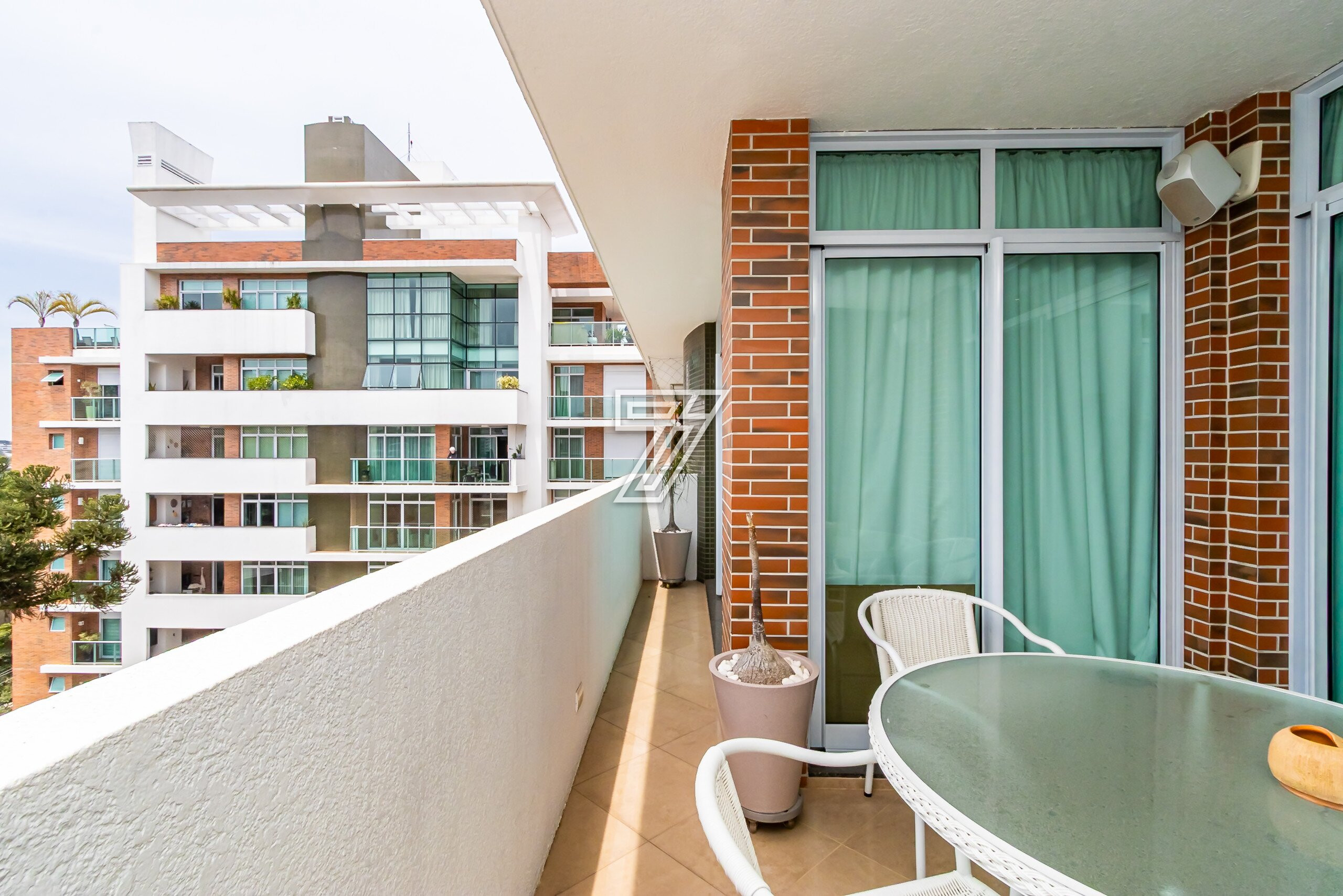 Com 3 dormitórios (3suítes), a suíte master com hidromassagem, 174m² privativos, uma ampla sala para 2 ambientes com uma sacada integrada (com churrasqueira à carvão), cozinha com móveis planejados, área de serviço completa (com dependência de empregada e água quente e fria no tanque), lavabo, banheiro social e duas vagas na garagem. Com móveis planejados de excelente padrão, na cozinha, dormitórios, ar condicionado, cortinas, venezianas e persianas, eletrodomésticos importados (fogão Lofra, máquina de lavar com apenas 6 meses de uso, geladeira side by side, ar condicionado em todos os ambientes). Com 2 vagas amplas e um depósito exclusivo na garagem.