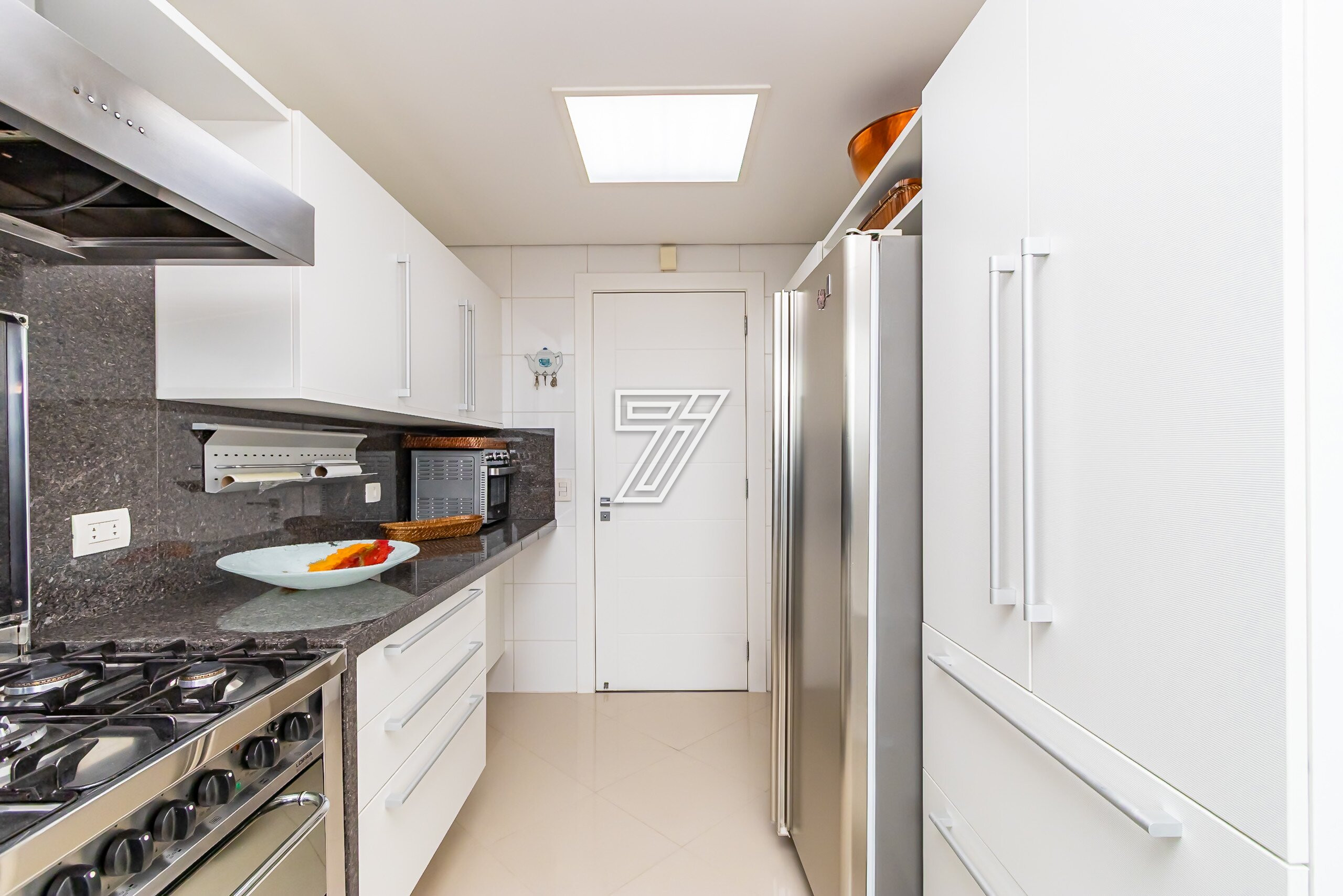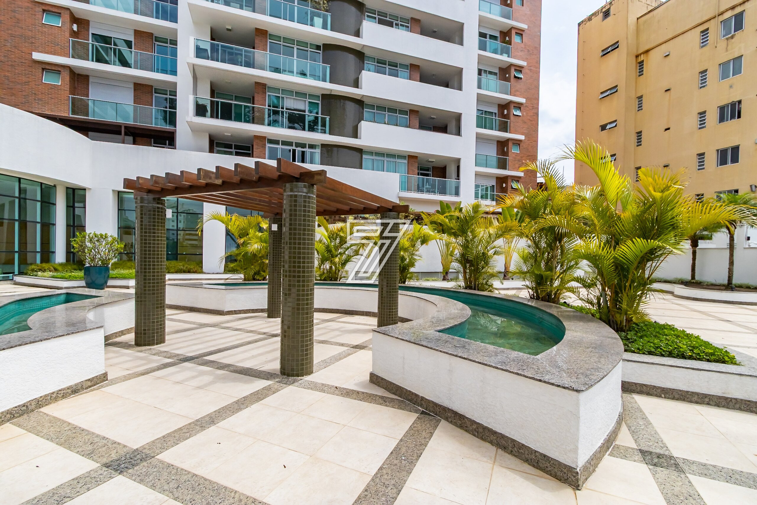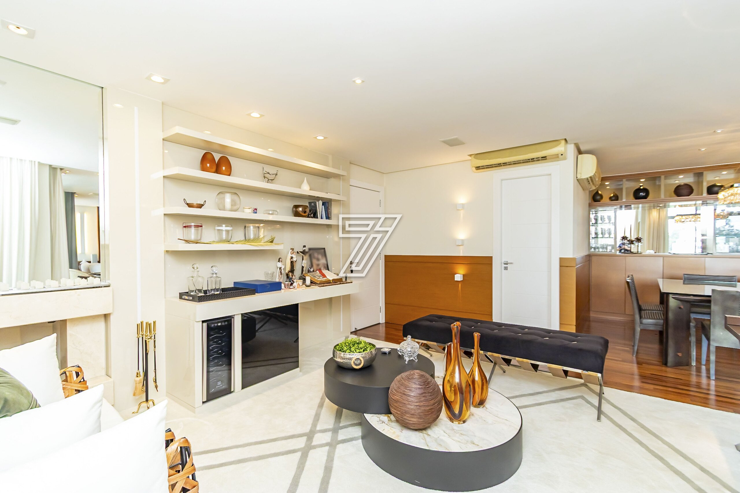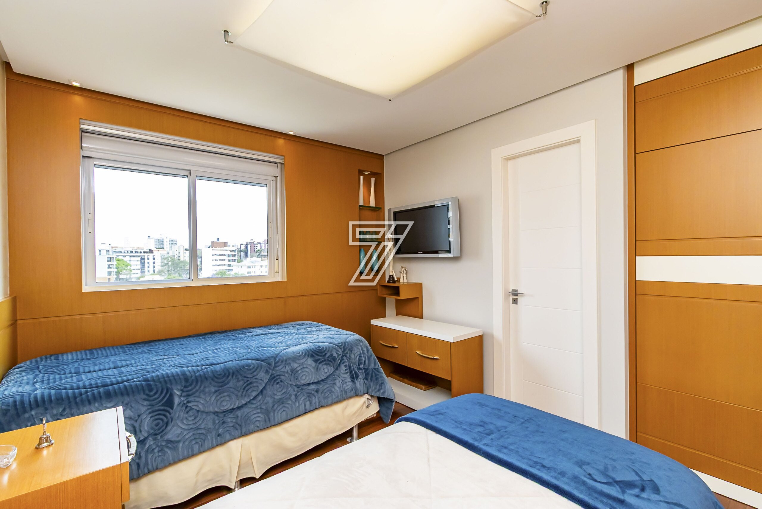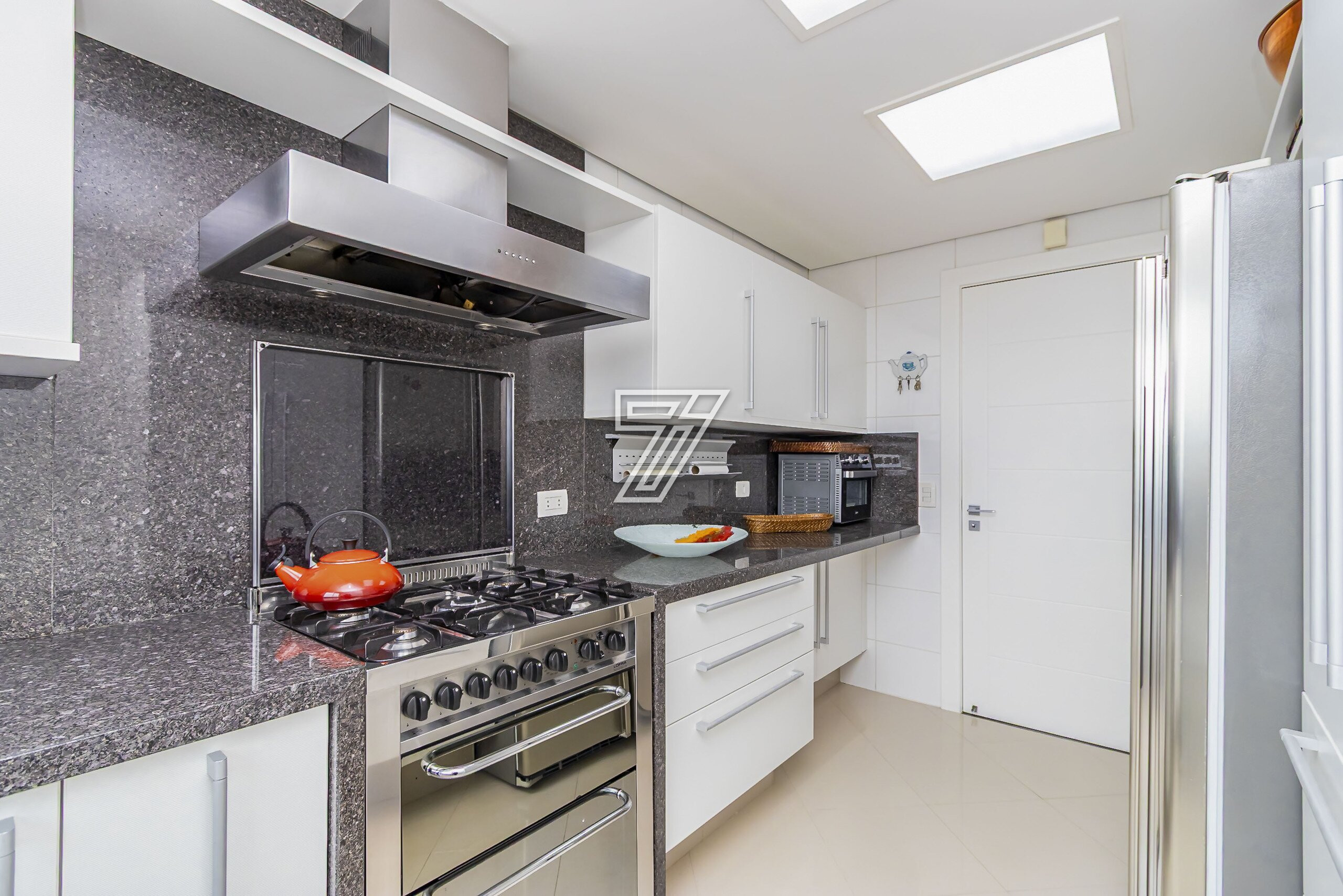 Com 3 dormitórios (3suítes), a suíte master com hidromassagem, 174m² privativos, uma ampla sala para 2 ambientes com uma sacada integrada (com churrasqueira à carvão), cozinha com móveis planejados, área de serviço completa (com dependência de empregada e água quente e fria no tanque), lavabo, banheiro social e duas vagas na garagem. Com móveis planejados de excelente padrão, na cozinha, dormitórios, ar condicionado, cortinas, venezianas e persianas, eletrodomésticos importados (fogão Lofra, máquina de lavar com apenas 6 meses de uso, geladeira side by side, ar condicionado em todos os ambientes). Com 2 vagas amplas e um depósito exclusivo na garagem.