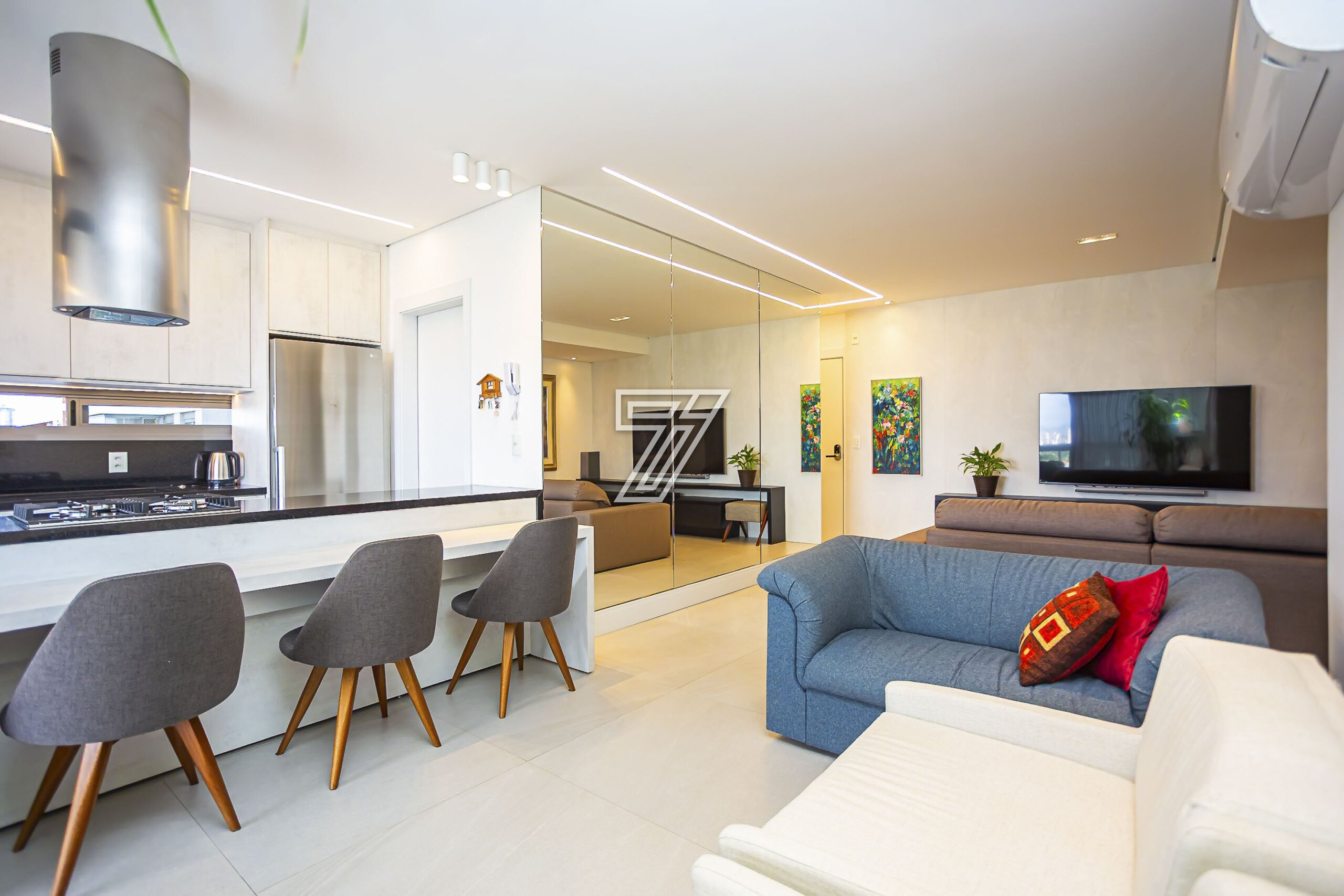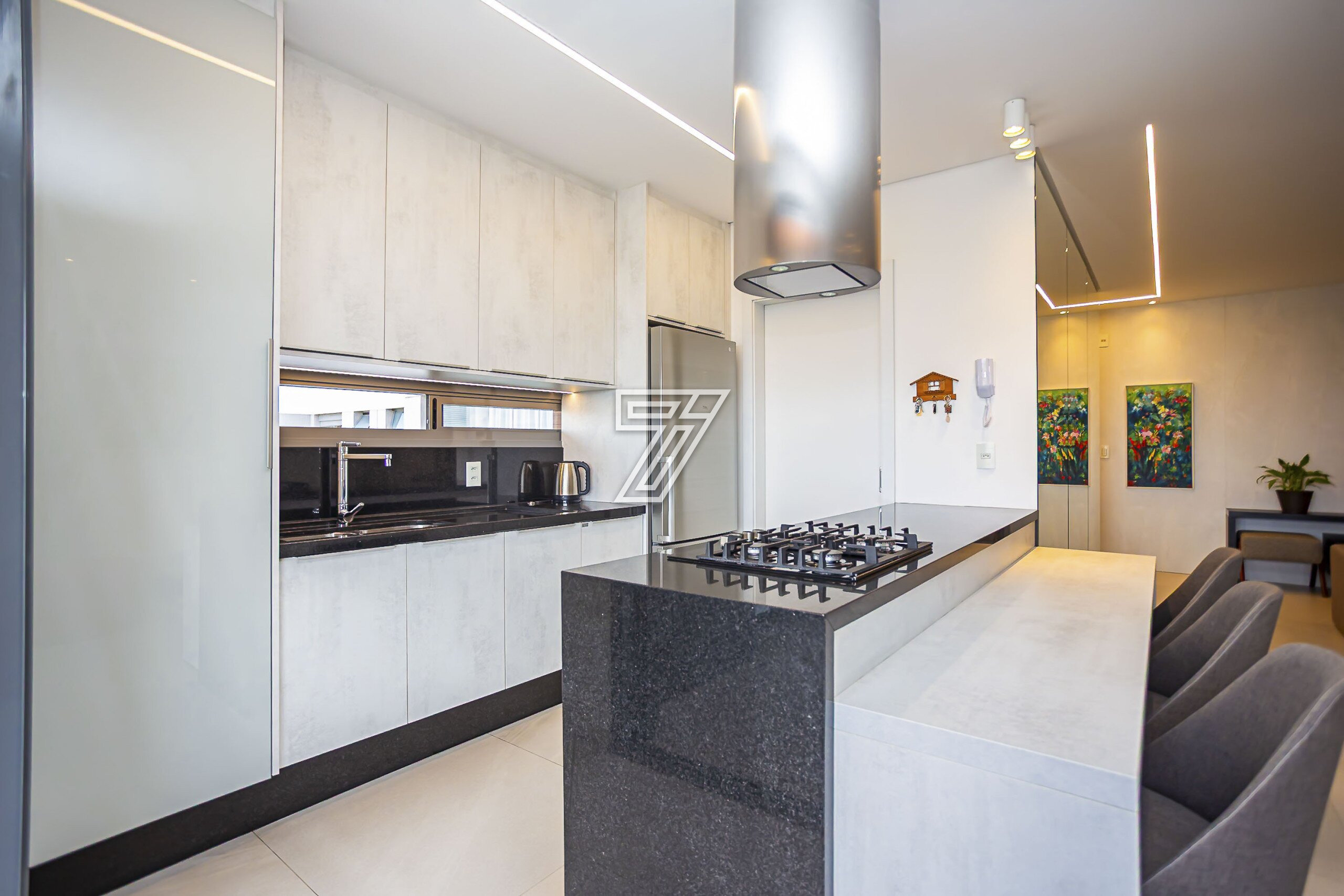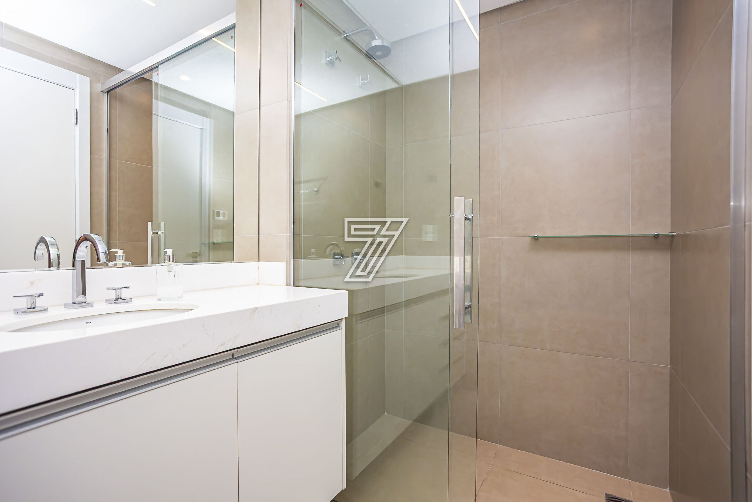 Entre os diferenciais, destacam-se as persianas automatizadas, piso aquecido nos banheiros e a sacada espaçosa com uma vista deslumbrante. O apartamento também dispõe de ar-condicionado, armários embutidos, cozinha planejada, dormitório com armários, estar íntimo, além de opções mobiliado ou semi mobiliado, incluindo suíte master e ambientes funcionais e elegantes.