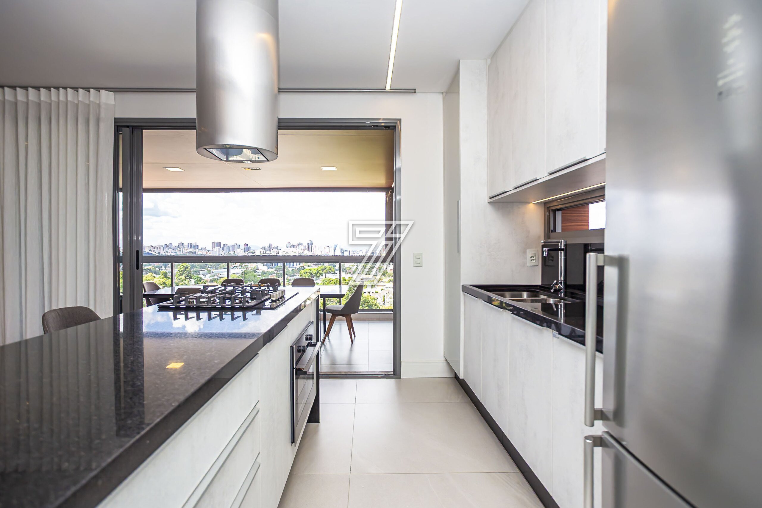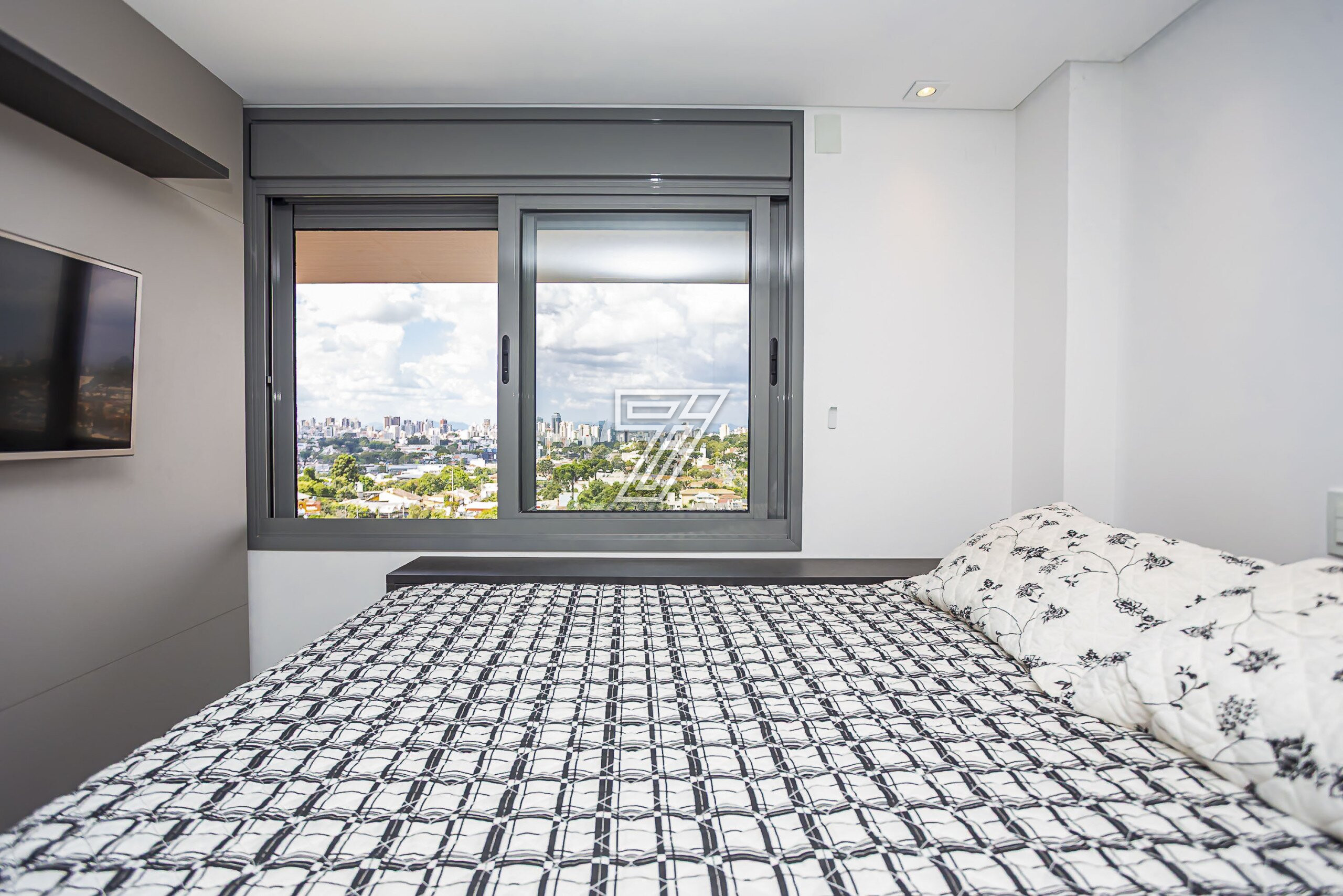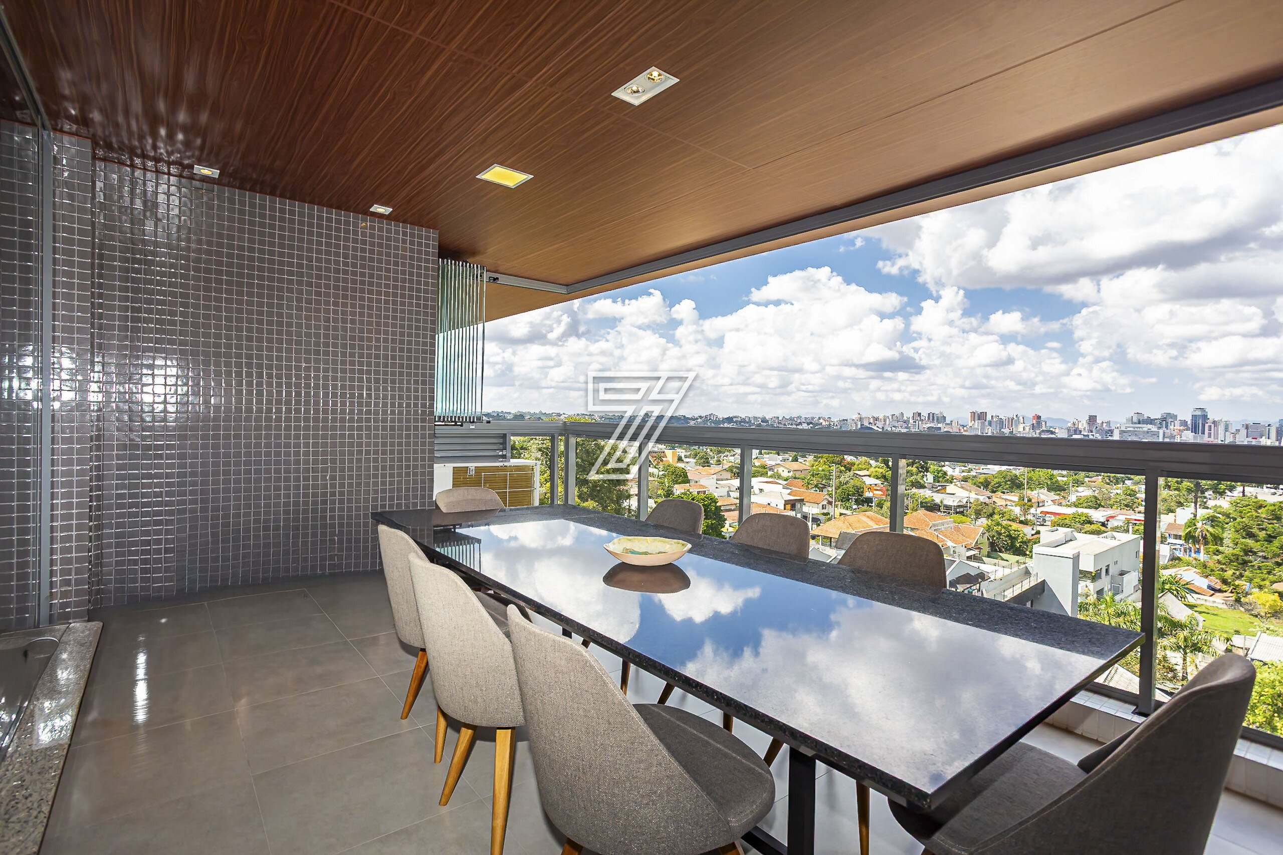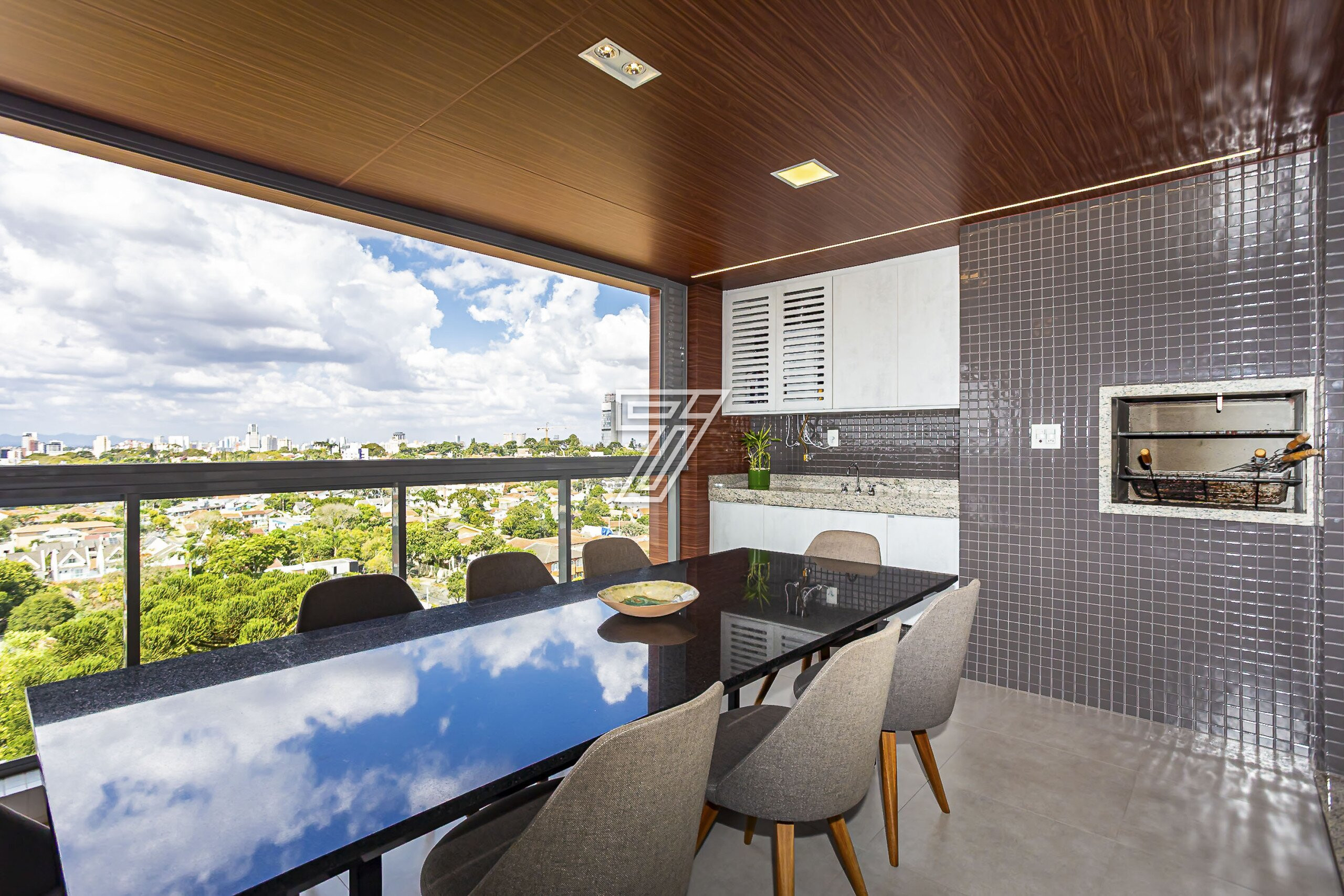 Apartamento com acabamento de alto padrão localizado no bairro Mercês, em posição privilegiada com face leste/norte e vista definitiva para a Serra do Mar. O imóvel conta com três suítes, quatro banheiros e três vagas de garagem, oferecendo conforto e sofisticação em todos os ambientes. A planta é bem distribuída, com sala para dois ambientes, lavabo, cozinha integrada, área de serviço e uma ampla sacada gourmet com churrasqueira a carvão, perfeita para momentos de lazer.