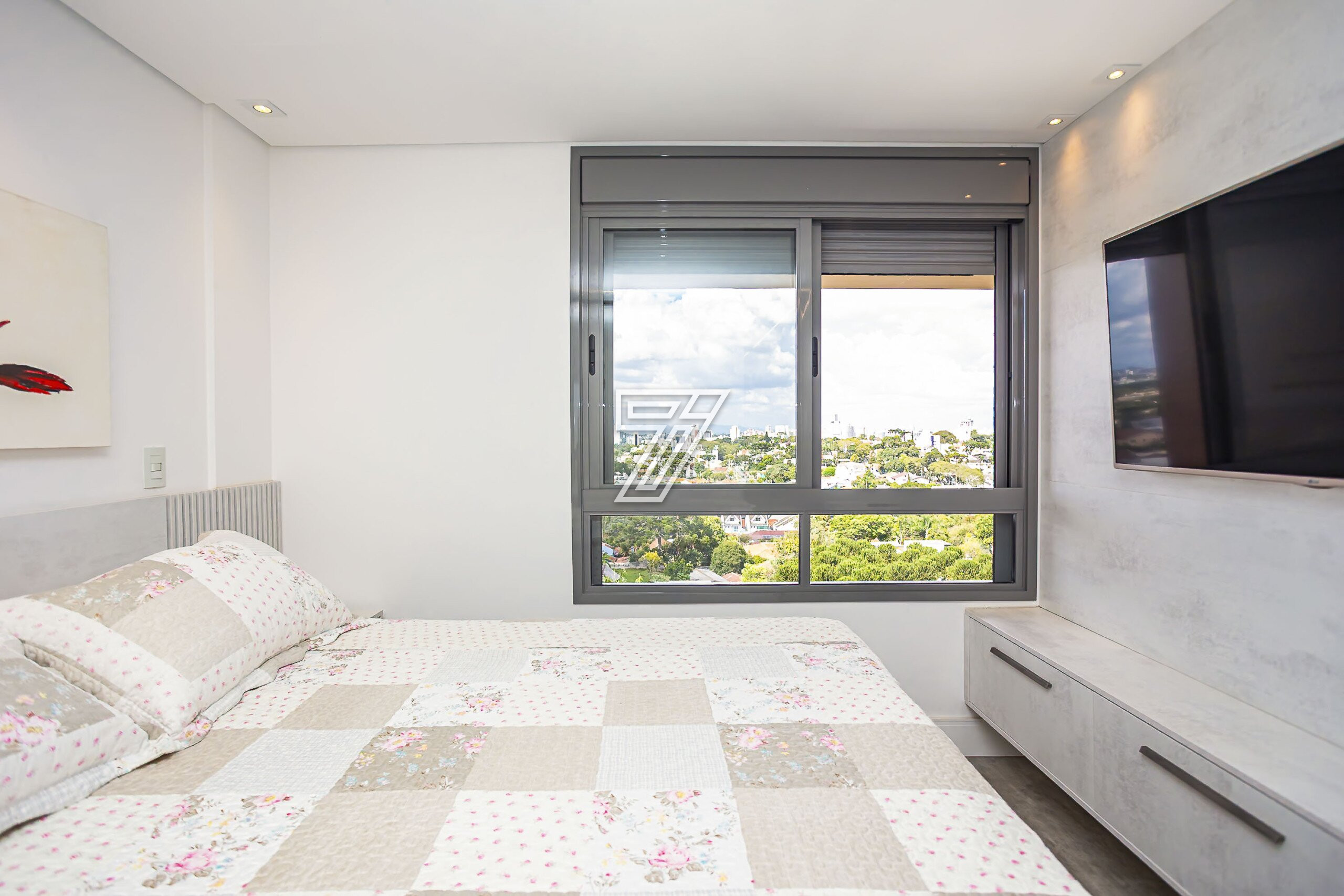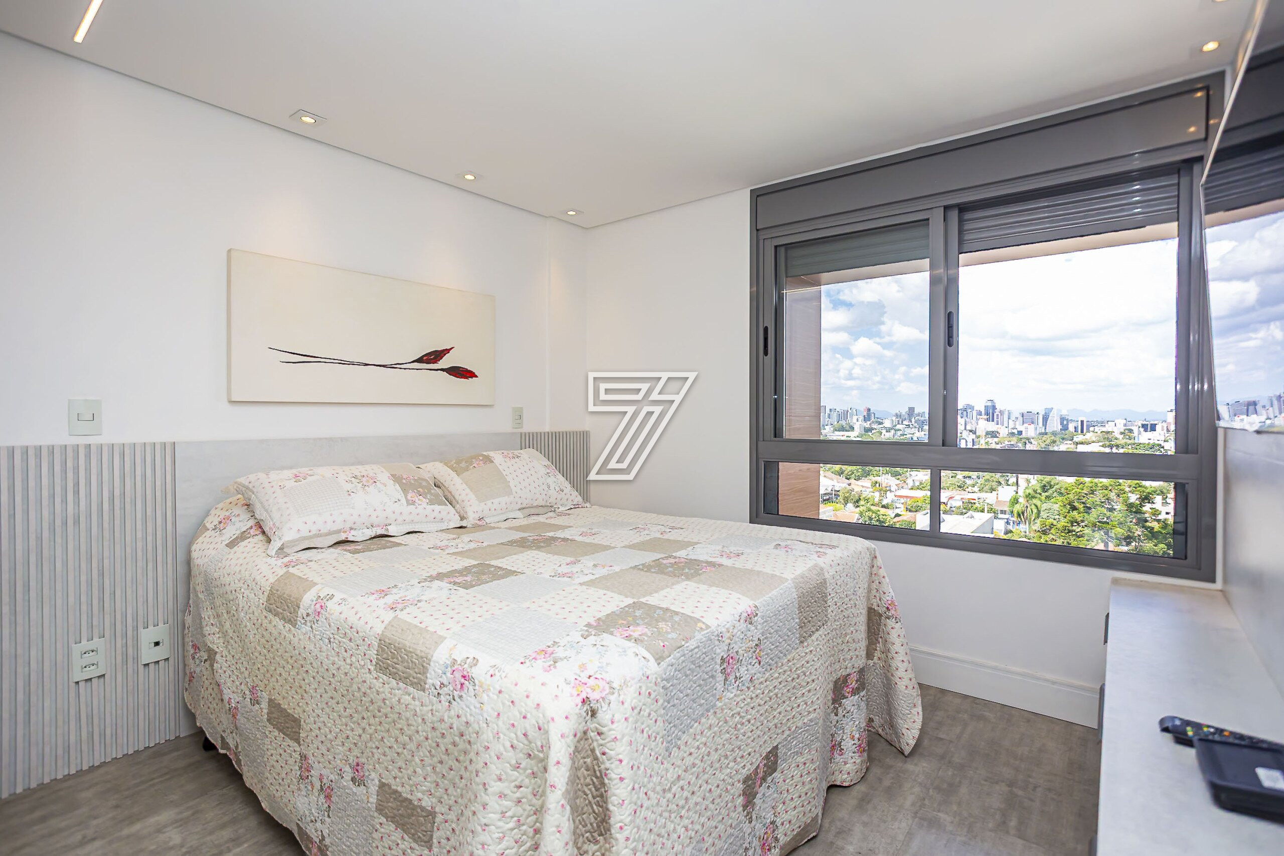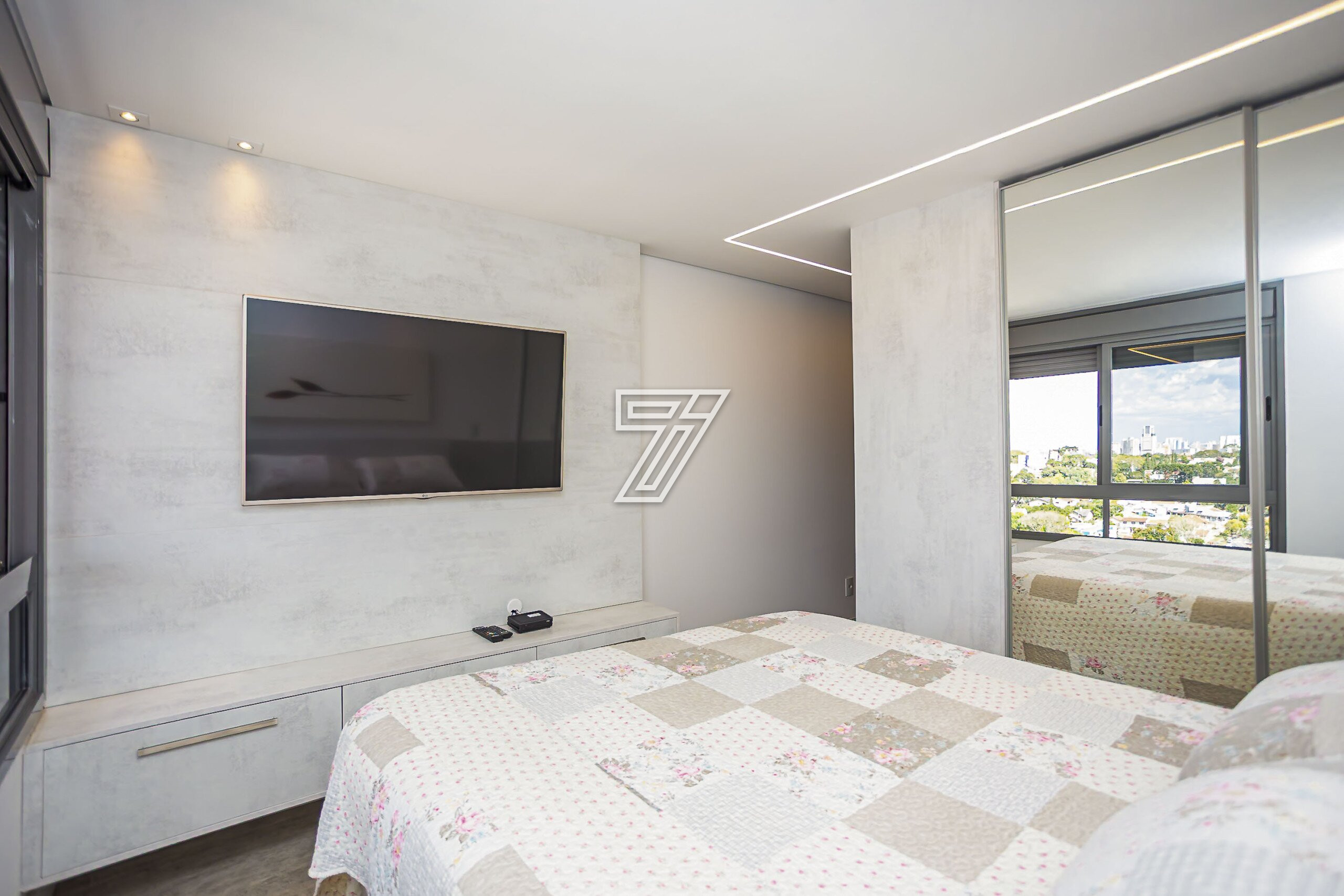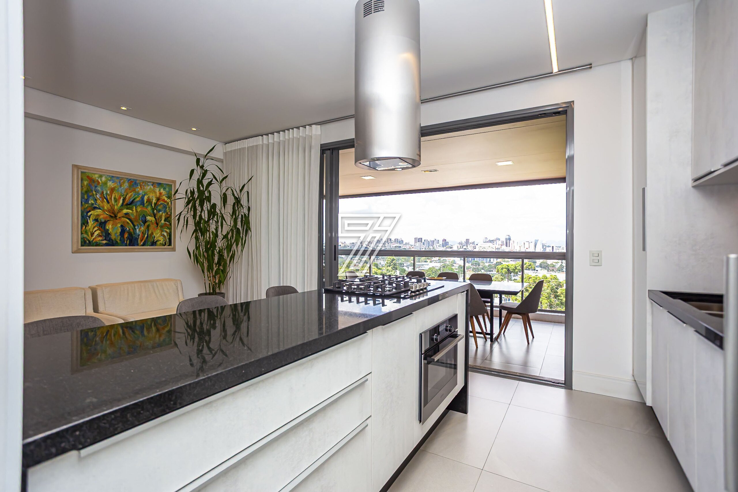 Apartamento com acabamento de alto padrão localizado no bairro Mercês, em posição privilegiada com face leste/norte e vista definitiva para a Serra do Mar. O imóvel conta com três suítes, quatro banheiros e três vagas de garagem, oferecendo conforto e sofisticação em todos os ambientes. A planta é bem distribuída, com sala para dois ambientes, lavabo, cozinha integrada, área de serviço e uma ampla sacada gourmet com churrasqueira a carvão, perfeita para momentos de lazer.