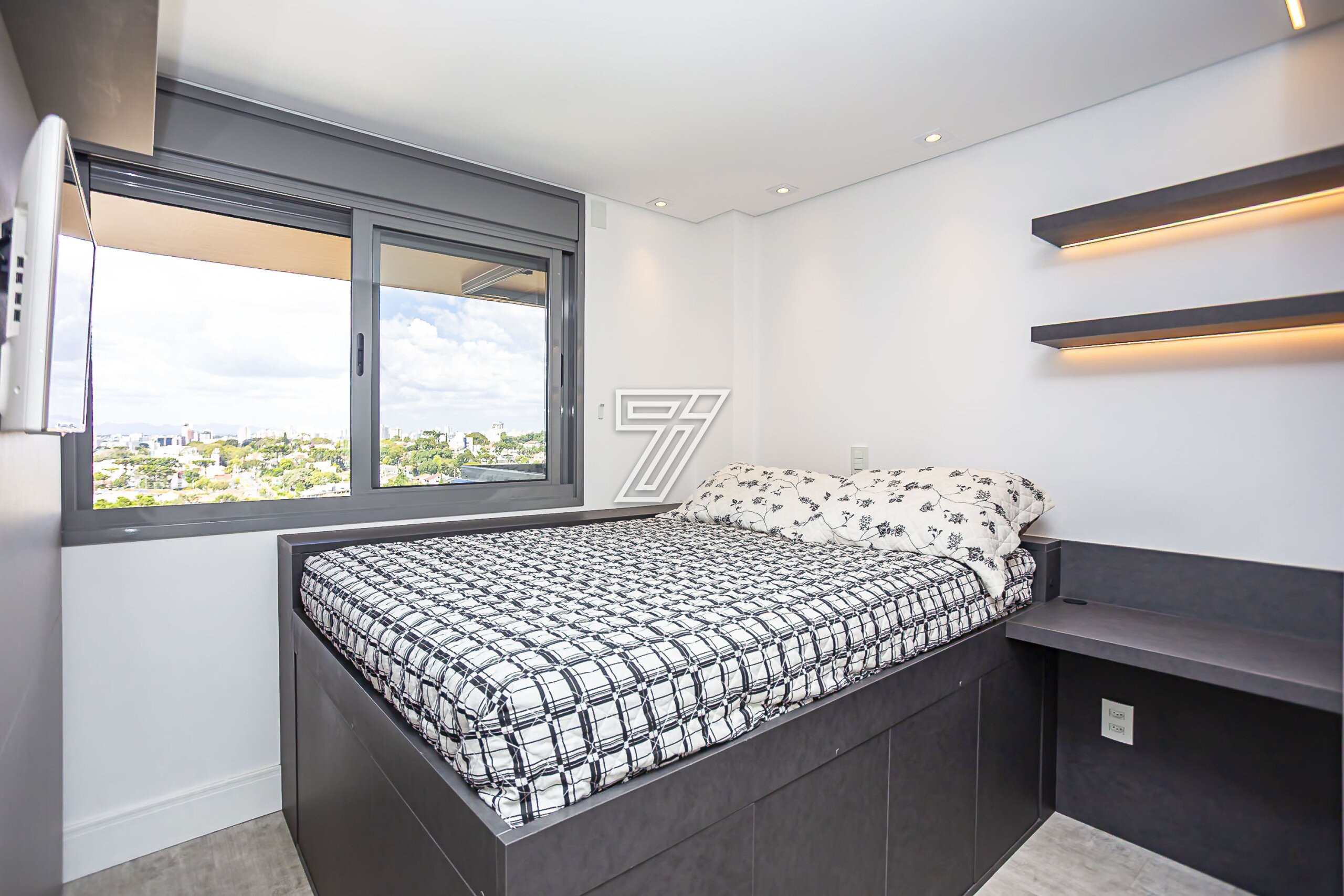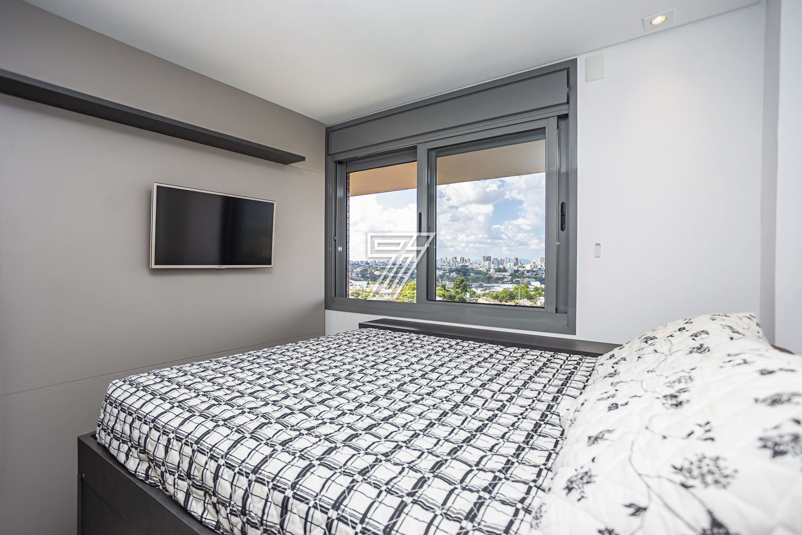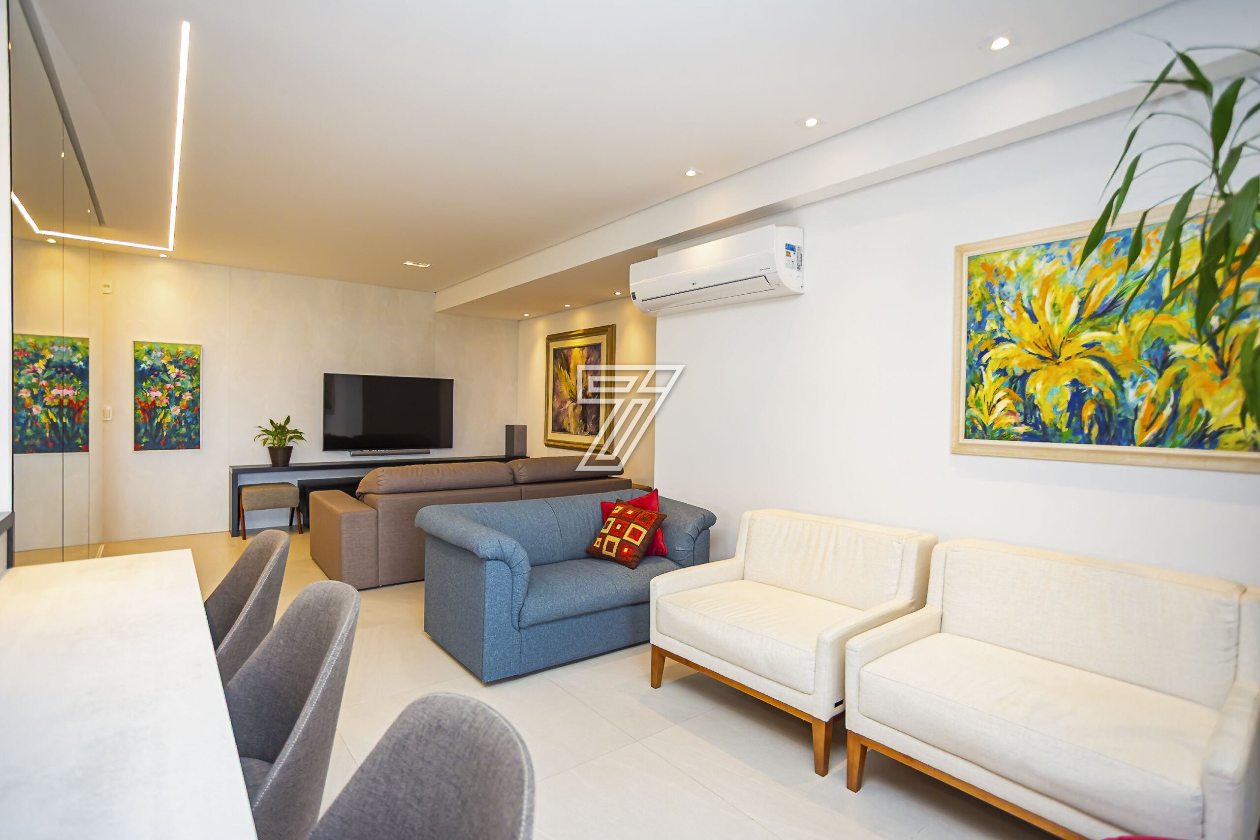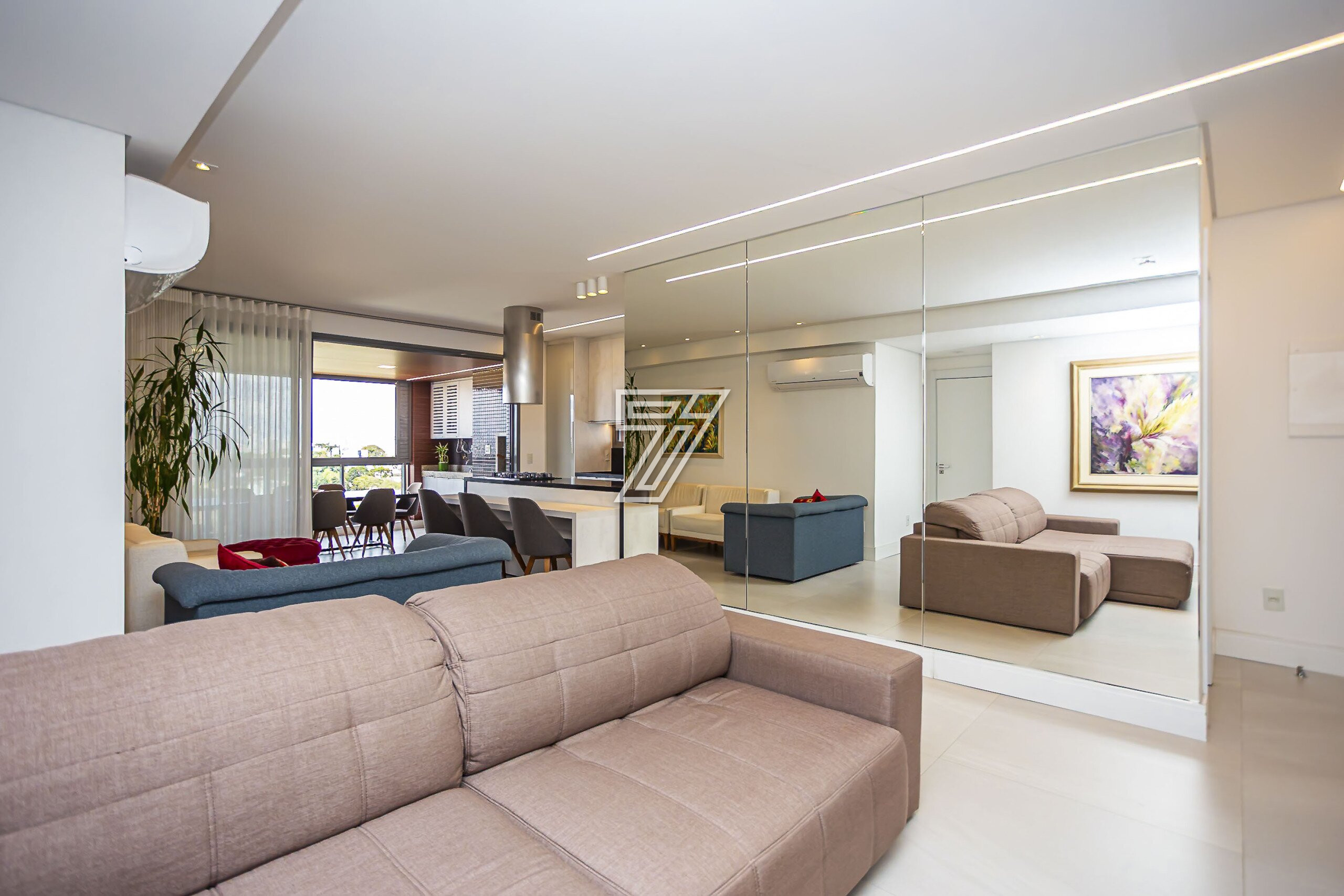 Apartamento com acabamento de alto padrão localizado no bairro Mercês, em posição privilegiada com face leste/norte e vista definitiva para a Serra do Mar. O imóvel conta com três suítes, quatro banheiros e três vagas de garagem, oferecendo conforto e sofisticação em todos os ambientes. A planta é bem distribuída, com sala para dois ambientes, lavabo, cozinha integrada, área de serviço e uma ampla sacada gourmet com churrasqueira a carvão, perfeita para momentos de lazer.