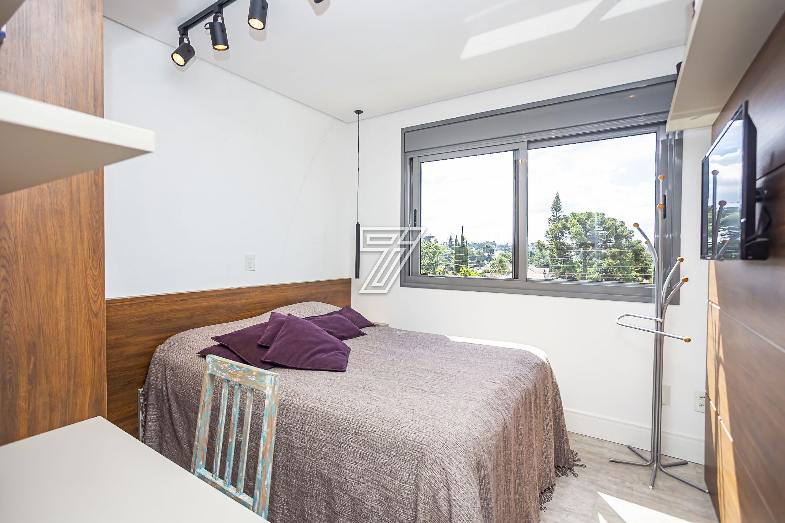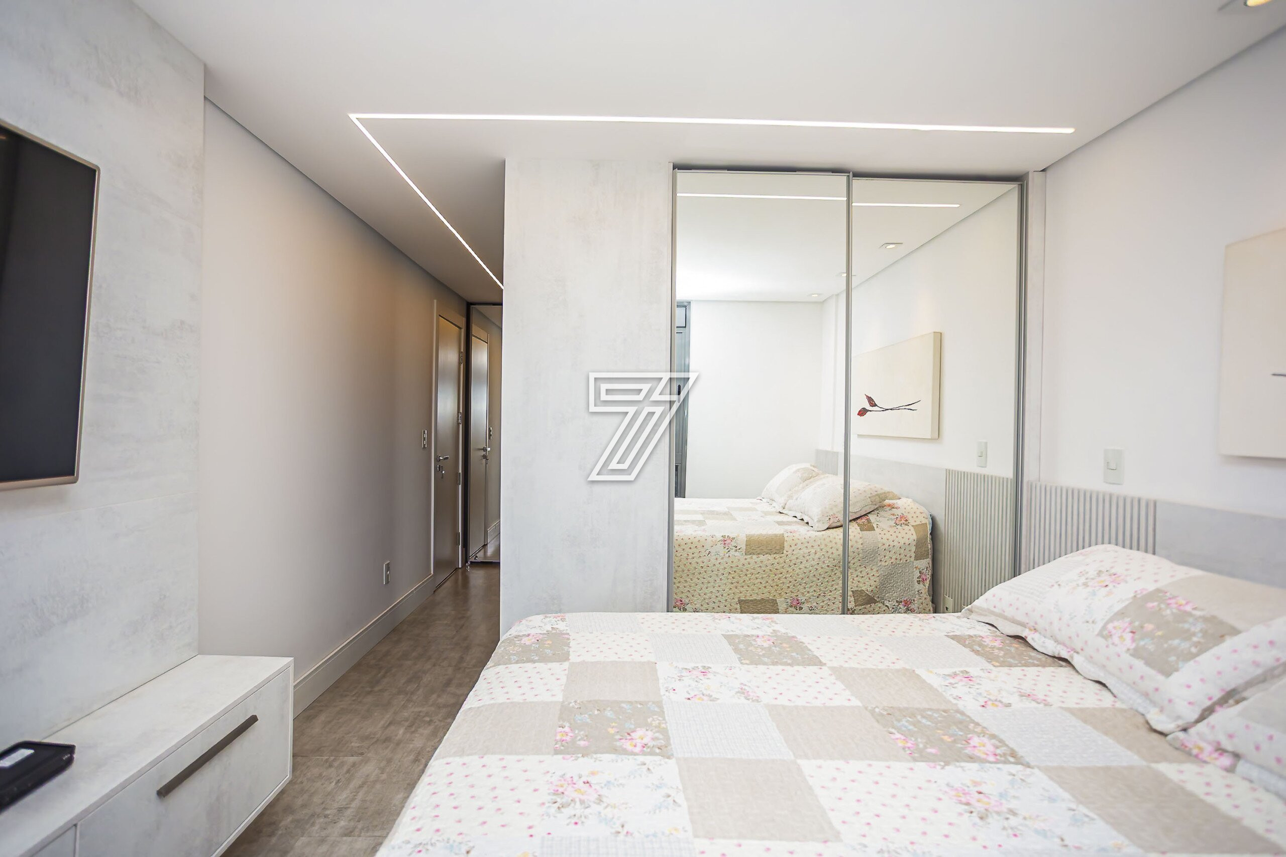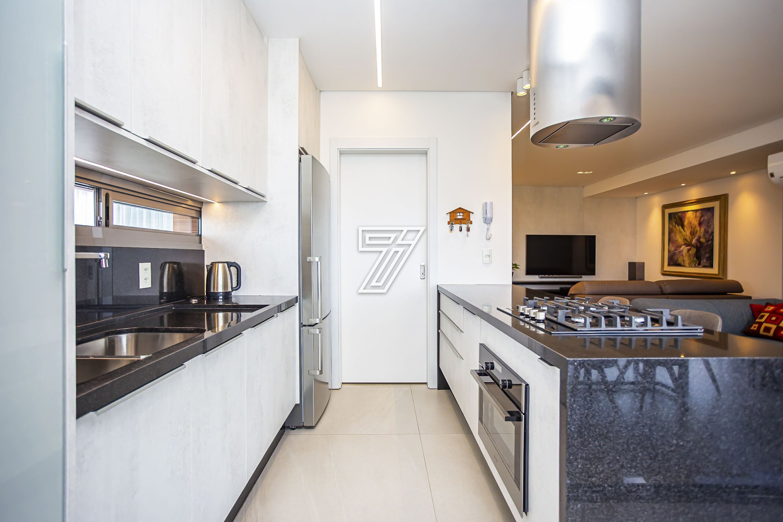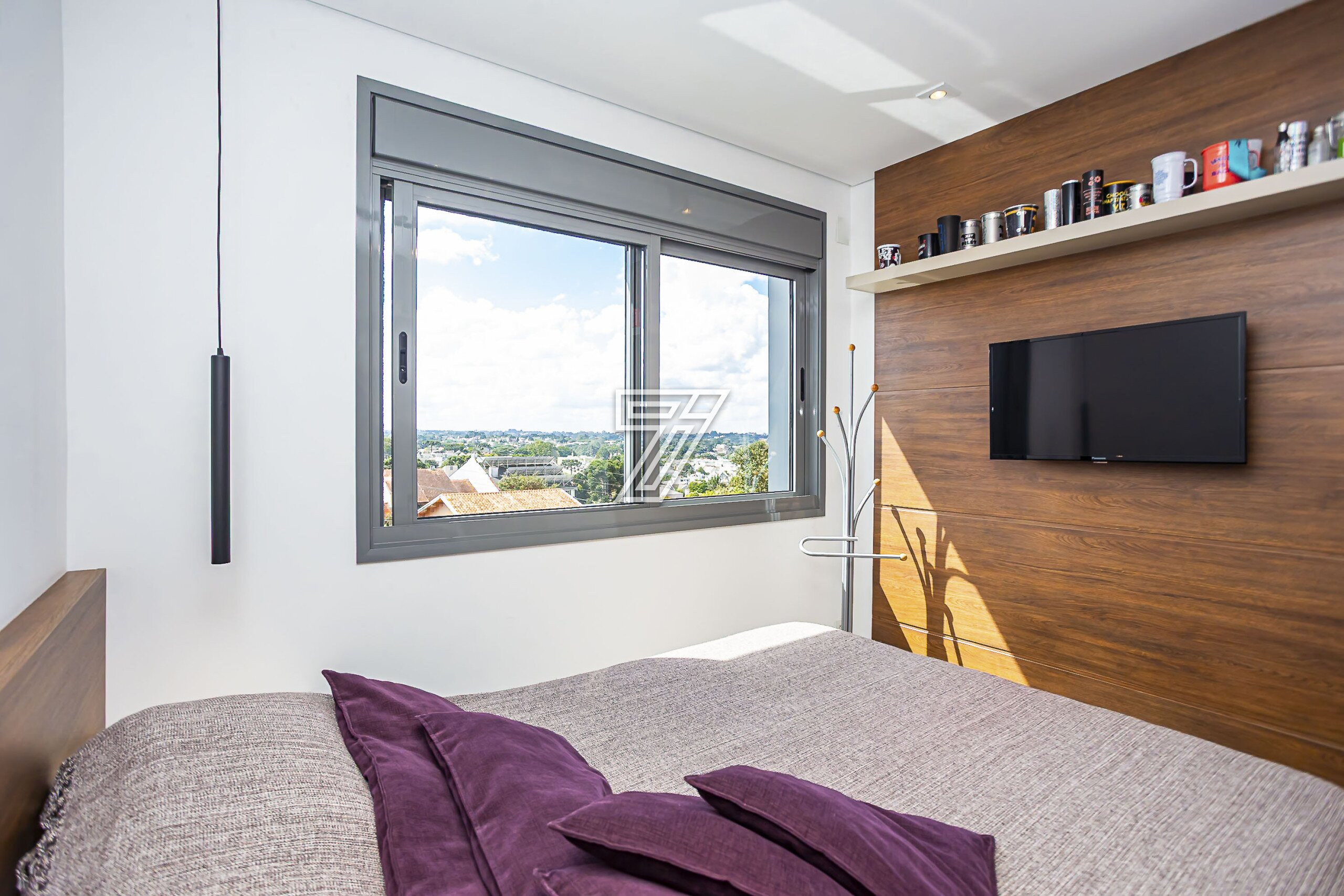 Apartamento com acabamento de alto padrão localizado no bairro Mercês, em posição privilegiada com face leste/norte e vista definitiva para a Serra do Mar. O imóvel conta com três suítes, quatro banheiros e três vagas de garagem, oferecendo conforto e sofisticação em todos os ambientes. A planta é bem distribuída, com sala para dois ambientes, lavabo, cozinha integrada, área de serviço e uma ampla sacada gourmet com churrasqueira a carvão, perfeita para momentos de lazer.