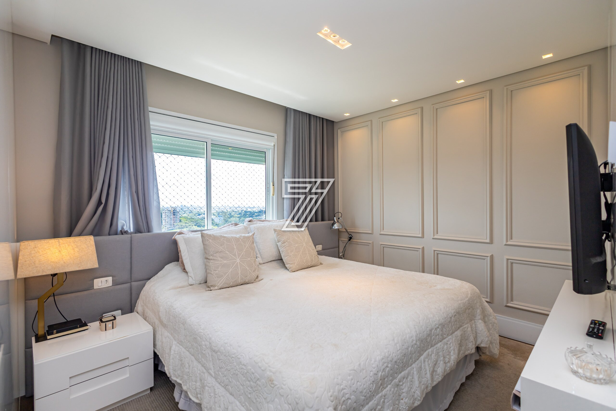 Apartamento Duplex maravilhosamente decorado no Ecovile. Face norte com vista deslumbrante e definida. Para chegar e morar, com tudo pensado para encantar em 200mts² privativos! Destes 200m², 183m² averbados em uma composição de planta com hall privativo, salas de jantar, Tv, e churrasqueira gourmet, 03 suítes, lavabo, office, cozinha e lavanderia com acesso independente. Os restantes 17m² planejados em um charmoso mezanino, com escada em mármore, guarda corpo de vidro e com 02 ambientes mais acolhedores, sala de estar íntima com lareira a lenha, e sala de TV. Na chegada, requintado hall privativo que dá acesso à sala de jantar com imponente lustre, móveis, e integrado com churrasqueira gourmet totalmente equipada com o mesmo requinte. O destaque deste apartamento é a linda vista do andar alto e de esquina, com vista para a Serra do Mar. Sala de estar e tv junto ao jantar, com lareira à álcool em um lindíssimo painel em mármore e mobiliário refinado. Cozinha com bancada americana, e ampla lavanderia. 03 Vagas de garagem.