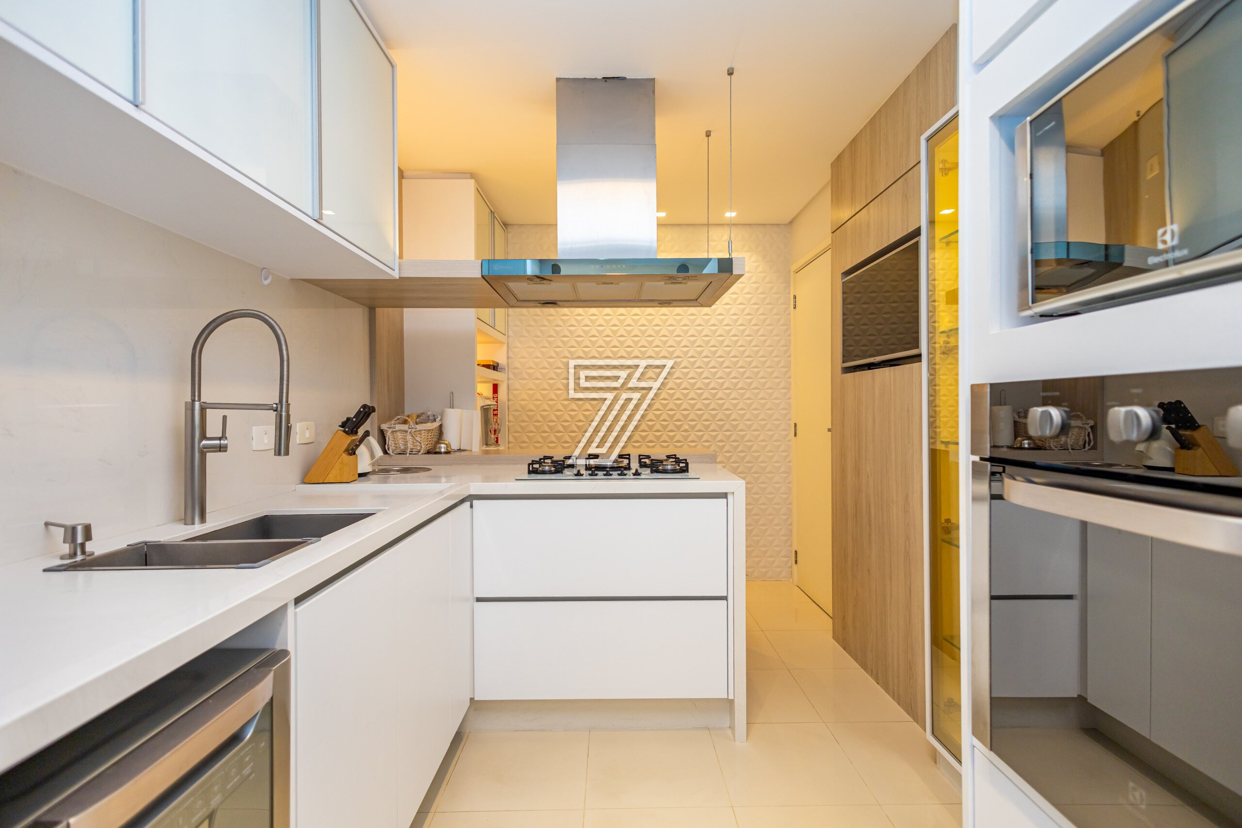 Apartamento no Ecovile em condomínio clube totalmente mobiliado, 200mts² privativos, face norte, andar alto, 03 suítes, lavabo, office, 03 garagens.