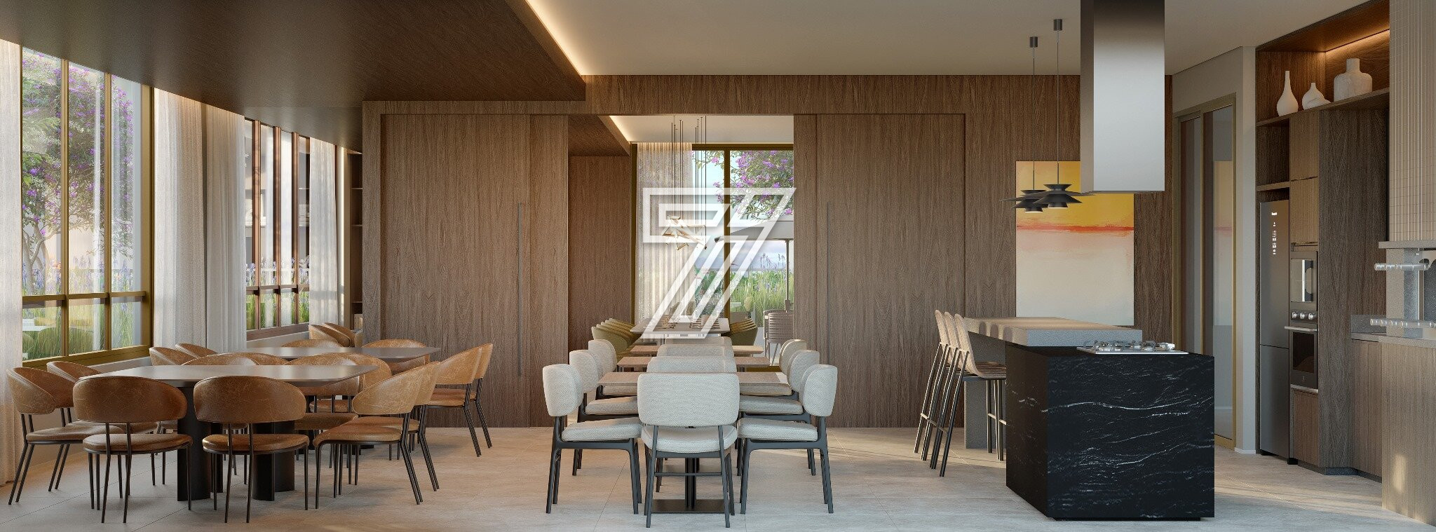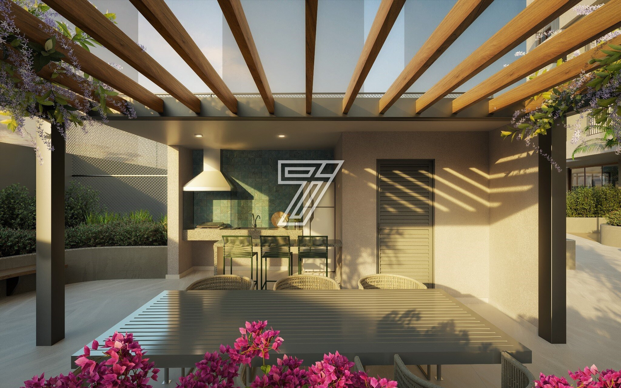 Portaria, Central de entregas e delivery, Mini market, Galeria de lojas, Hall de entrada, Pet care, Studio de yoga, Academia, Sala de massagem, SPA, Beauty center, Coworking, Brinquedoteca, Salão de festas com lounge externo, Espaço gourmet, Espaço pet externo, Espaço relax, Academia externa, Piscina adulta e infantil descoberta, Gazebos, Pet place, Solarium, Fire place, Playground, Quadra poliesportiva, Redário, Jardim, Horta e pomar, Painéis fotovoltaicos, Gerador de emergência, Garagem com piso epoxi, Bicicletário com oficina, Carregador para carro elétrico (1 por unidade).