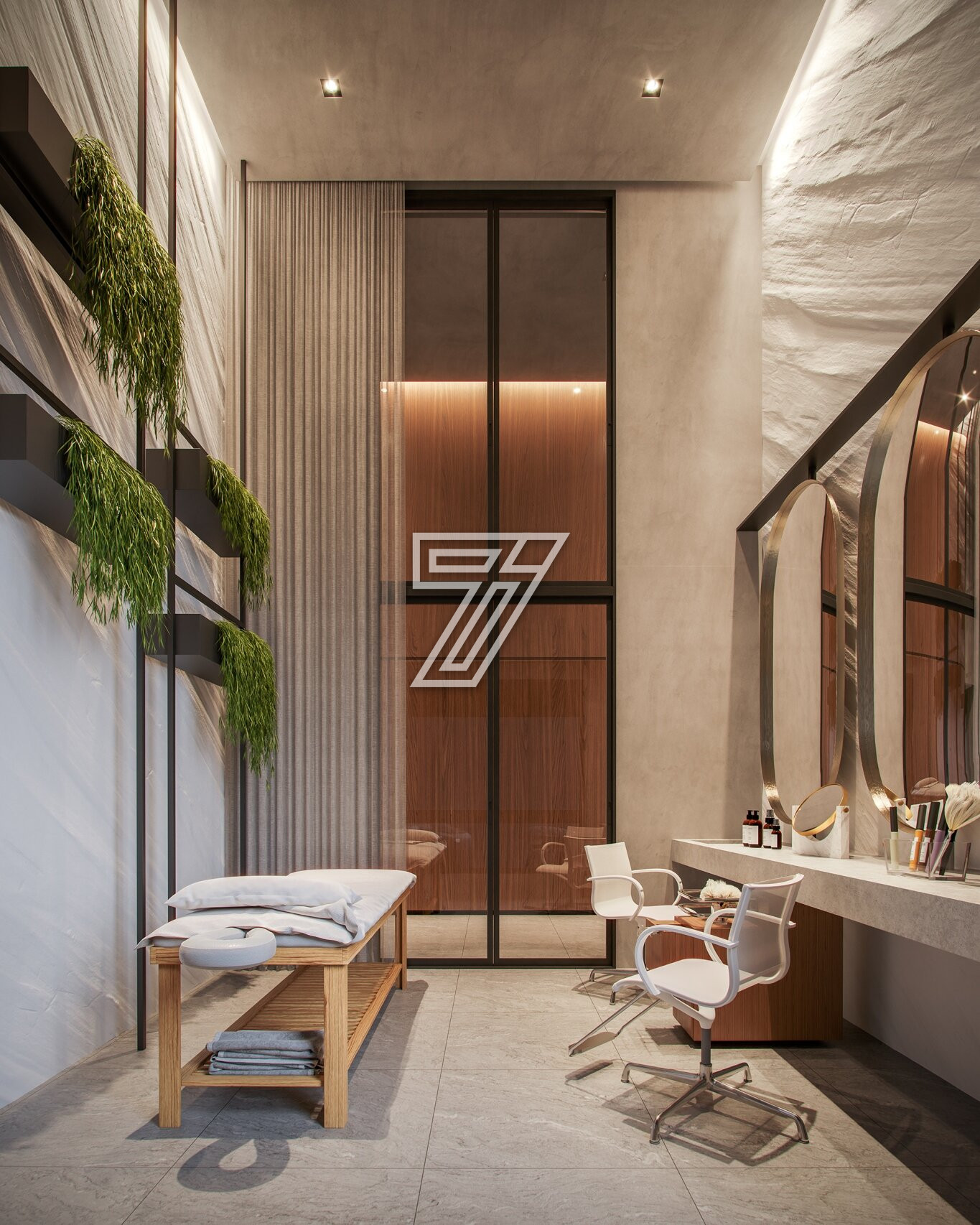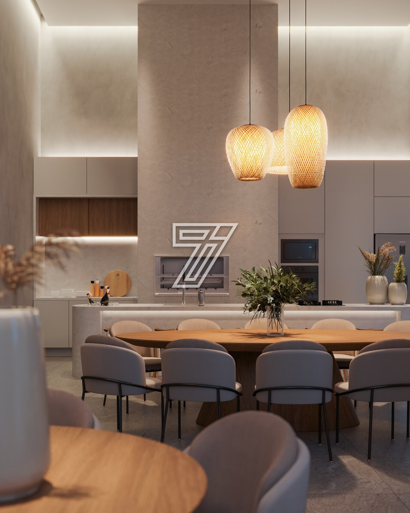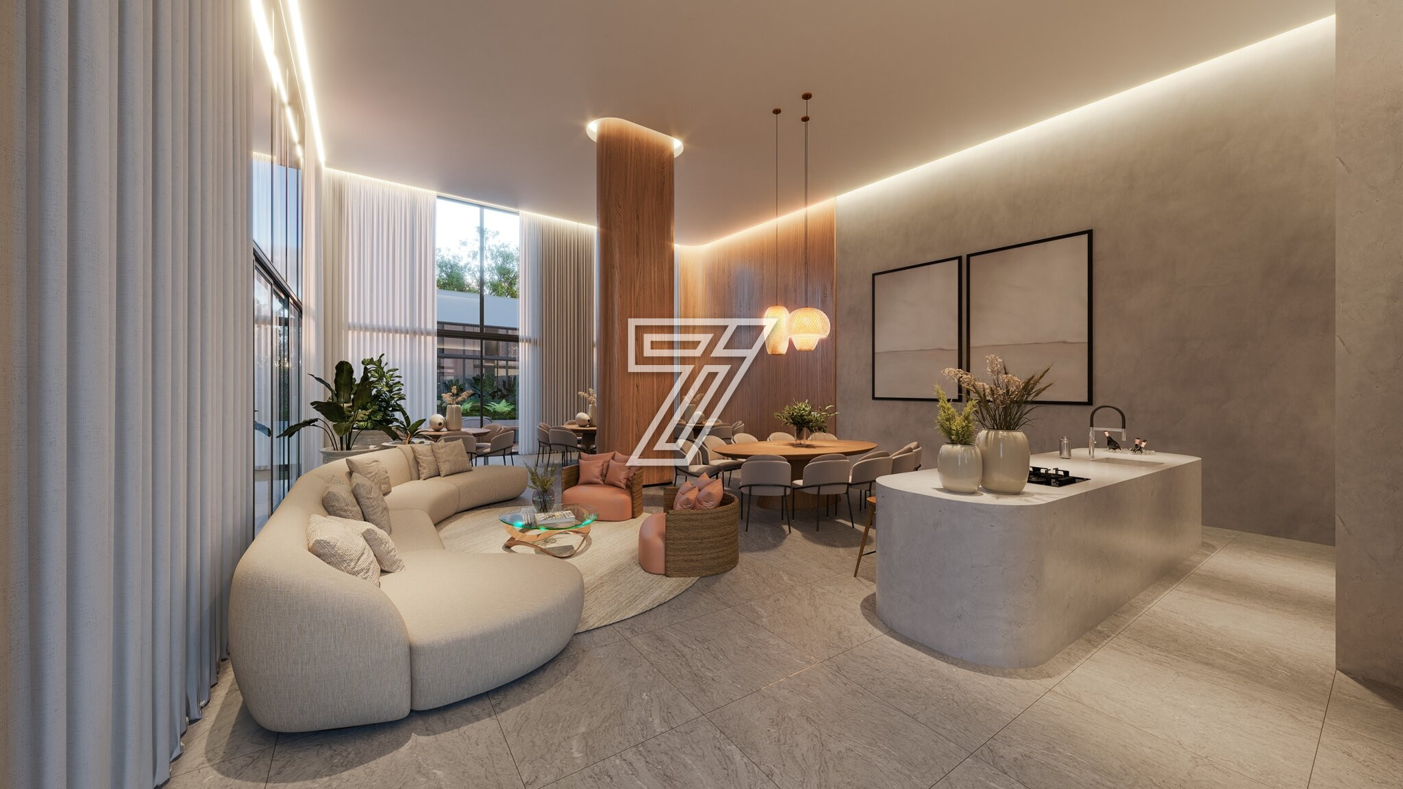 Port-cochère, Hall de entrada, Central de entregas e delivery, Praça central, Sala de reuniões, Espaço relax, Brinquedoteca, Academia, Salão de festas, Lounge externo, Playground, Espaço pet, Quadra de beach, Piscina coberta, Bicicletário com oficina, Gerador de emergência, Sistema de segurança entregue instalado, Eclusa de pedestres, serviço e veículos, Vestiário e copa para funcionários, Carregador para carro elétrico, Vagas para visitantes.