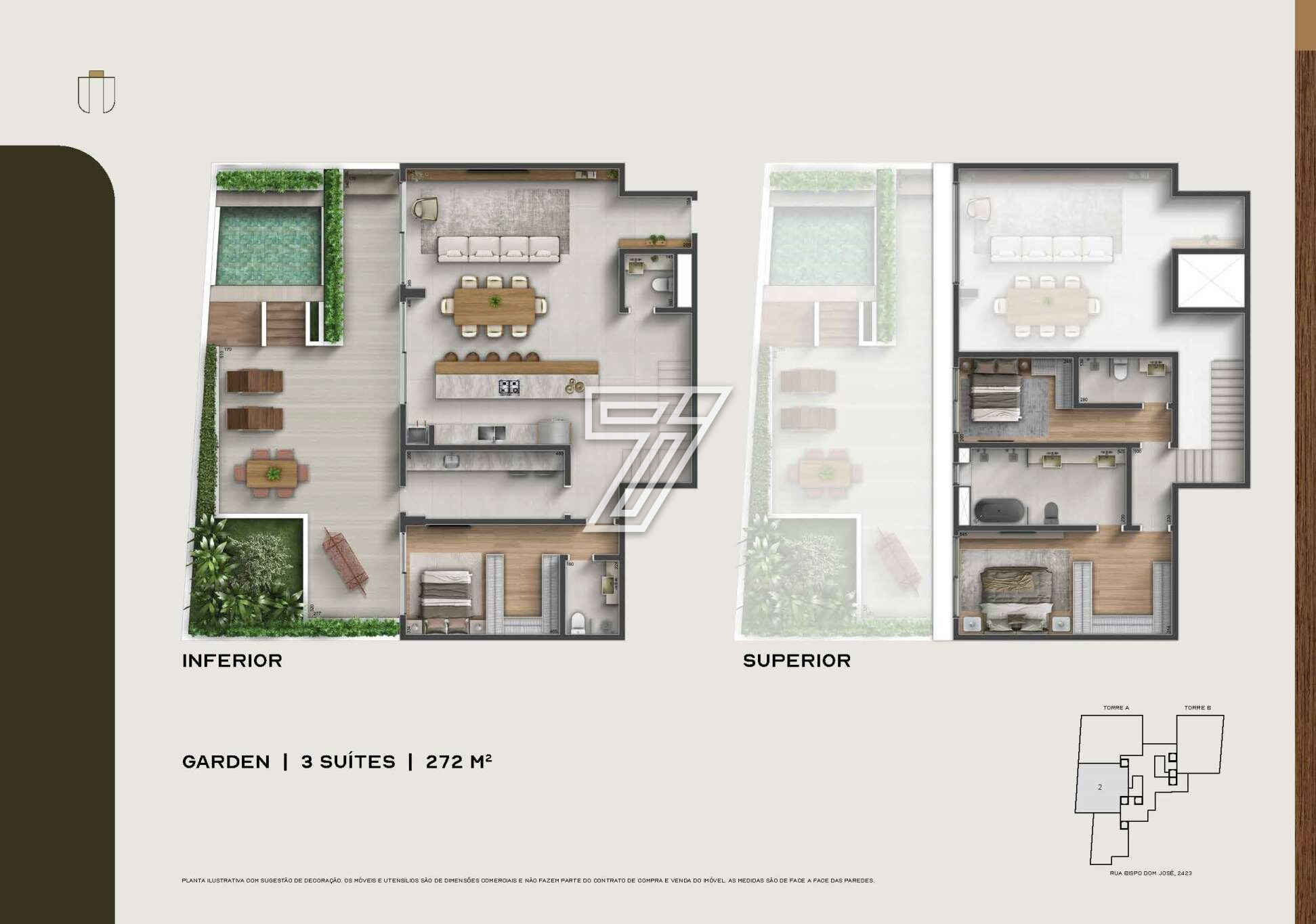 Apartamento com 182,51m² + 89,23m² de jardim exclusivo = 271,74m² privativos