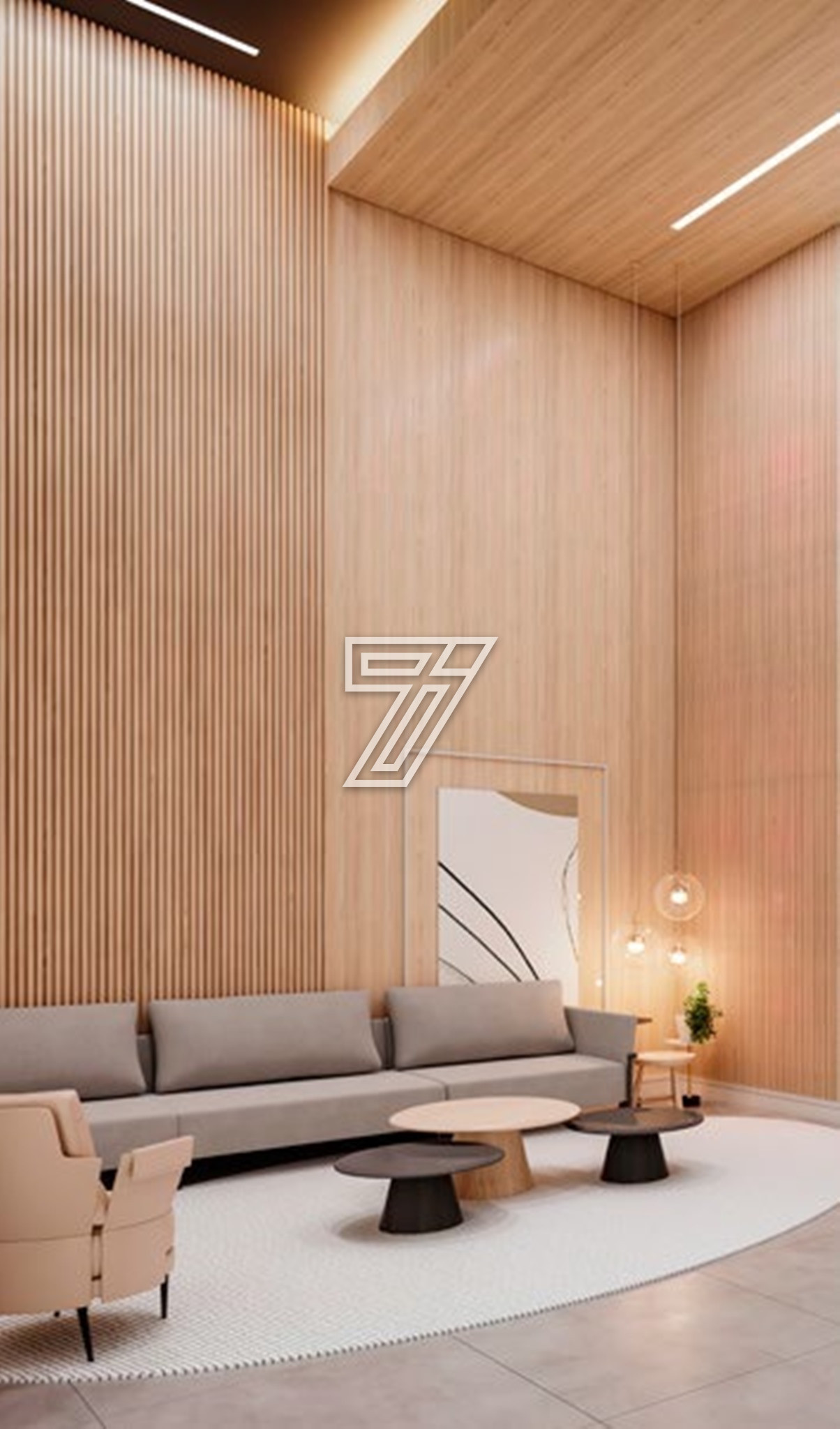 Com linhas retas e características modernas como pele de vidro e brises verticais, a fachada do Fifty se destaca na paisagem de maneira leve e contemporânea. O resultado do projeto de arquitetura é um empreendimento de visual harmônico, mas que a transmite elegância e imponência, elementos presentes no conceito do produto.