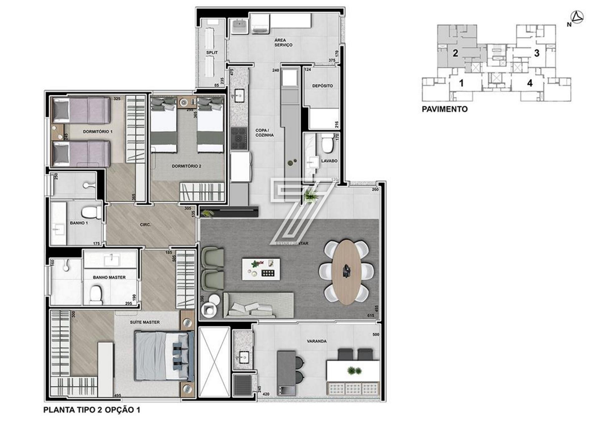 Infraestruturas: para instalação de ar-condicionado split (varanda técnica), instalação de coifa, toalheiro elétrico e desembaçador de espelhos