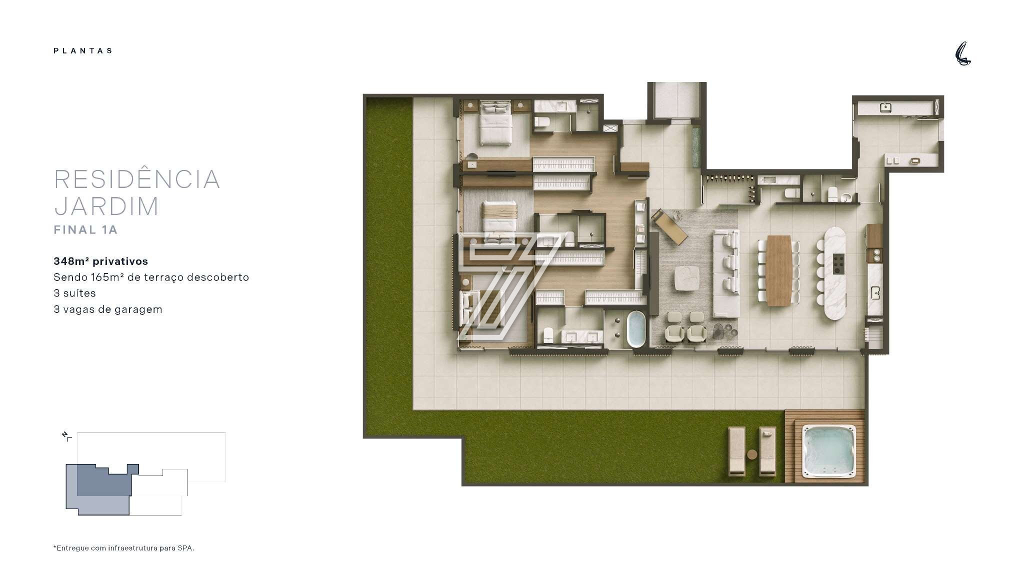 182,85m² privativos + 165,45m² de jardim externo exclusivo = 348,30m² de área privativa