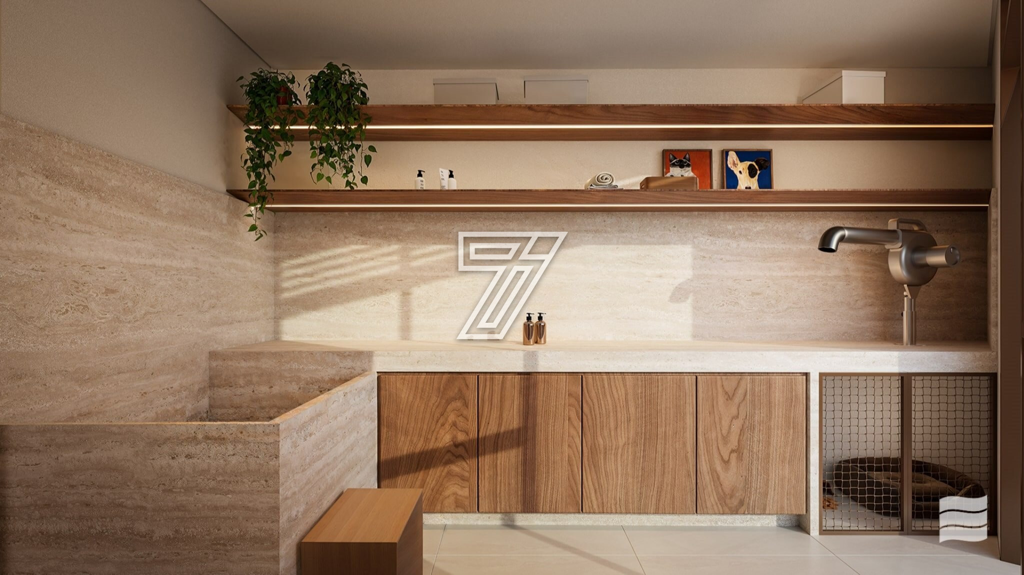 Guarita blindada, Hall de entrada, Central de entregas e delivery, Salão de festas com lounge externo, Fireplace, Espaço relax, Playground, Brinquedoteca, Pet care, Pet place, Piscina adulto e infantil coberta e aquecida, Sauna seca com vestiários, Academia, Horta, Garagem com piso epóxi, CFTV, Bicicletário, Copa e vestiário para funcionários, Carregador para veículo elétrico - um por unidade.