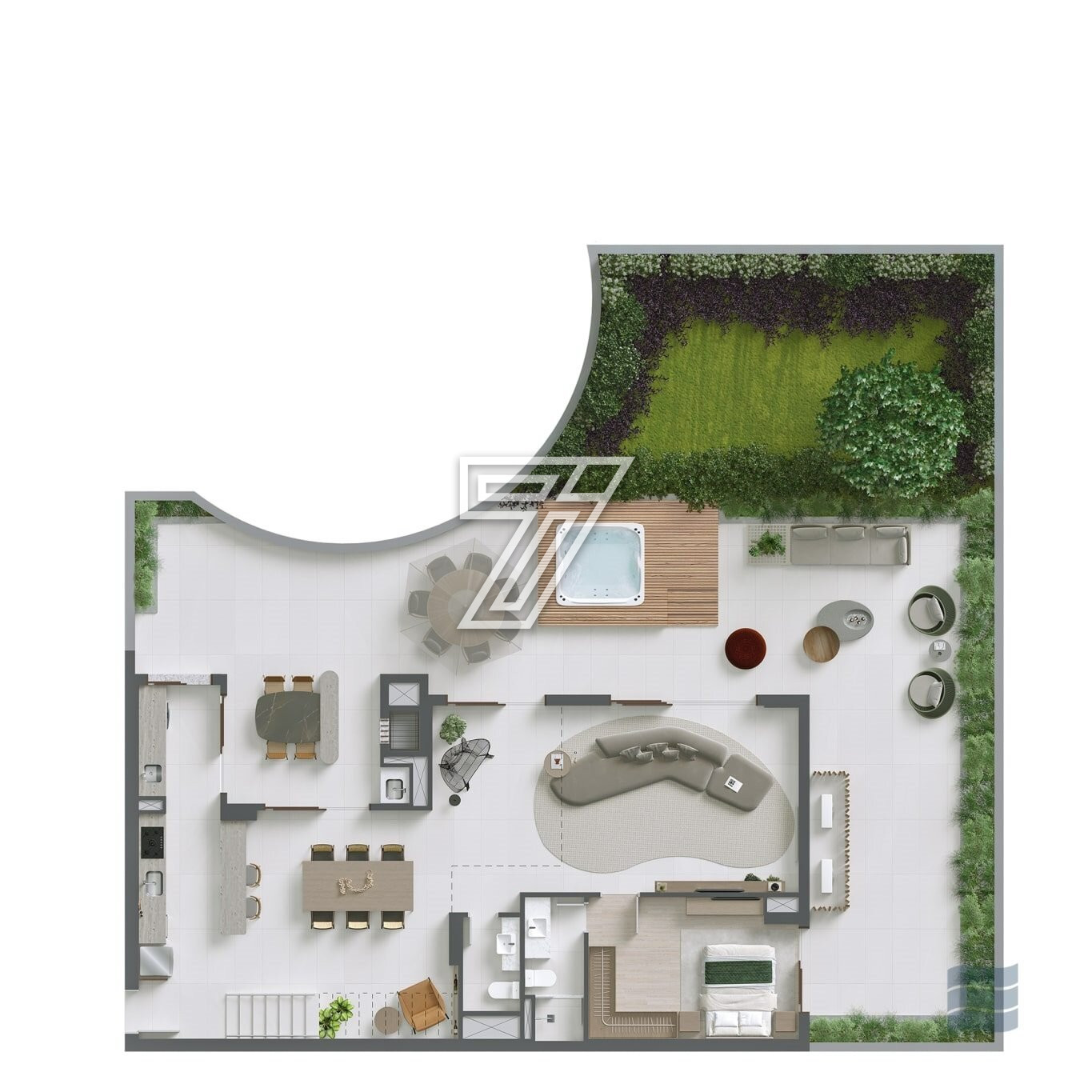 194,14m² de apartamento + 140,28m² de jardim privativo = 334,42m² de área privativa