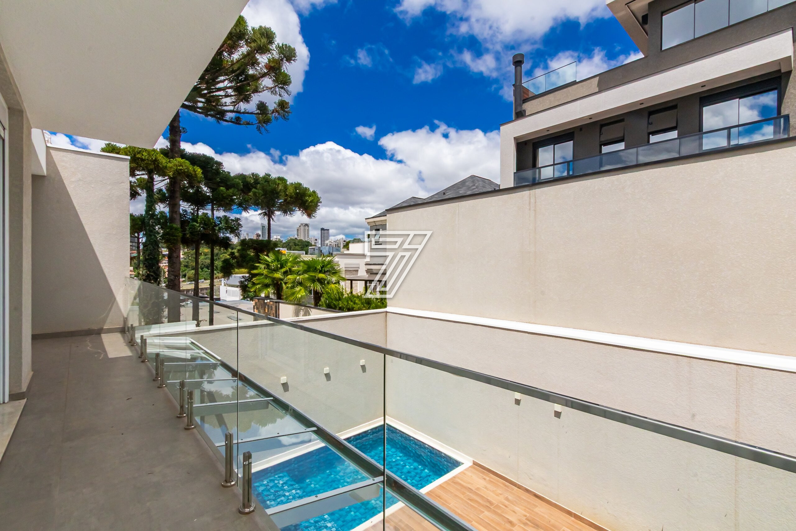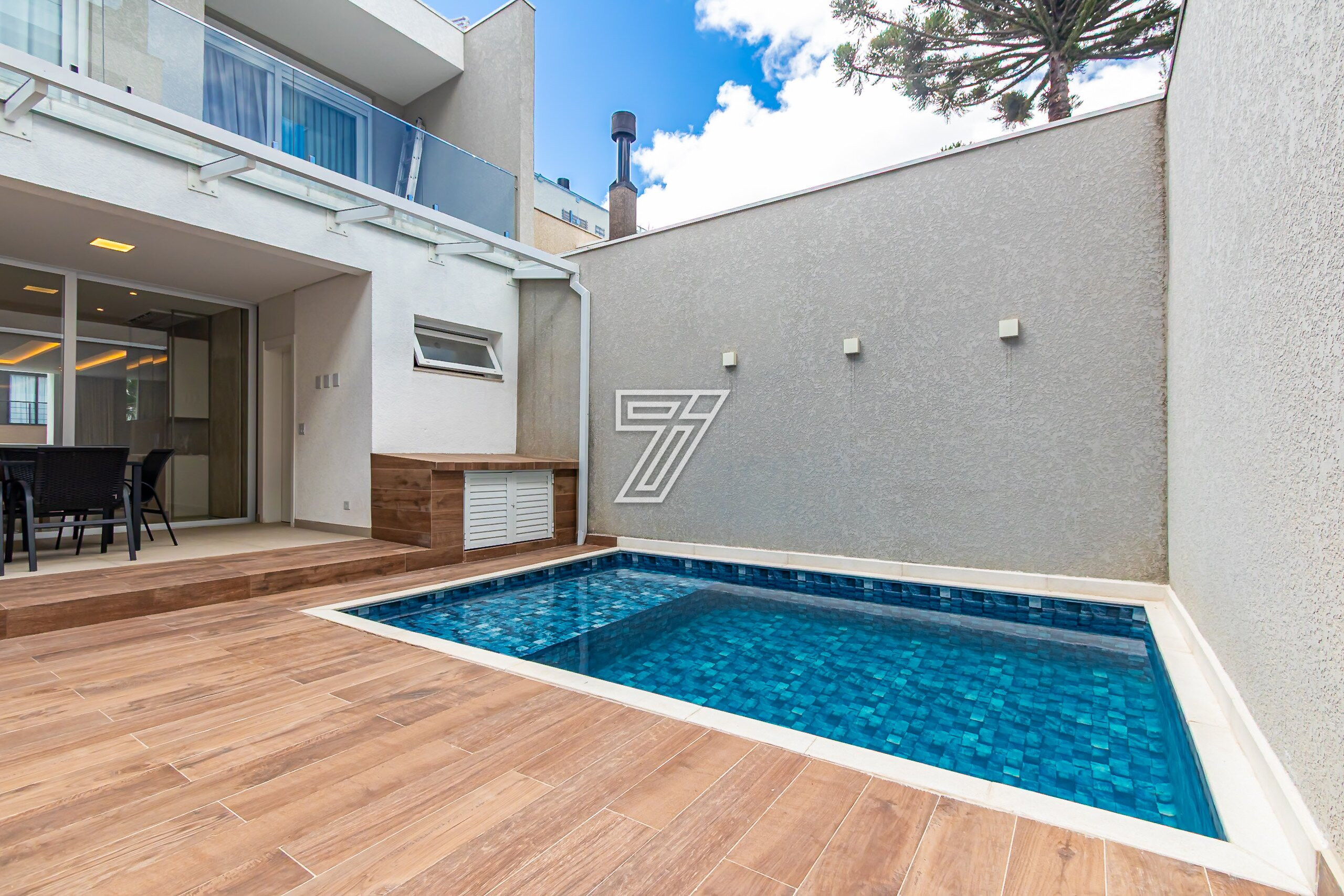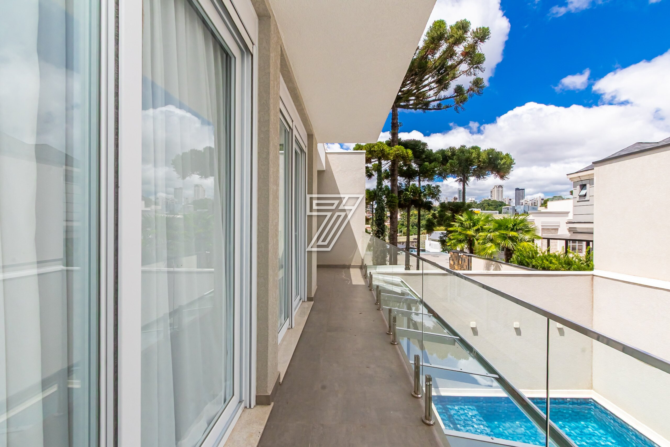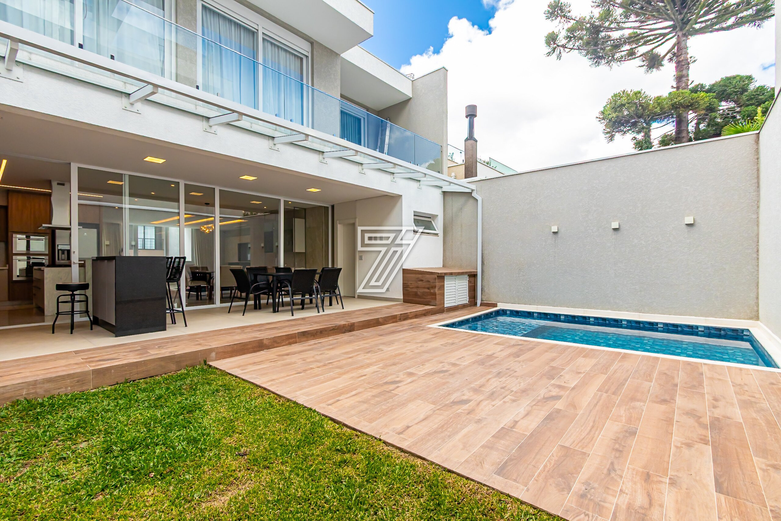 Residência no Condomínio Park Boulevard, com 345 m² de área construída, em condomínio fechado nas proximidades do Parque Barigüi, distribuída em três pavimentos.