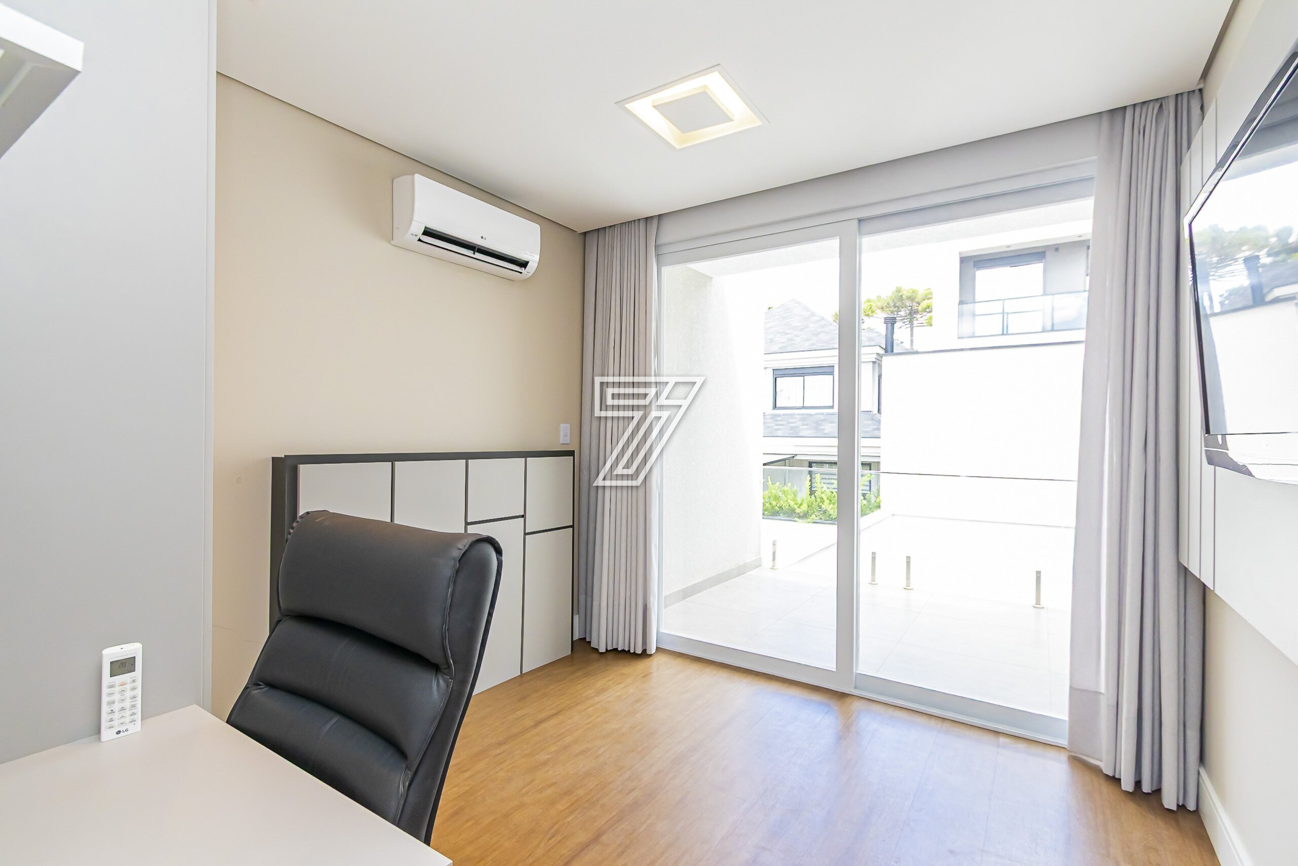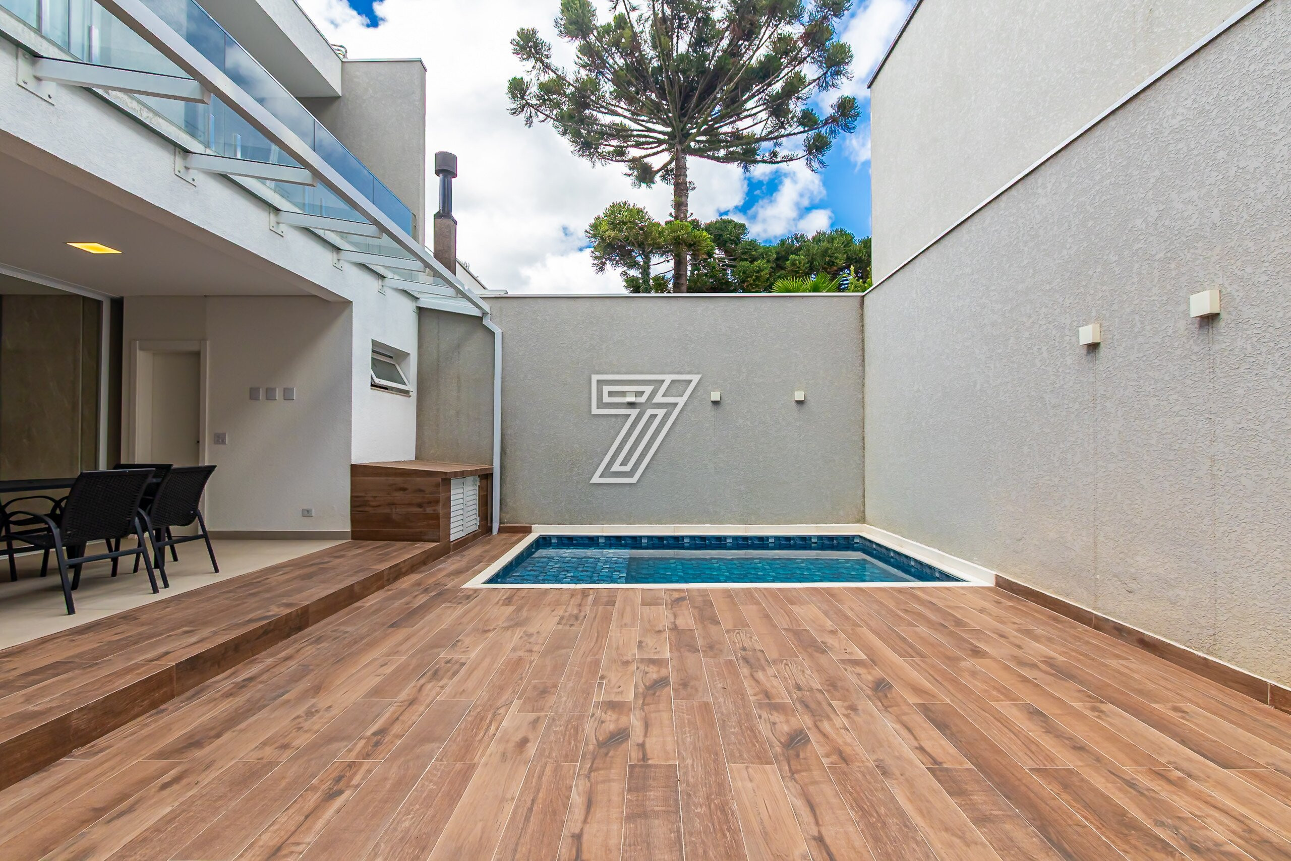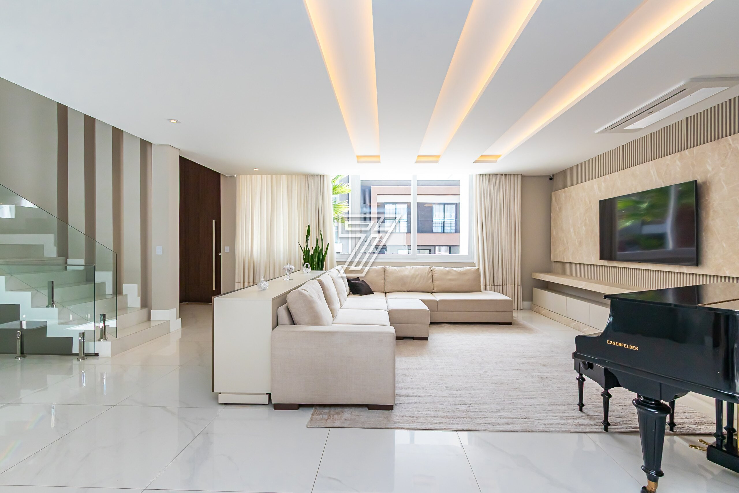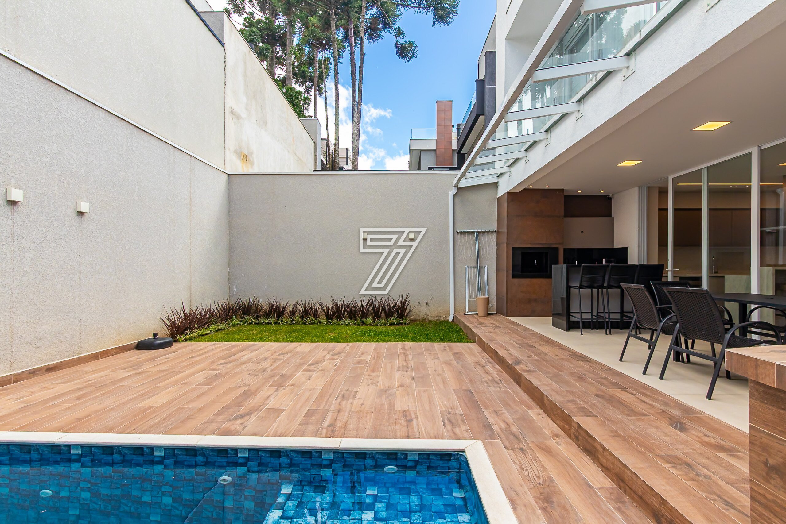 Residência no Condomínio Park Boulevard, com 345 m² de área construída, em condomínio fechado nas proximidades do Parque Barigüi, distribuída em três pavimentos.