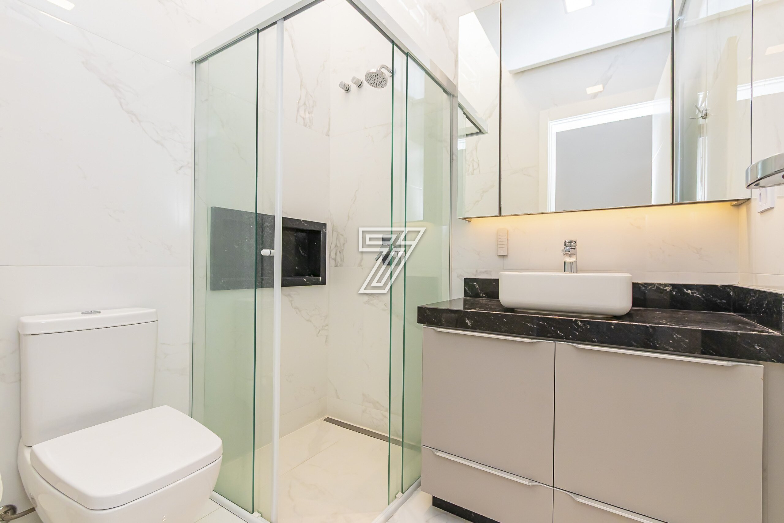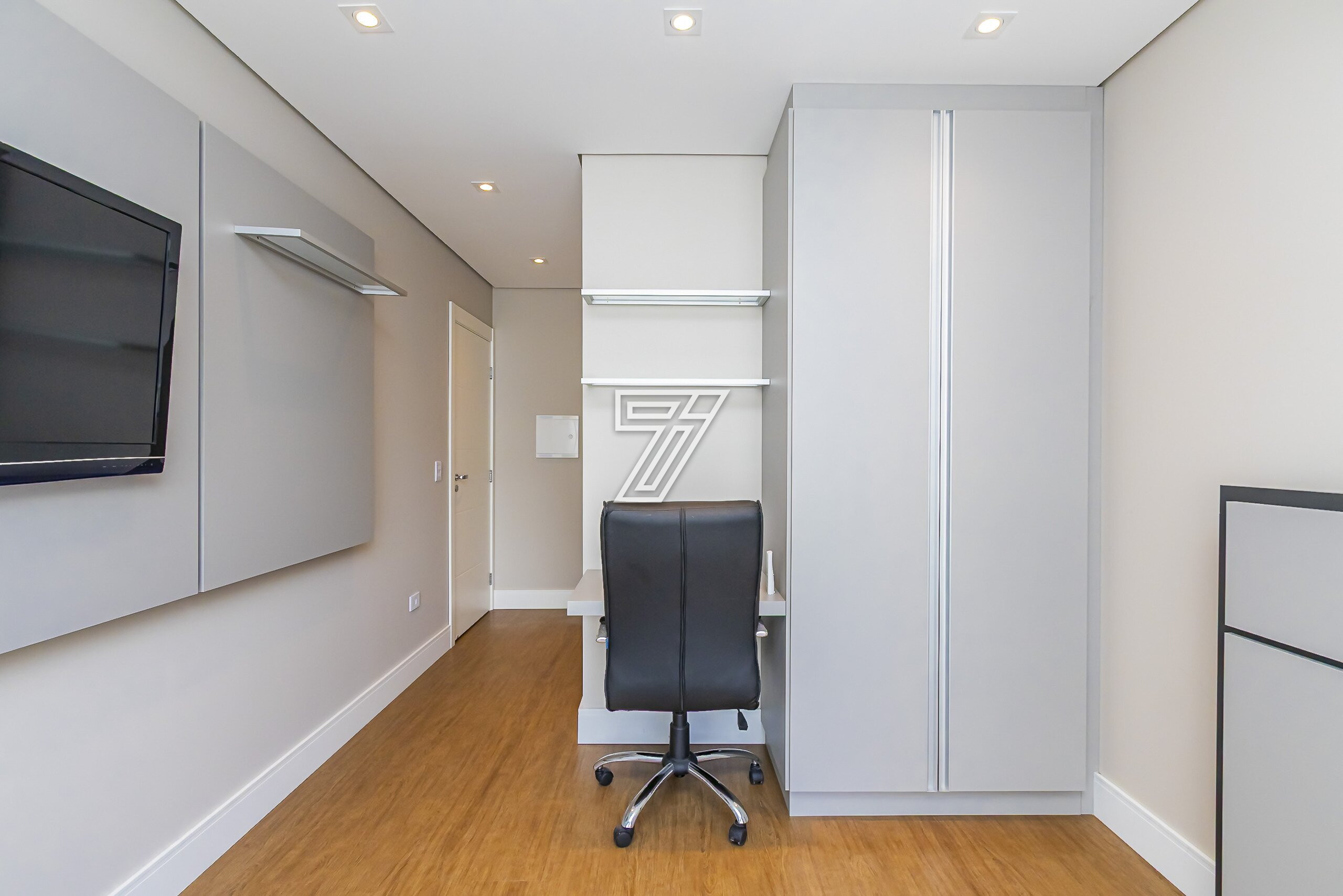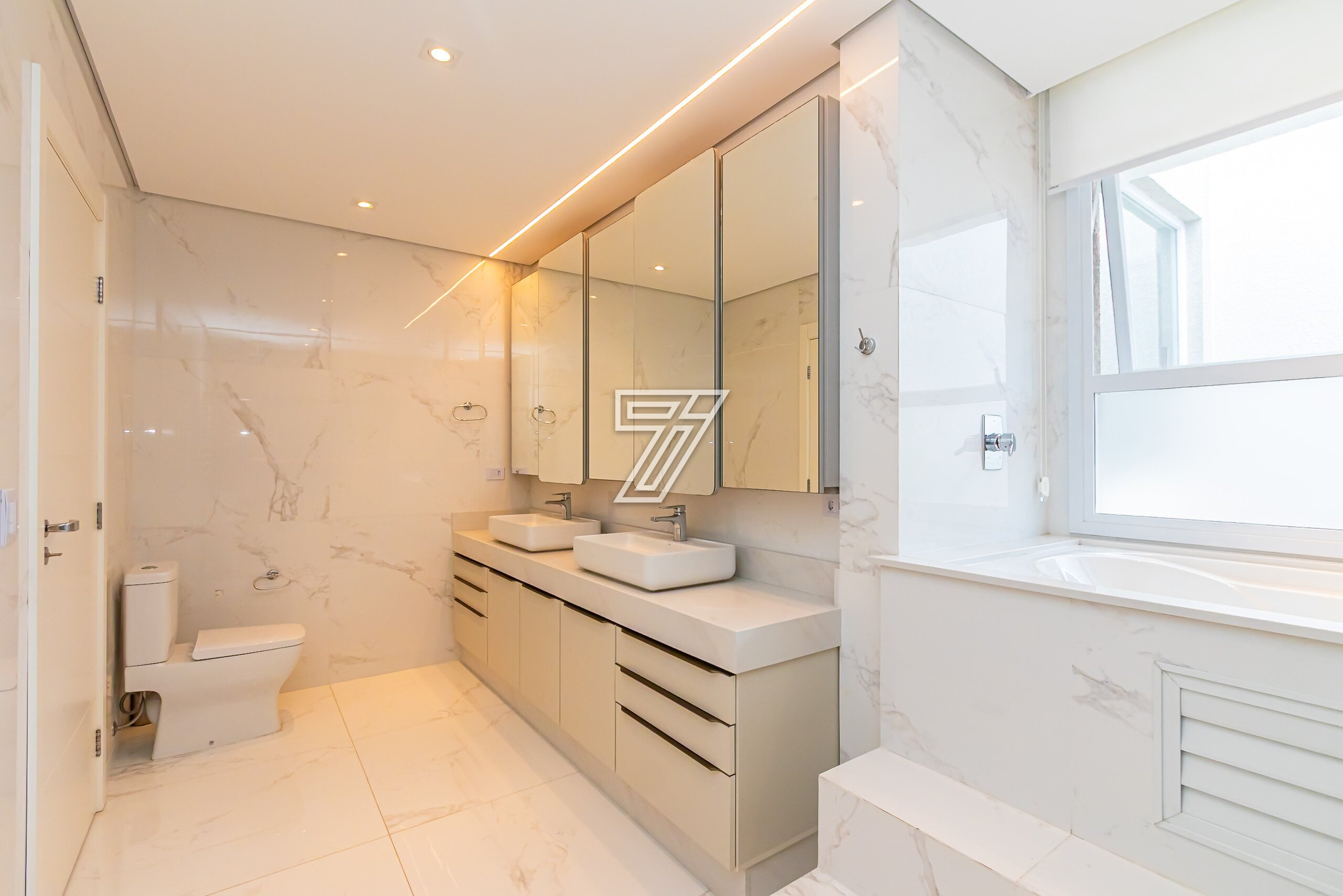 A suíte master possui closet e banheiro com cuba dupla e hidromassagem.