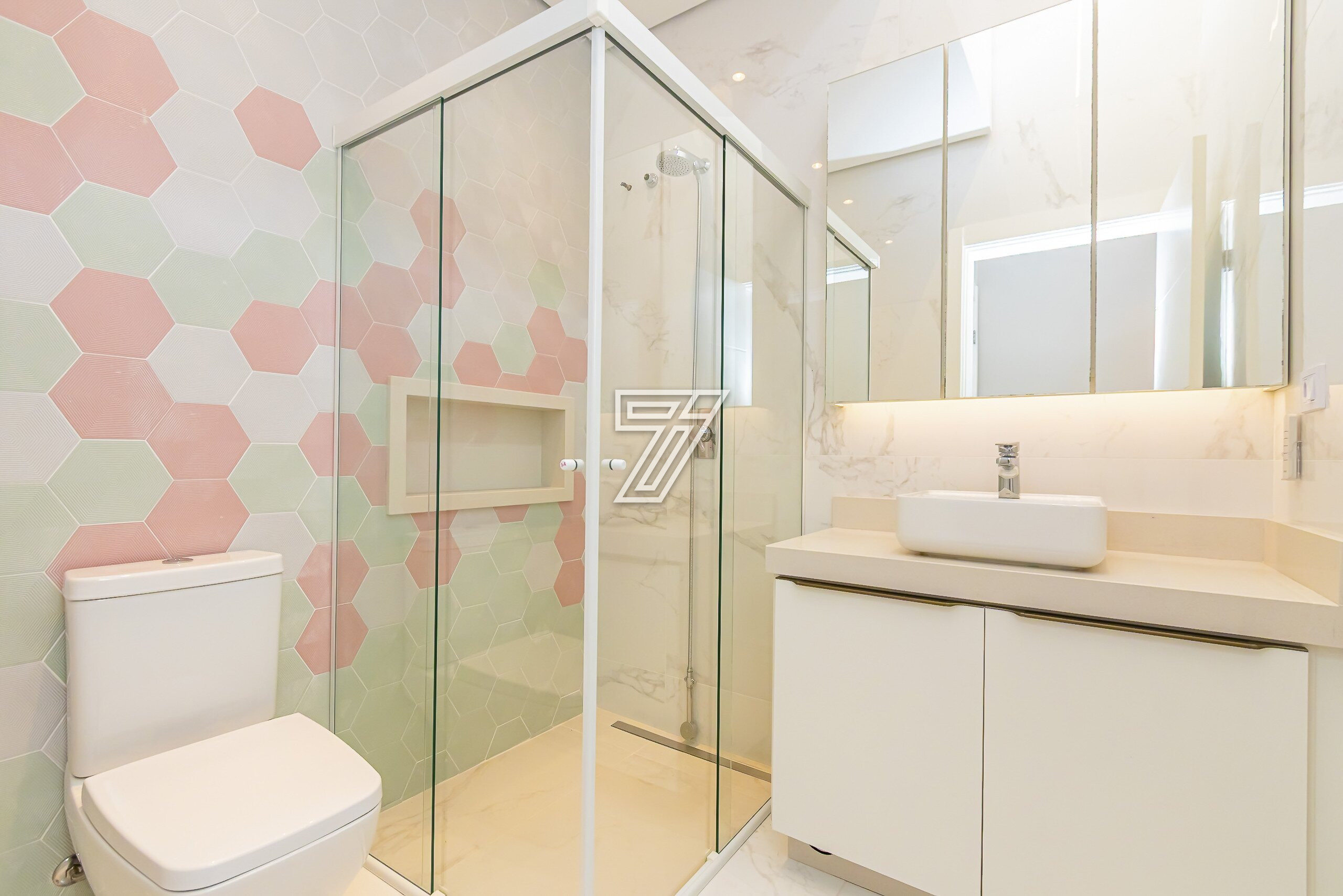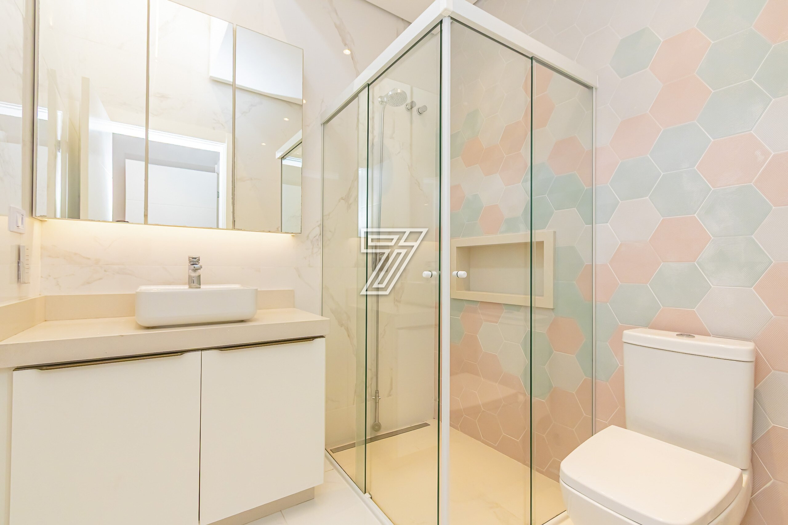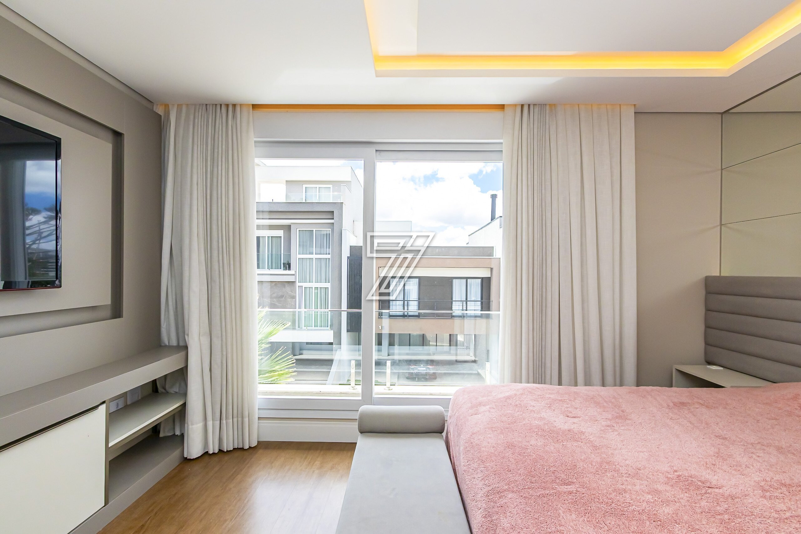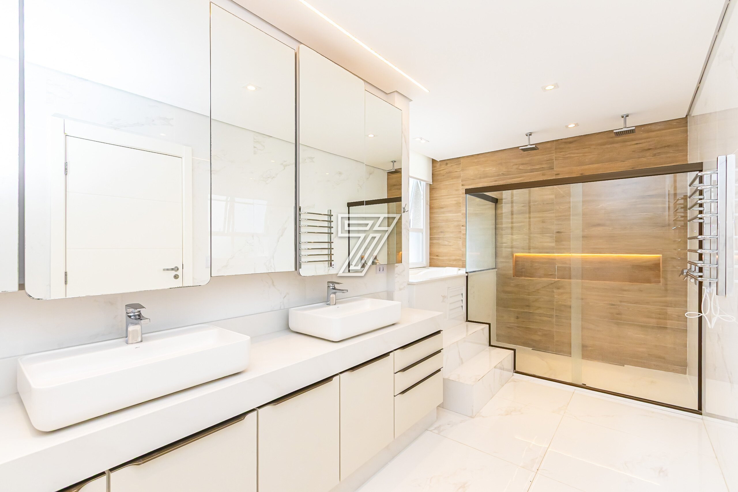 A suíte master possui closet e banheiro com cuba dupla e hidromassagem.