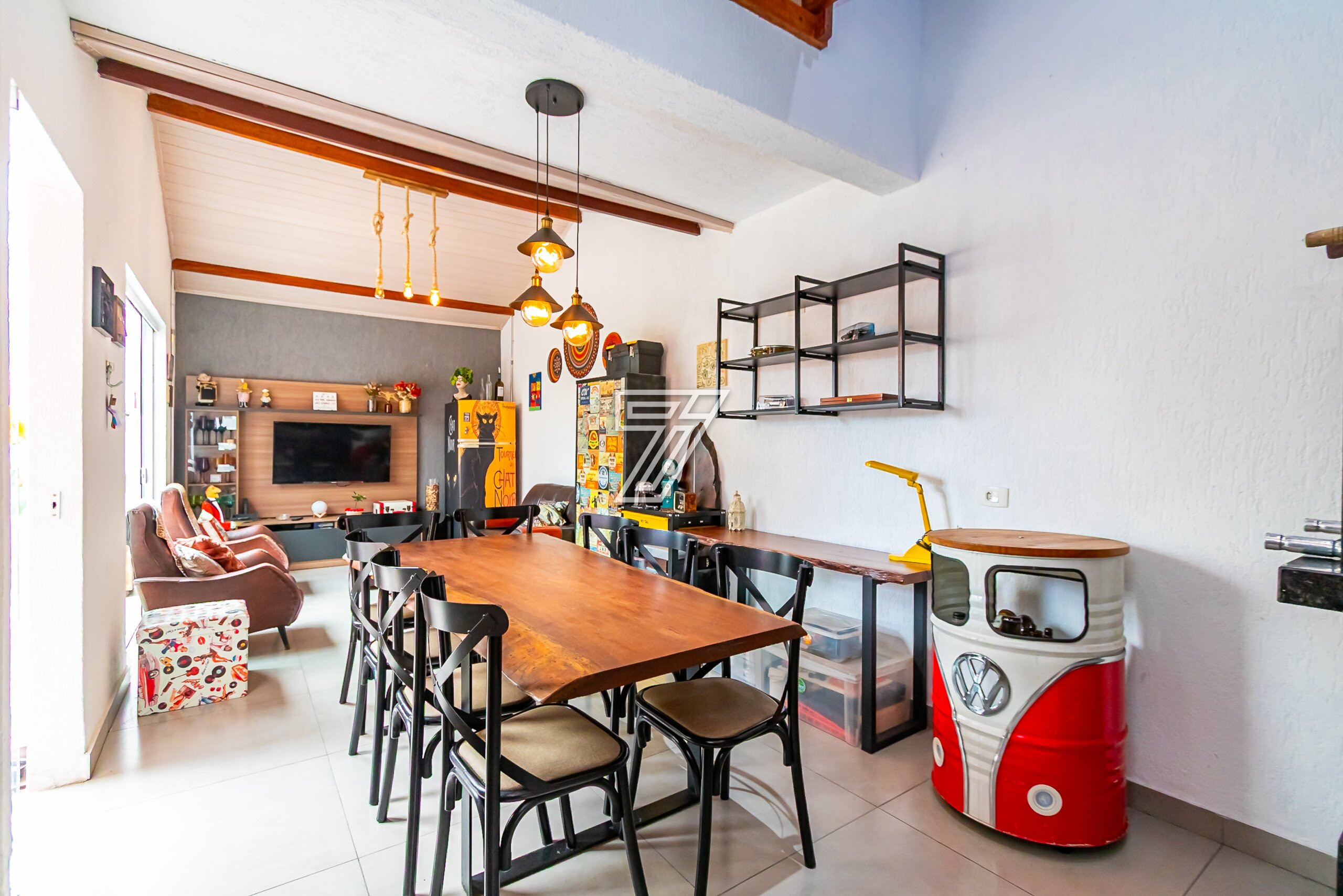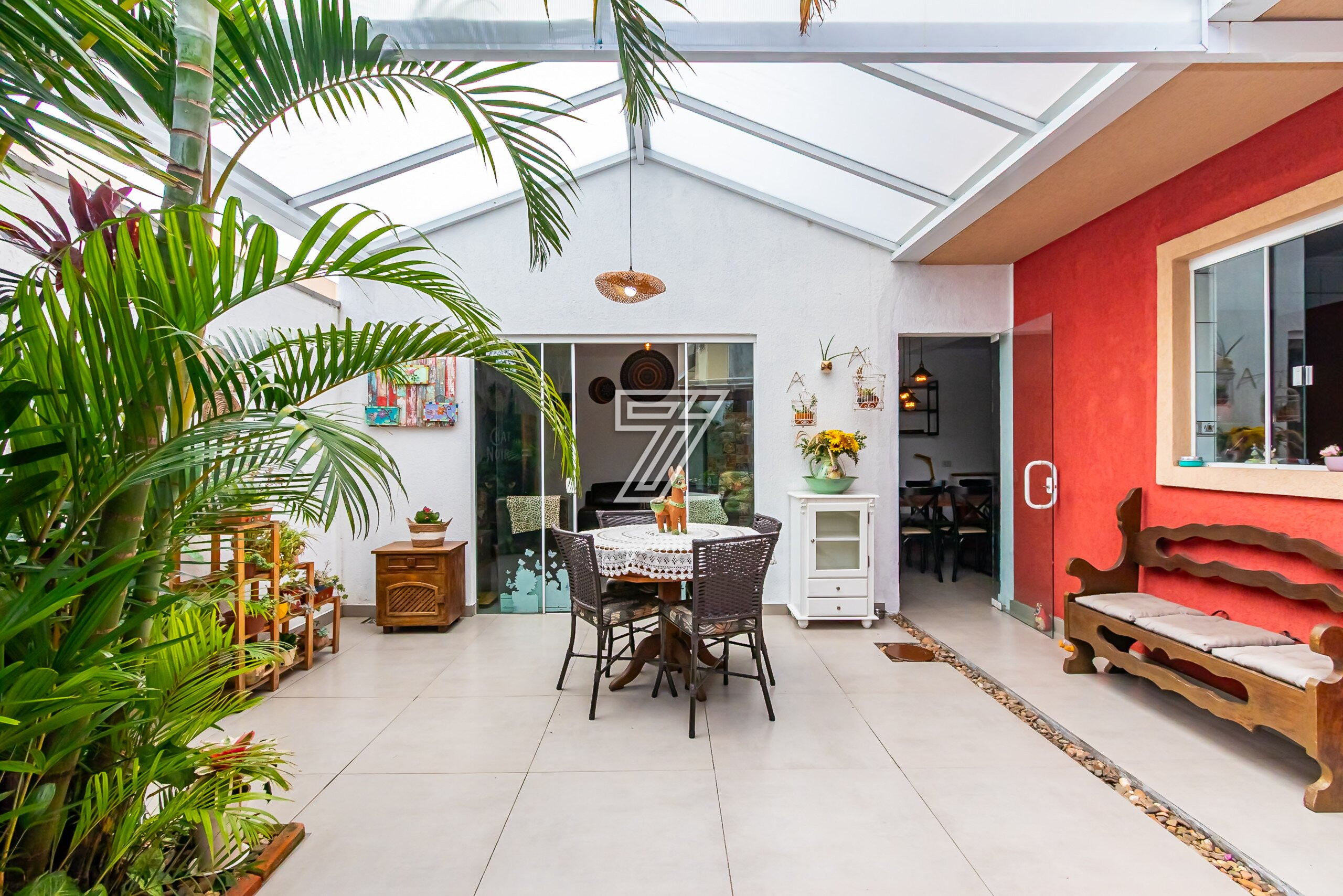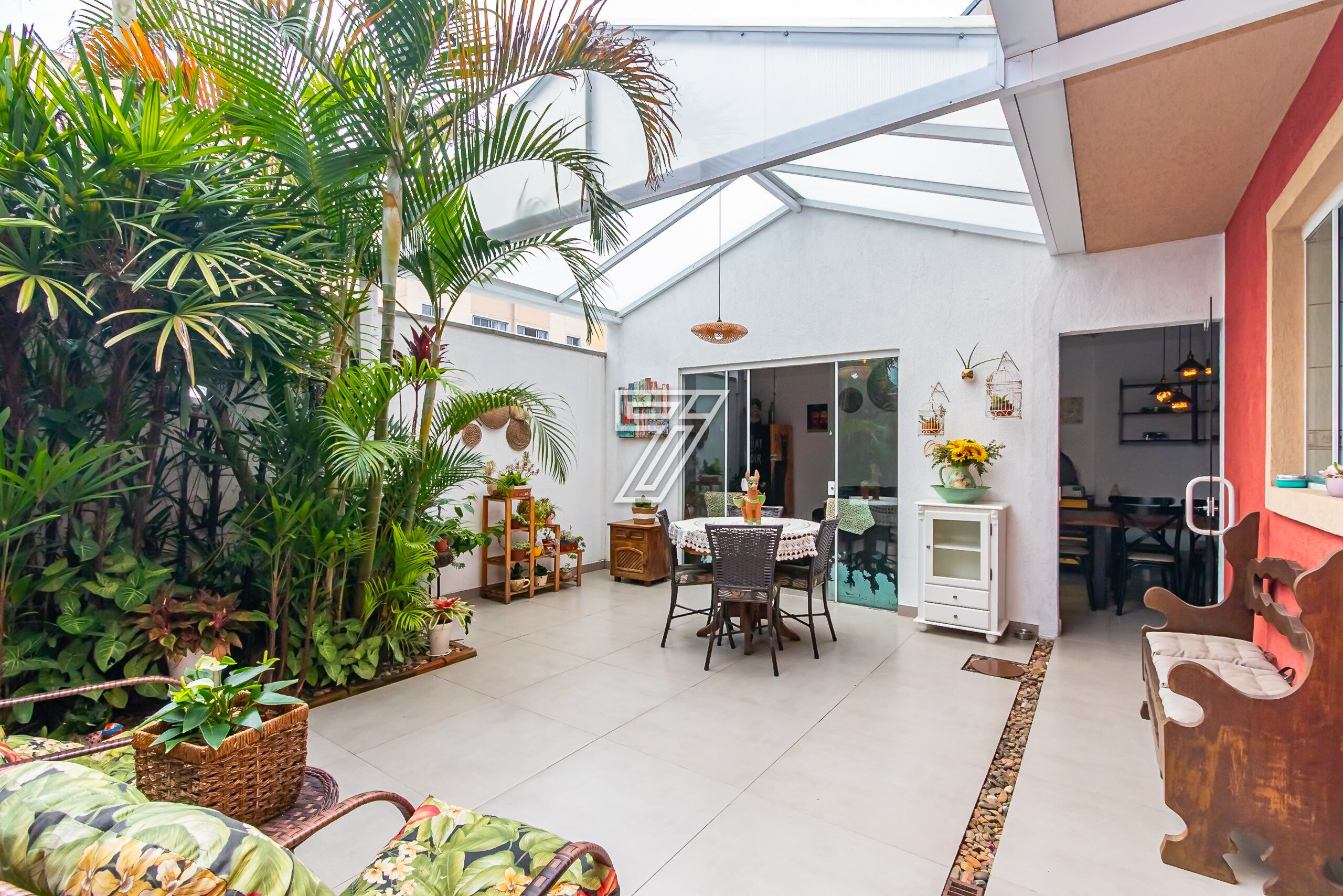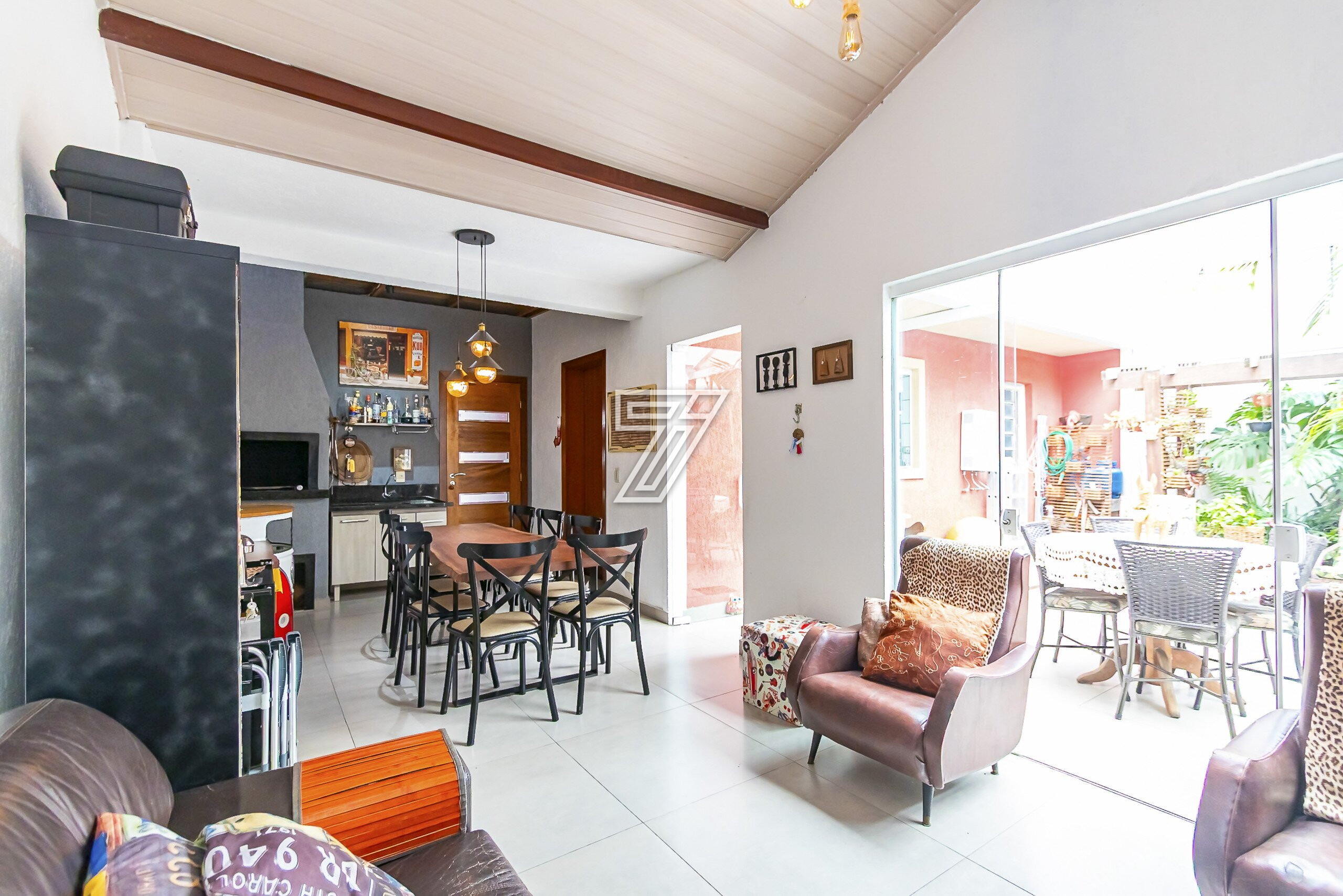 Casa em Condomínio Fechado com 157 m² de área construida com uma área de jardim de aproximadamente de 32 m², integrada com espaço goumert com churrasqueira a carvão, Cozinha com ármarios planejados com janela ampla, com área de serviço separada, Sala ampla para dois ambientes.