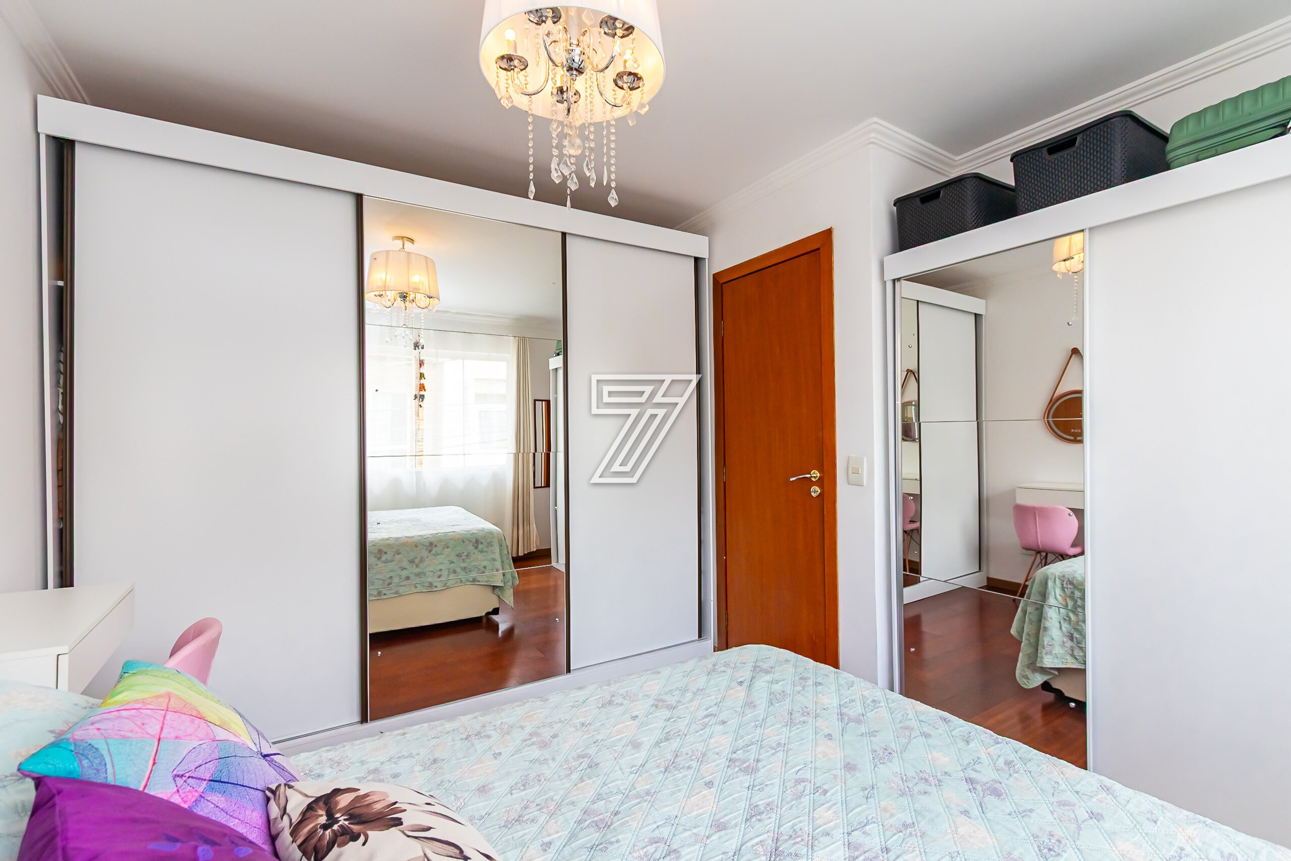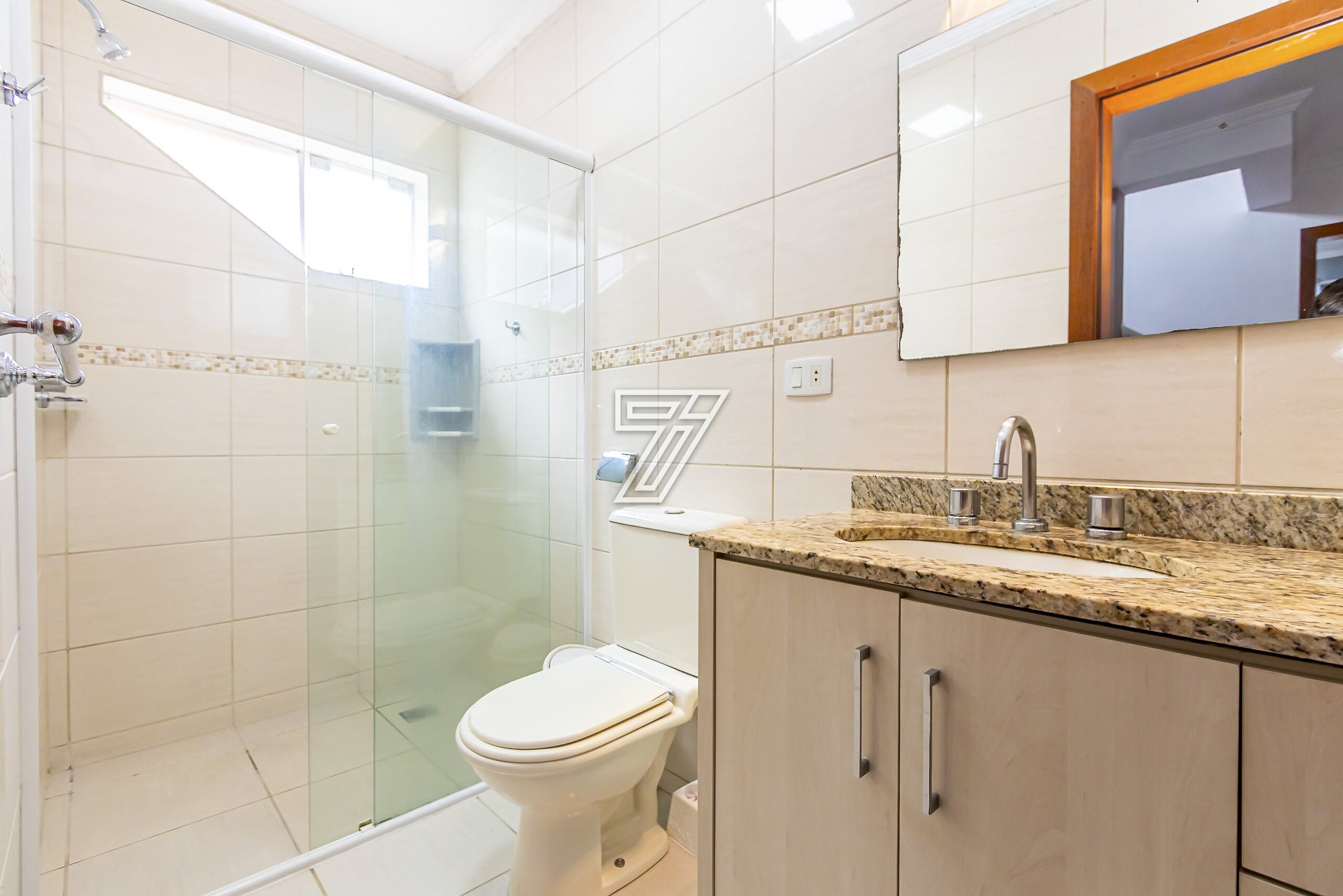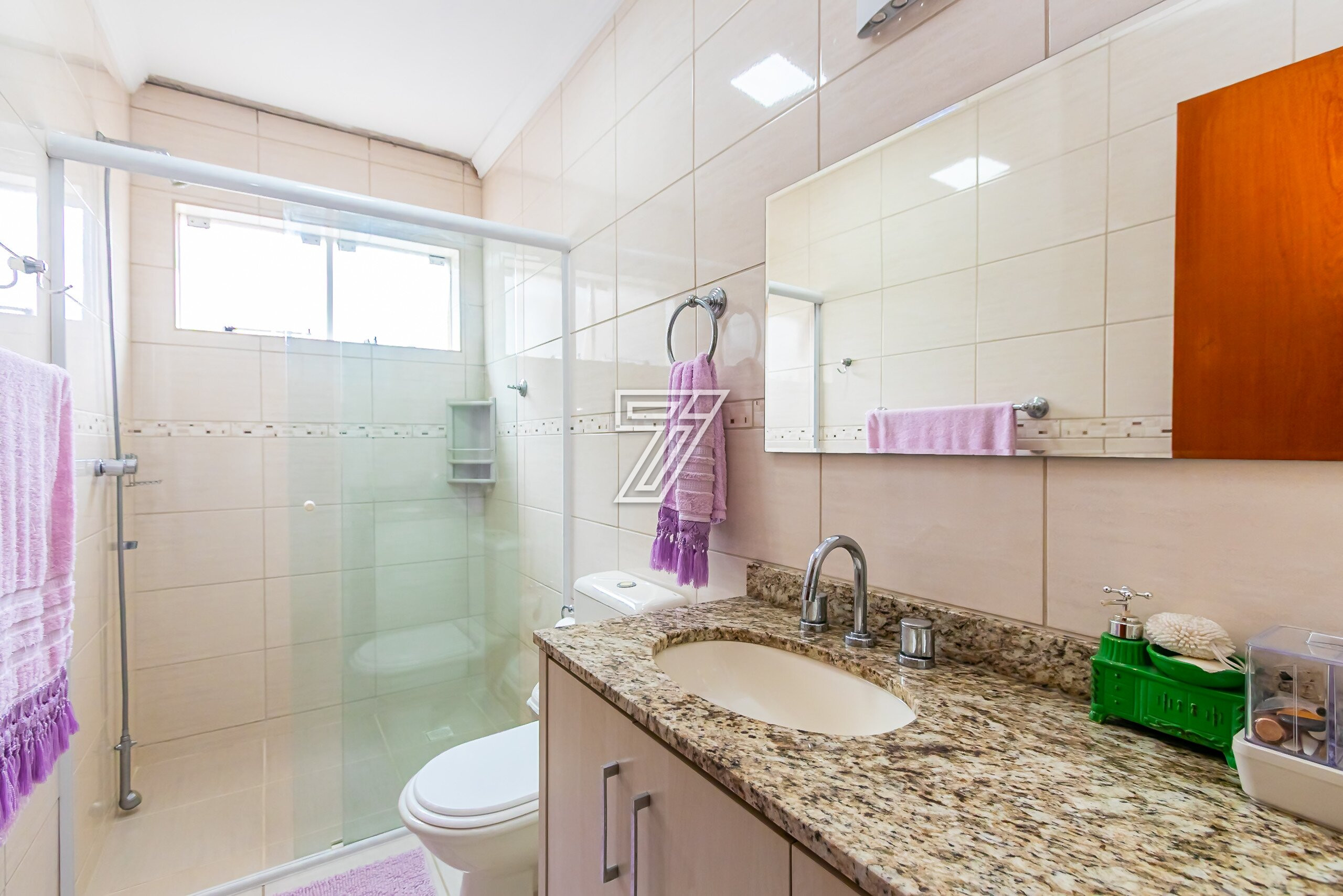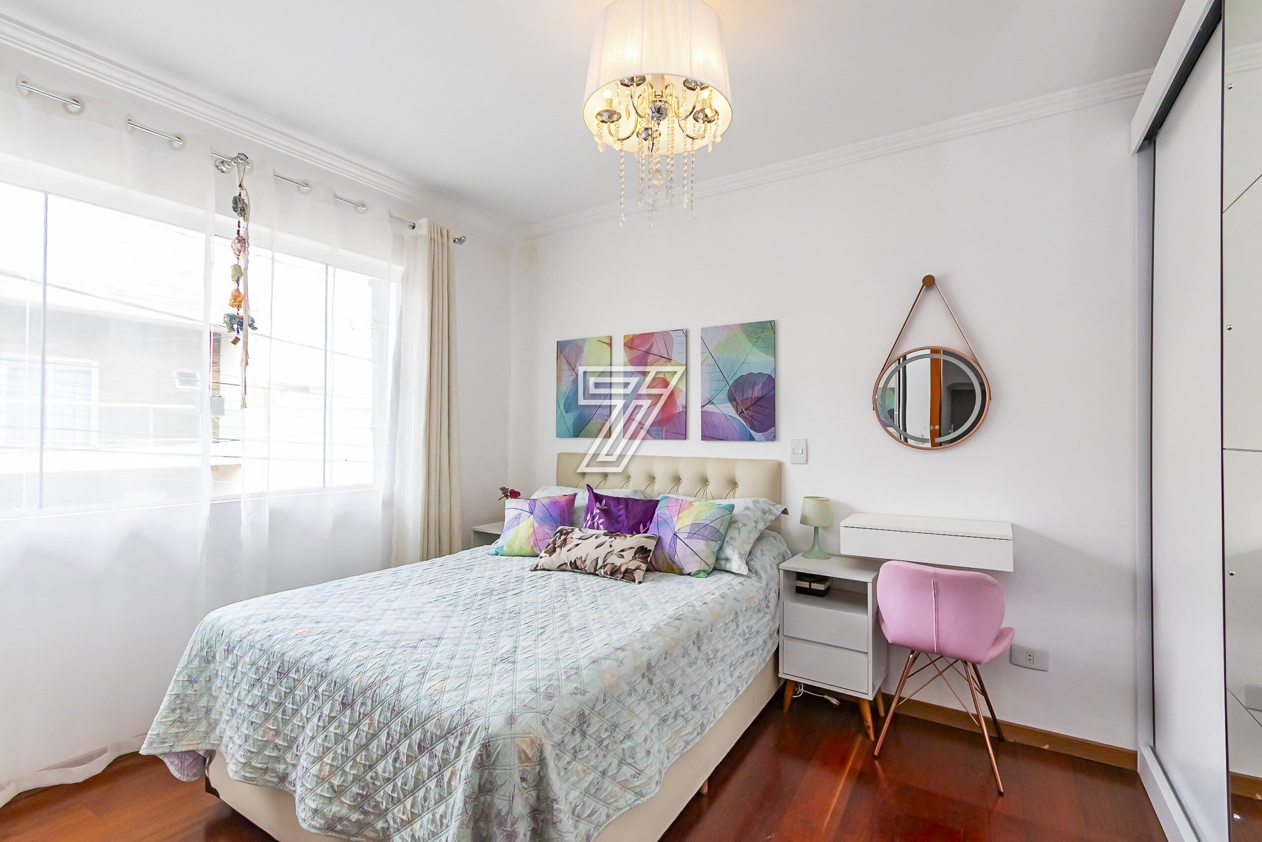 Na parte Superior: 3 Quartos sendo uma suite ampla bem ensolarada,