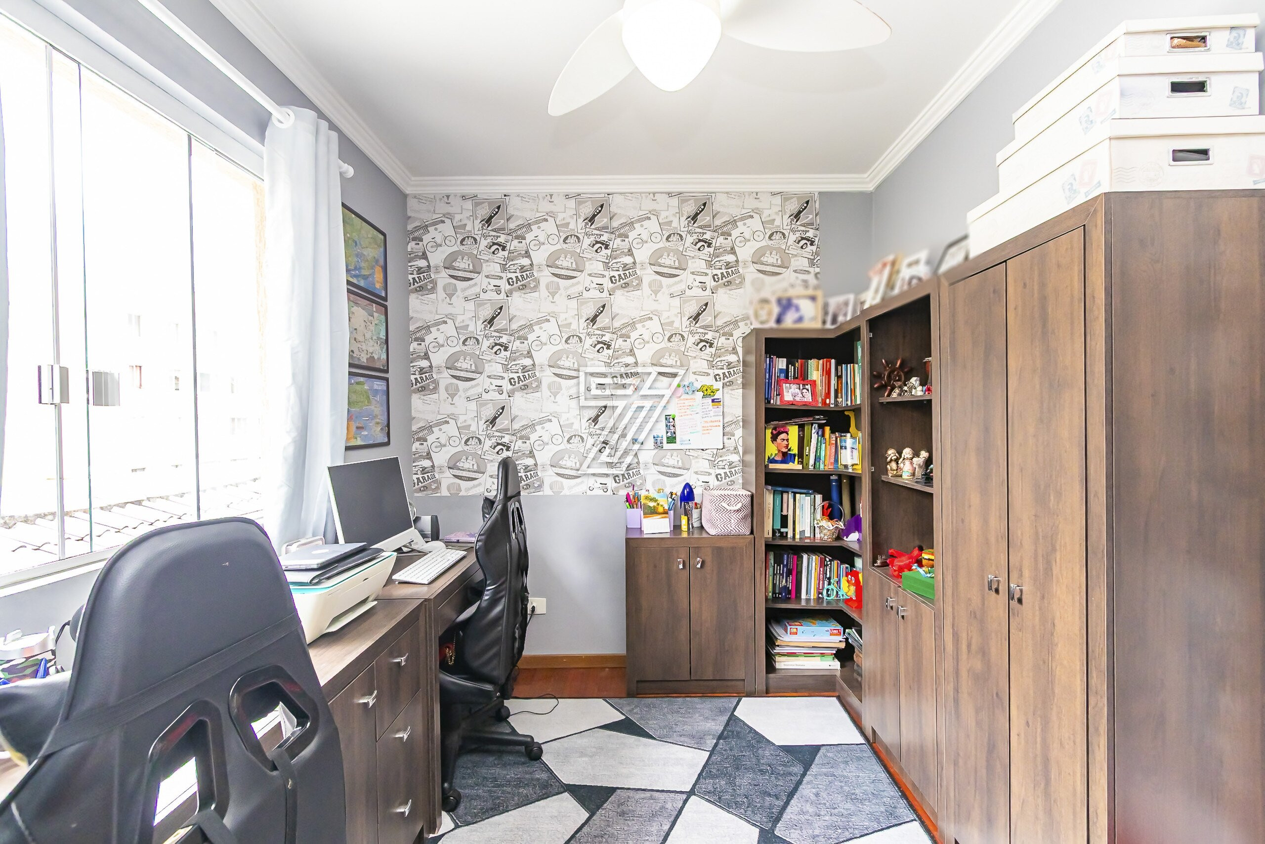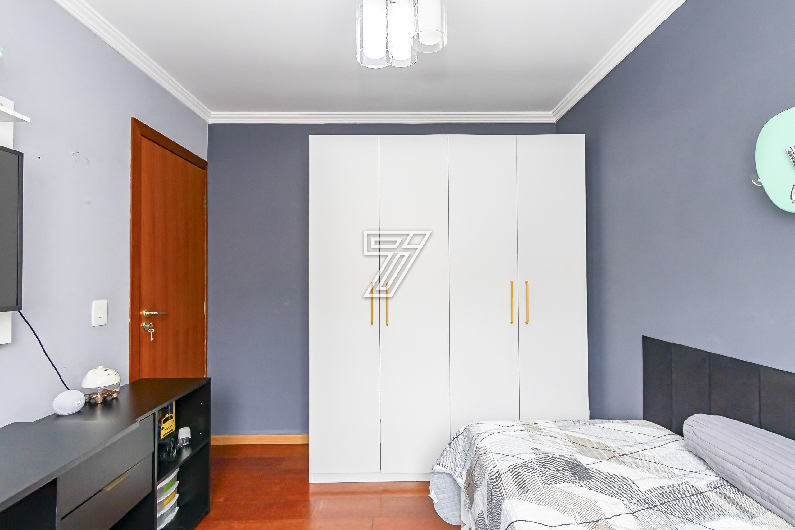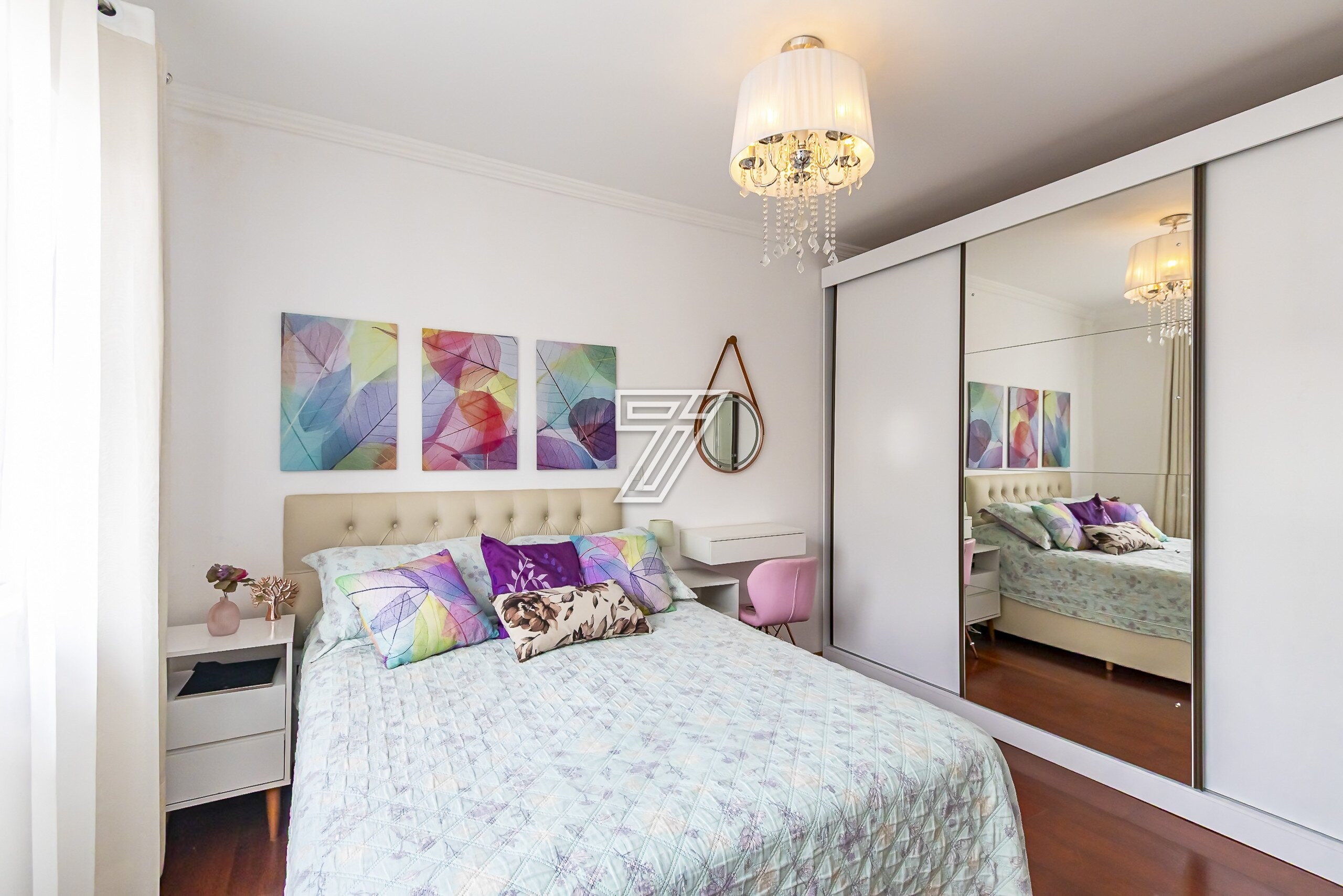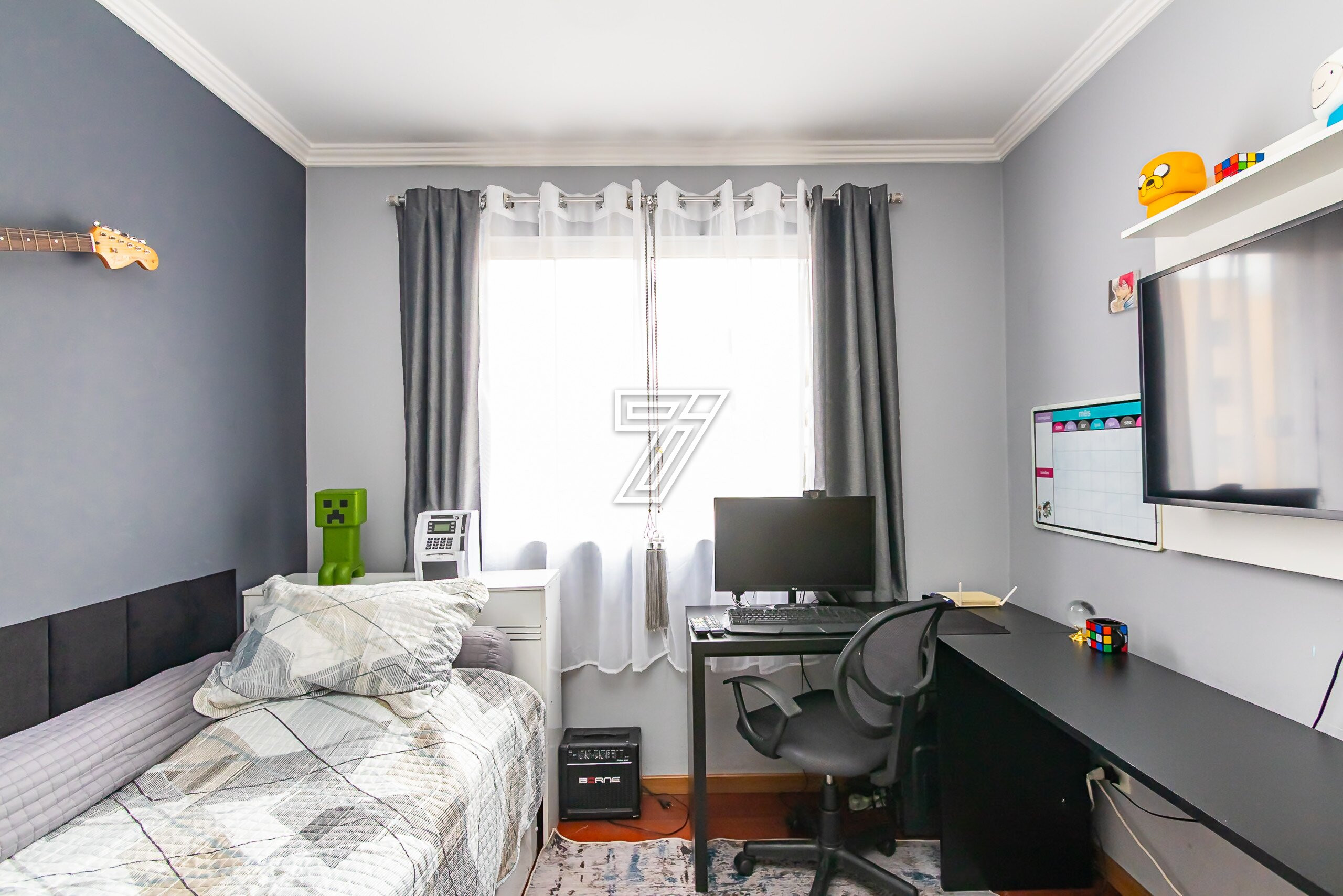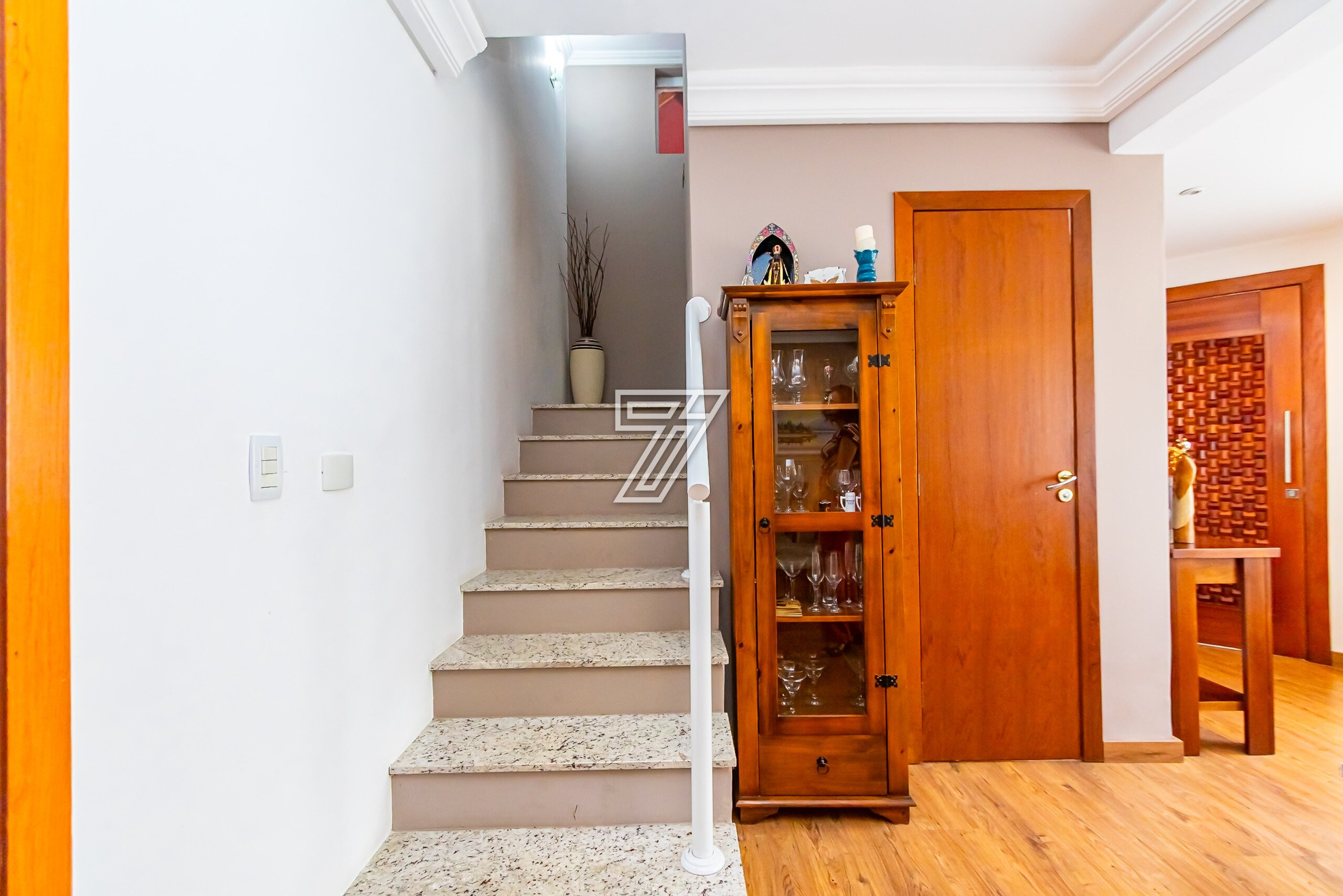 Na parte Superior: 3 Quartos sendo uma suite ampla bem ensolarada,
