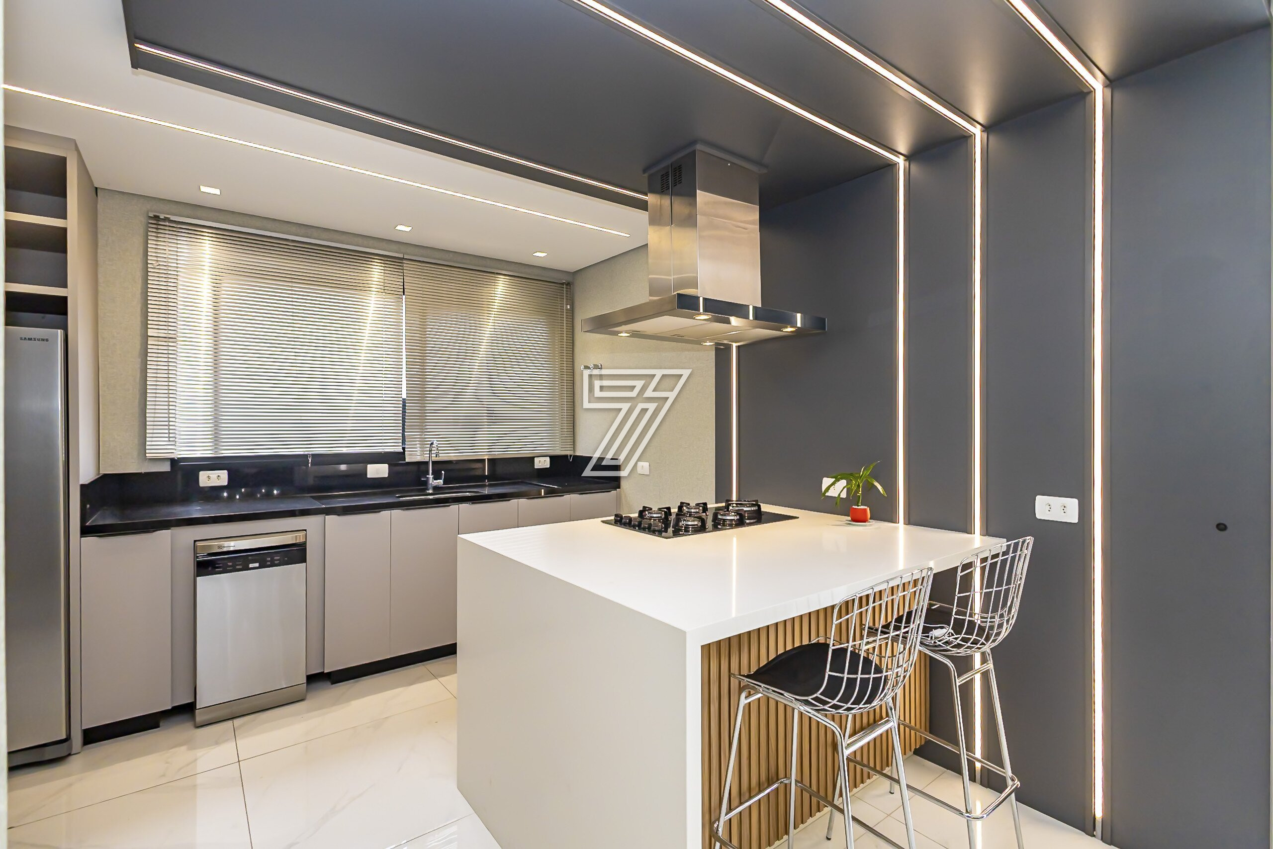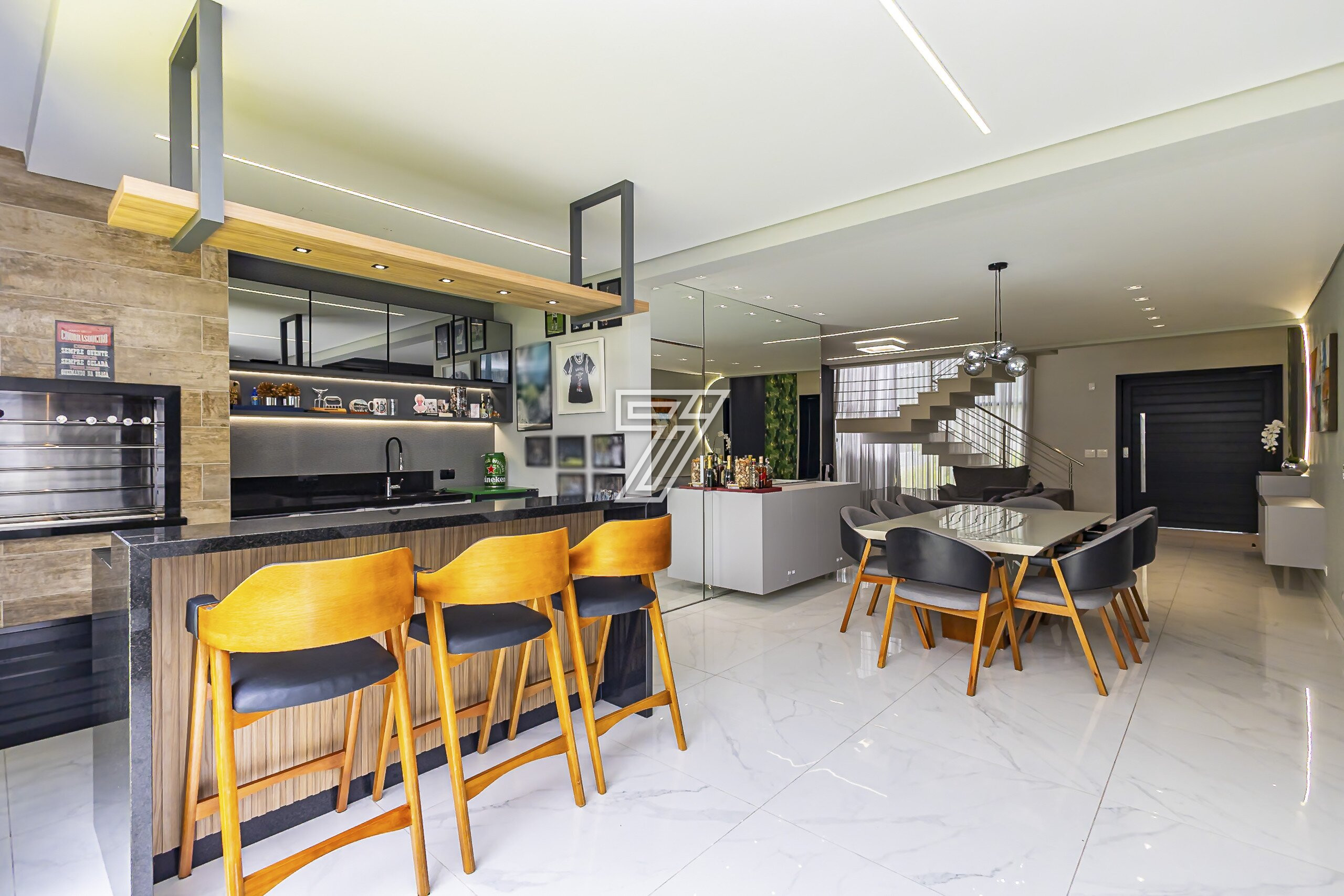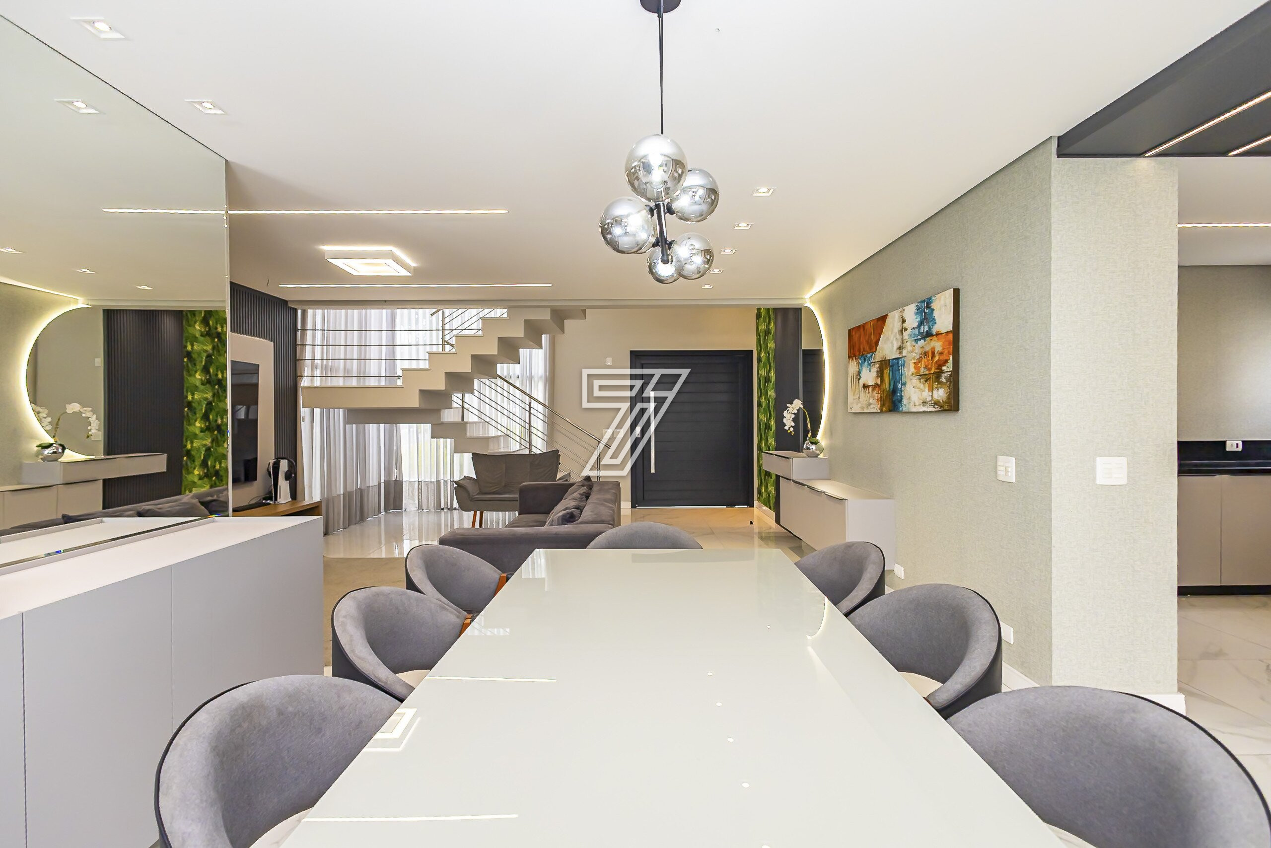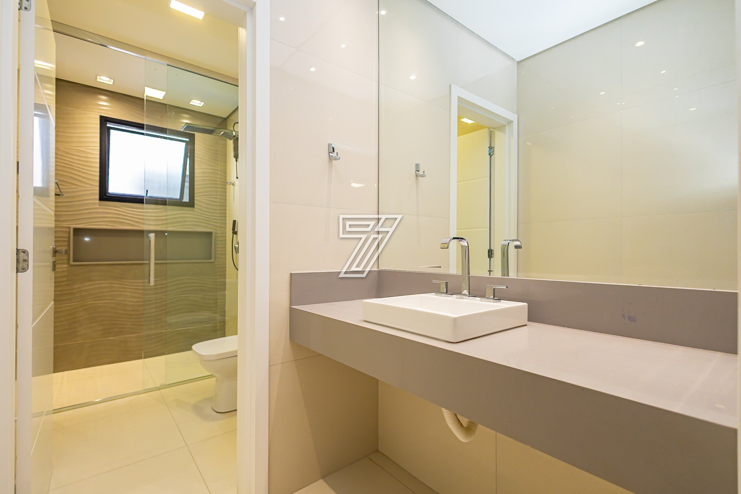 Já no segundo pavimento são três amplas suítes com muita iluminação e um home office que também pode tornar-se dormitório.