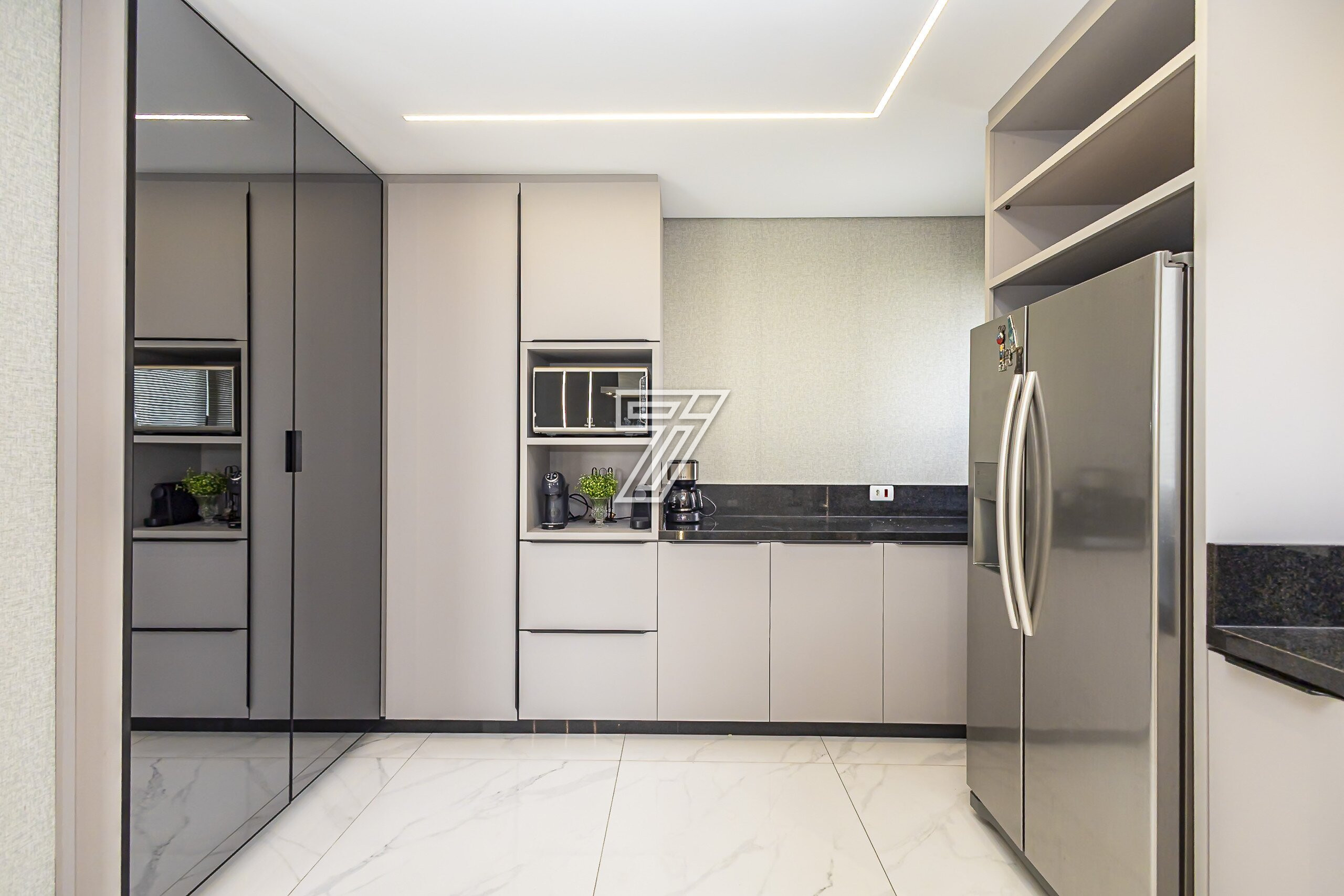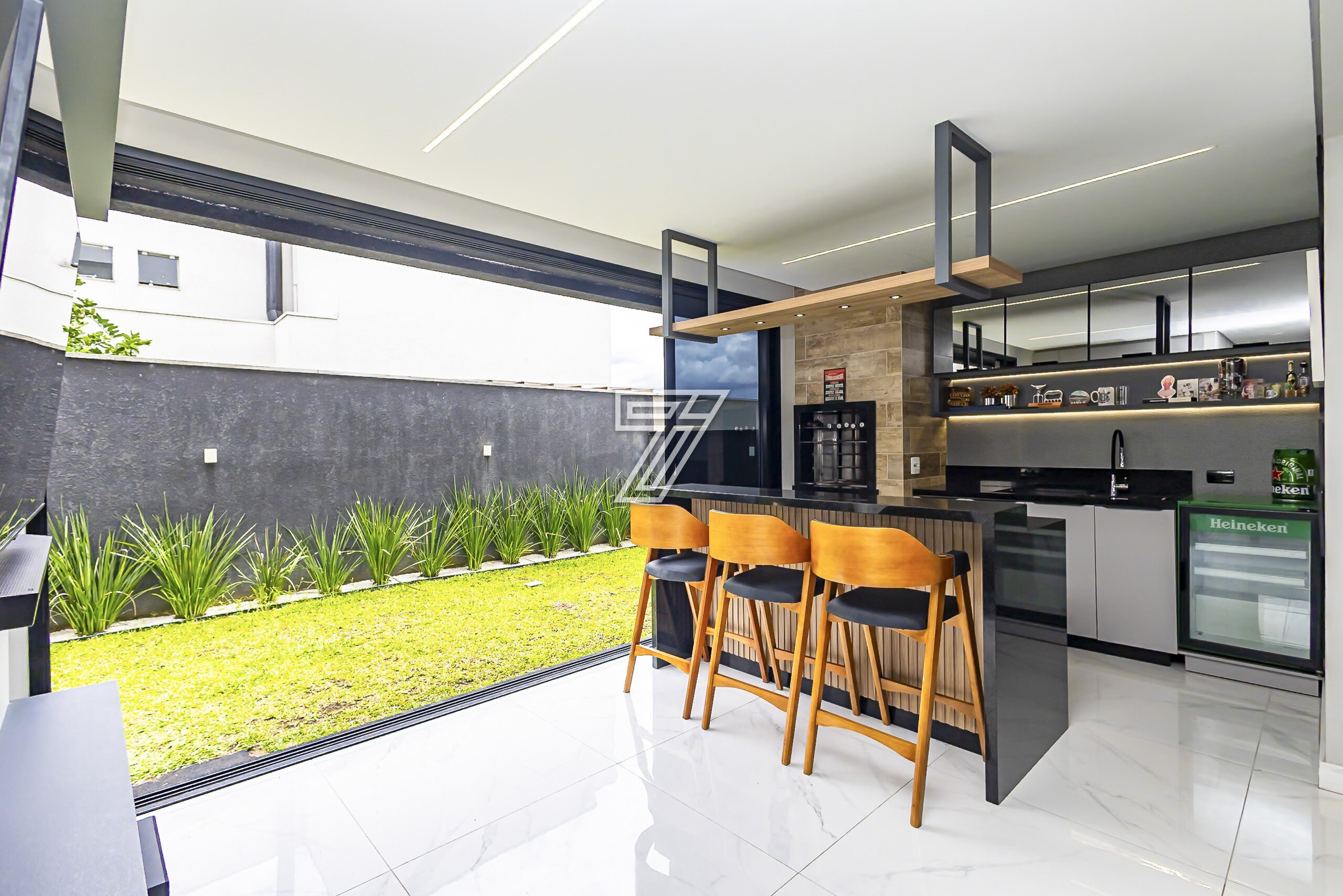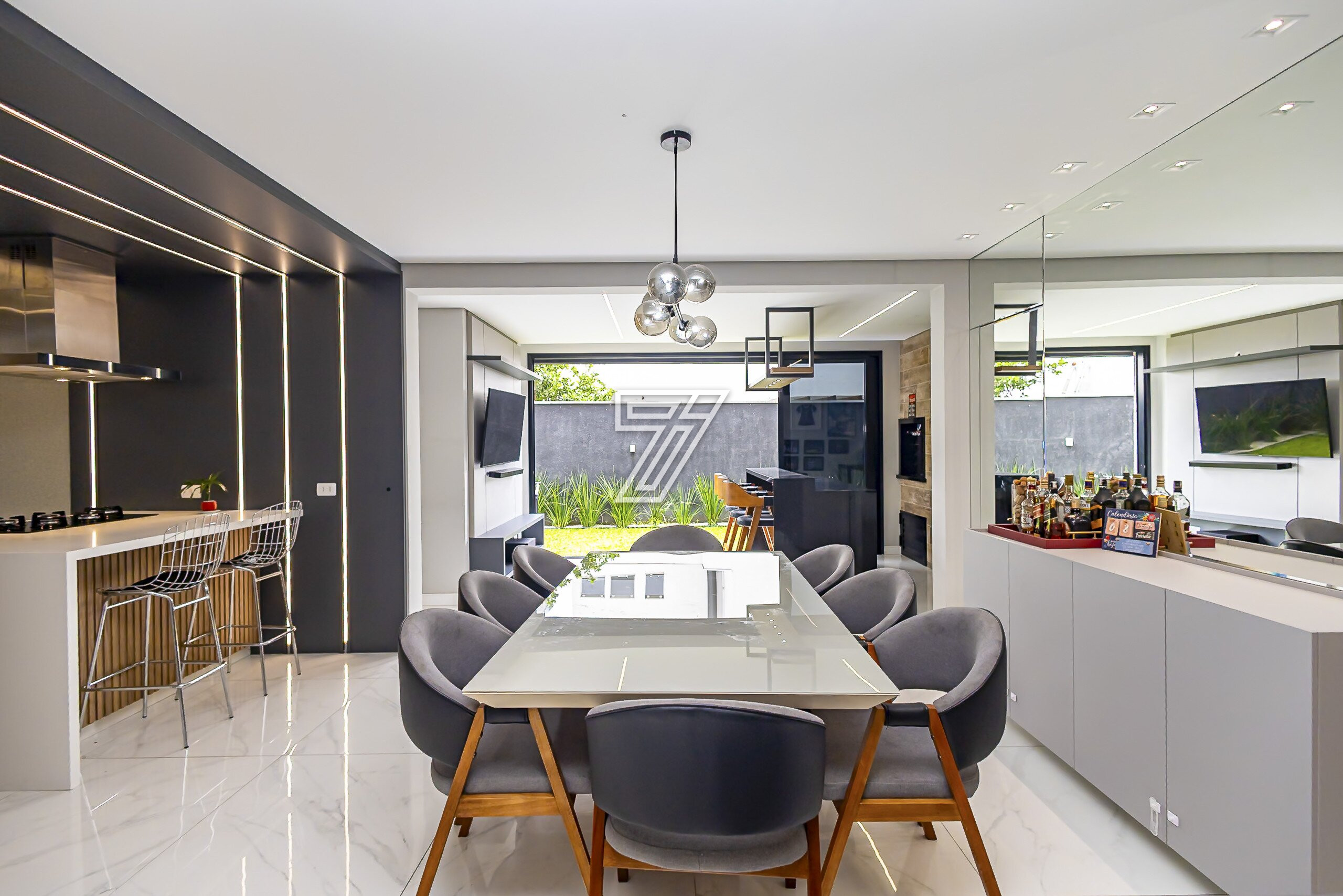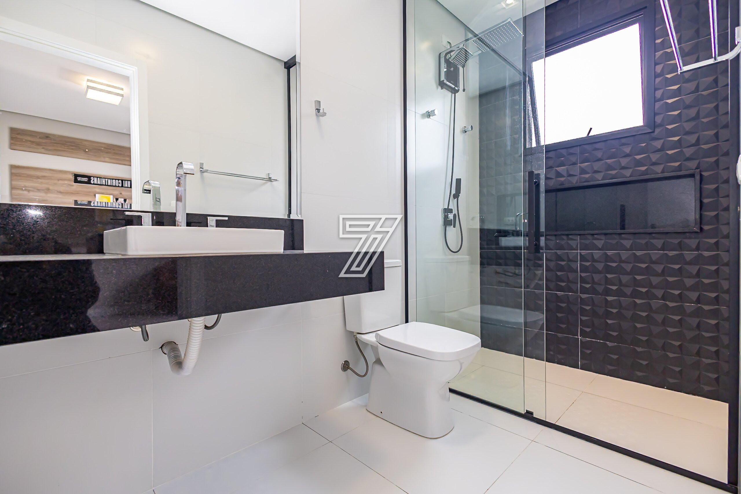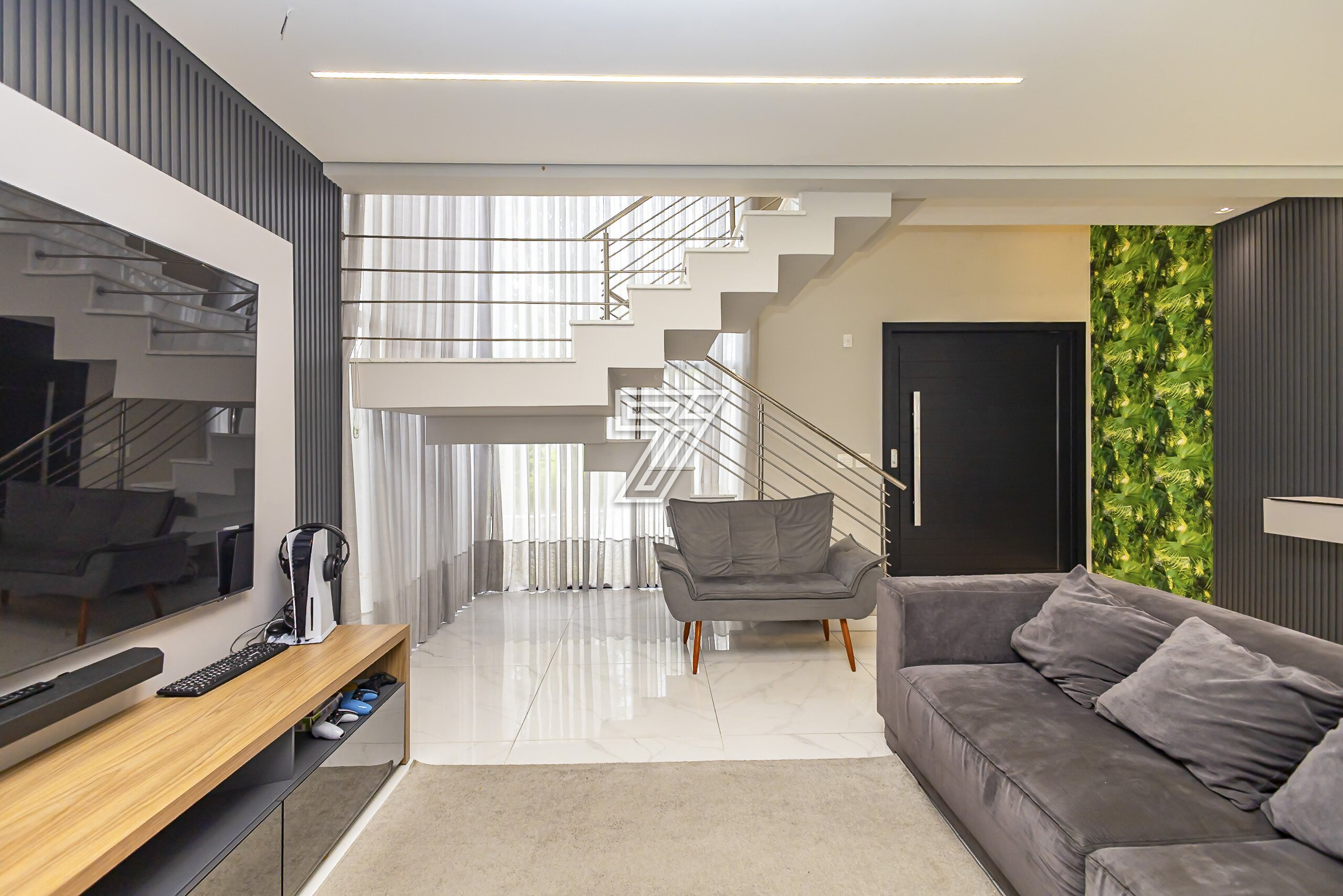 Já no segundo pavimento são três amplas suítes com muita iluminação e um home office que também pode tornar-se dormitório.