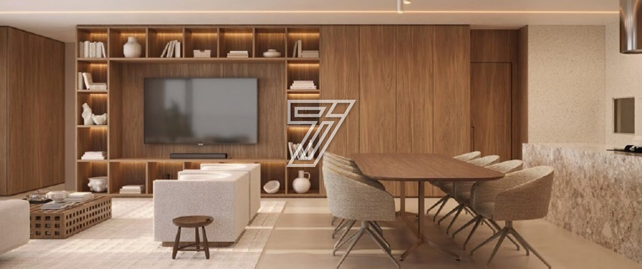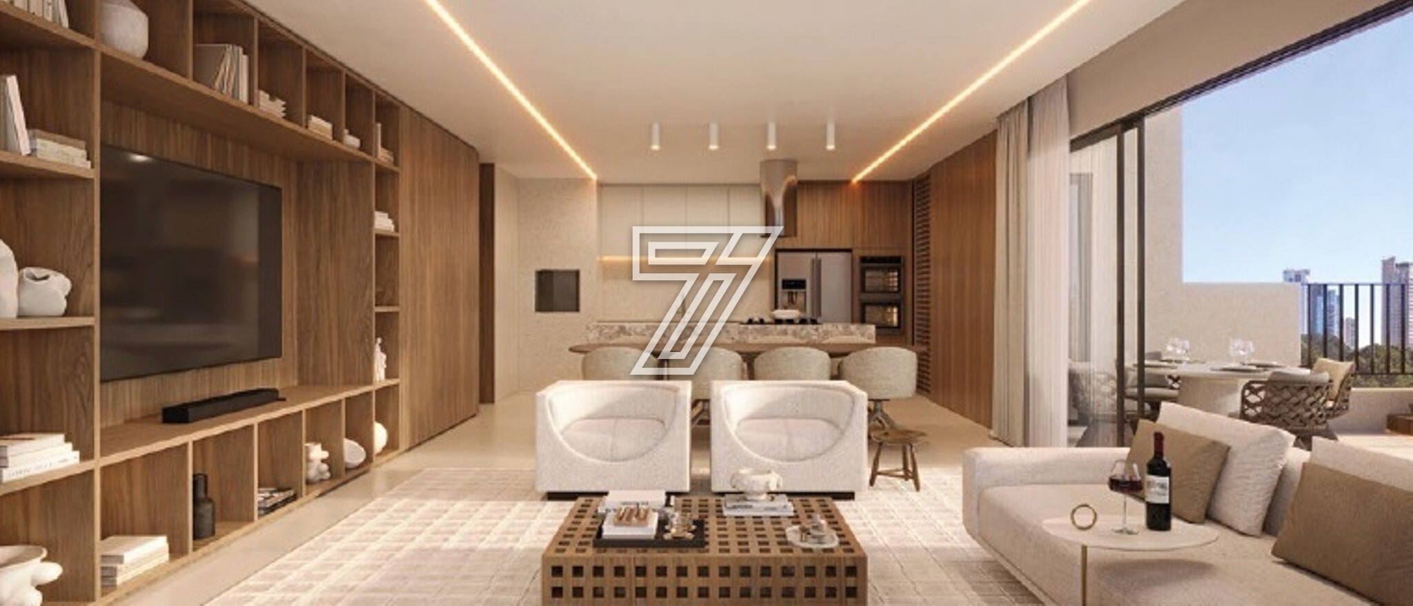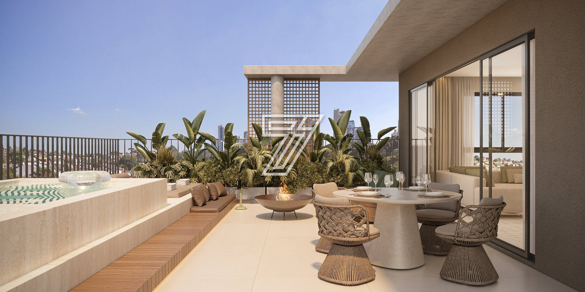 198,14m² de apartamento + 48,83m² de terraço = 243,97m² privativos