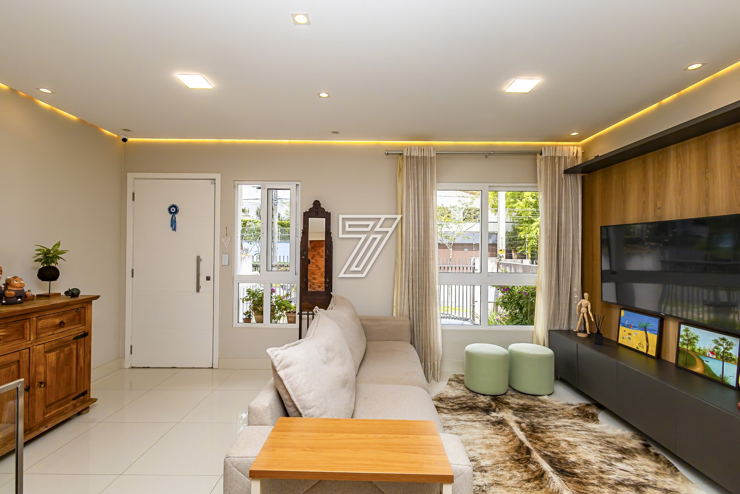 Charmoso e acolhedor sobrado de rua, situado no bairro Bom Retiro, em frente ao Sindicato dos Policiais Penais do Paraná. Conta com uma decoração acolhedora, atmosfera segura, e bela vista para a Serra do Mar. No térreo, sala de estar e jantar com cozinha integrada, ampla lavanderia, lavabo e área externa para churrasqueira, varal, e pet. No pavimento superior, suíte master mobiliada com sacada e banheira, quarto do adolescente mobiliado, e escritório mobiliado em um dos quartos com roupeiros extras. No pavimento superior, amplo ático com possibilidade de ampliação de até 10m² aproximadamente. Todos os móveis planejados já contemplados no valor do anúncio, assim como ar condicionado nos quartos, e sistema de aproveitamento de luz solar. Áreas: térreo: 51,95m², superior: 59,24m², ático: 19,75m² com possibilidade de ampliação para mais 10m2 aprox., e subsolo: 27,18m², totalizando: 158,12m².