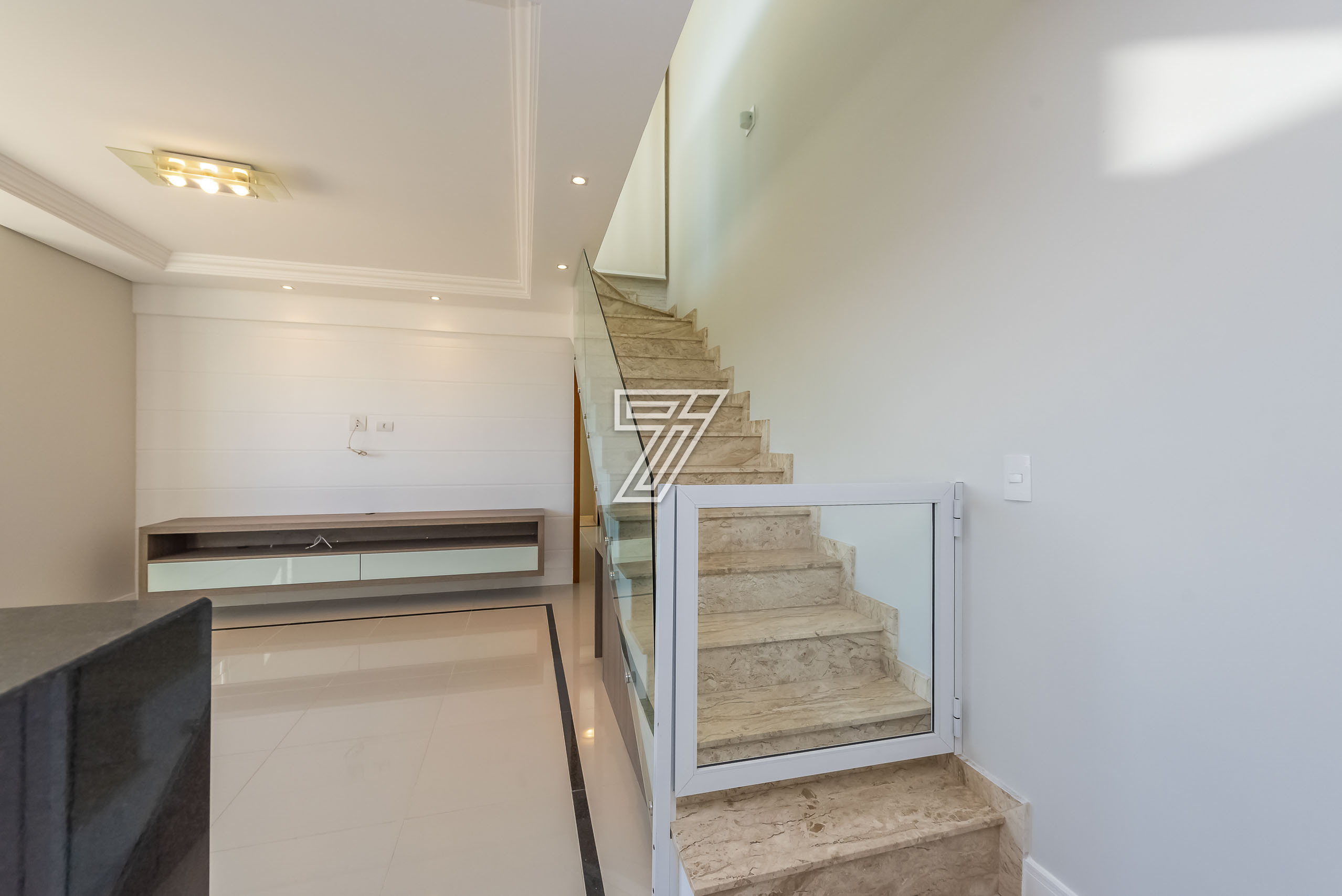 No pavimento inferior a parte íntima com cozinha, lavanderia, sala de jantar e tv, um dormitório, bwc e uma suíte. Existe a possibilidade de fazer mais um dormitório no segundo pavimento.