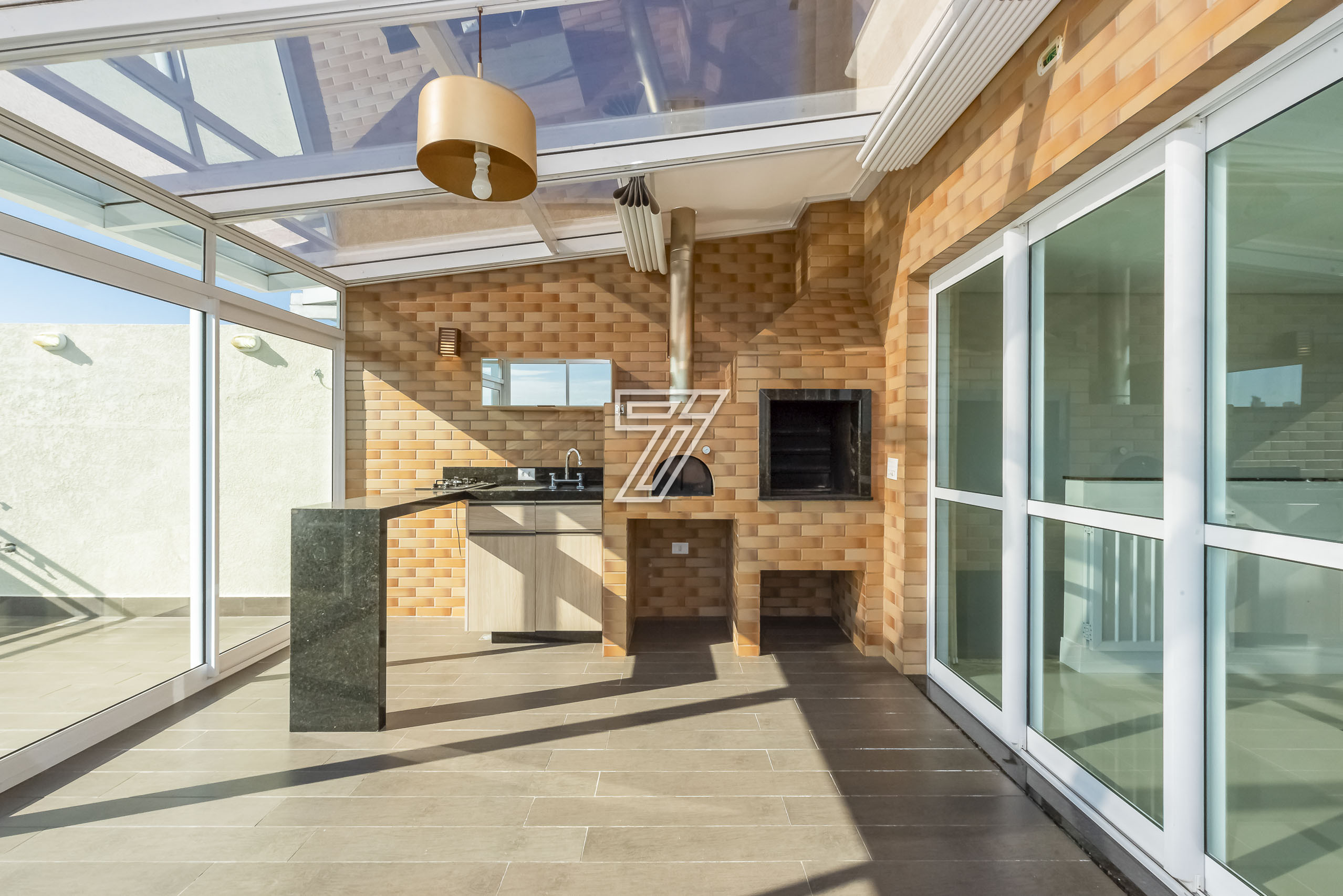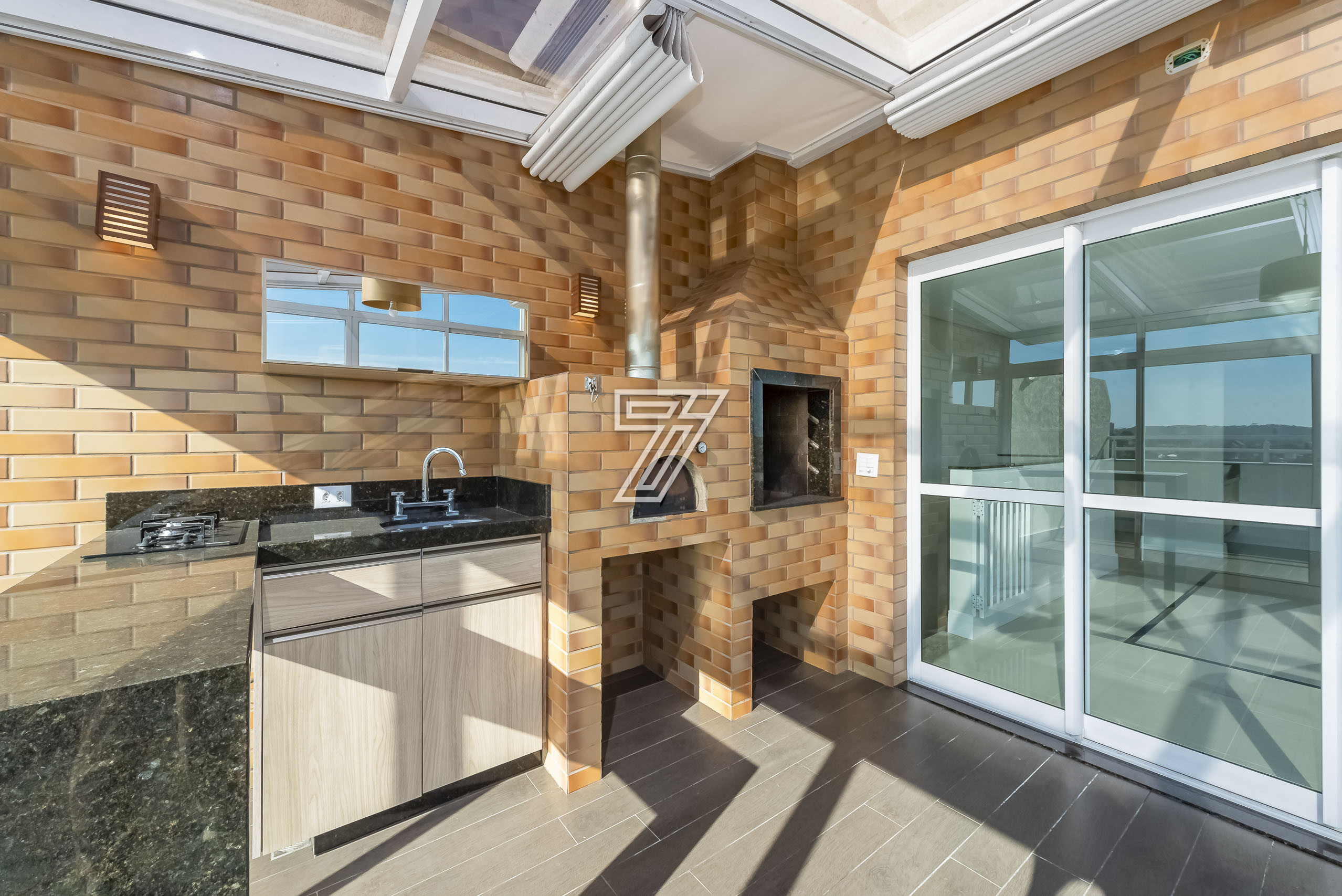 No piso superior, a cereja do bolo, uma área para vc aproveitar os melhores momentos com a família e amigos. Uma churrasqueira à carvão de fazer inveja aos assadores e a vista então, não se fala!!