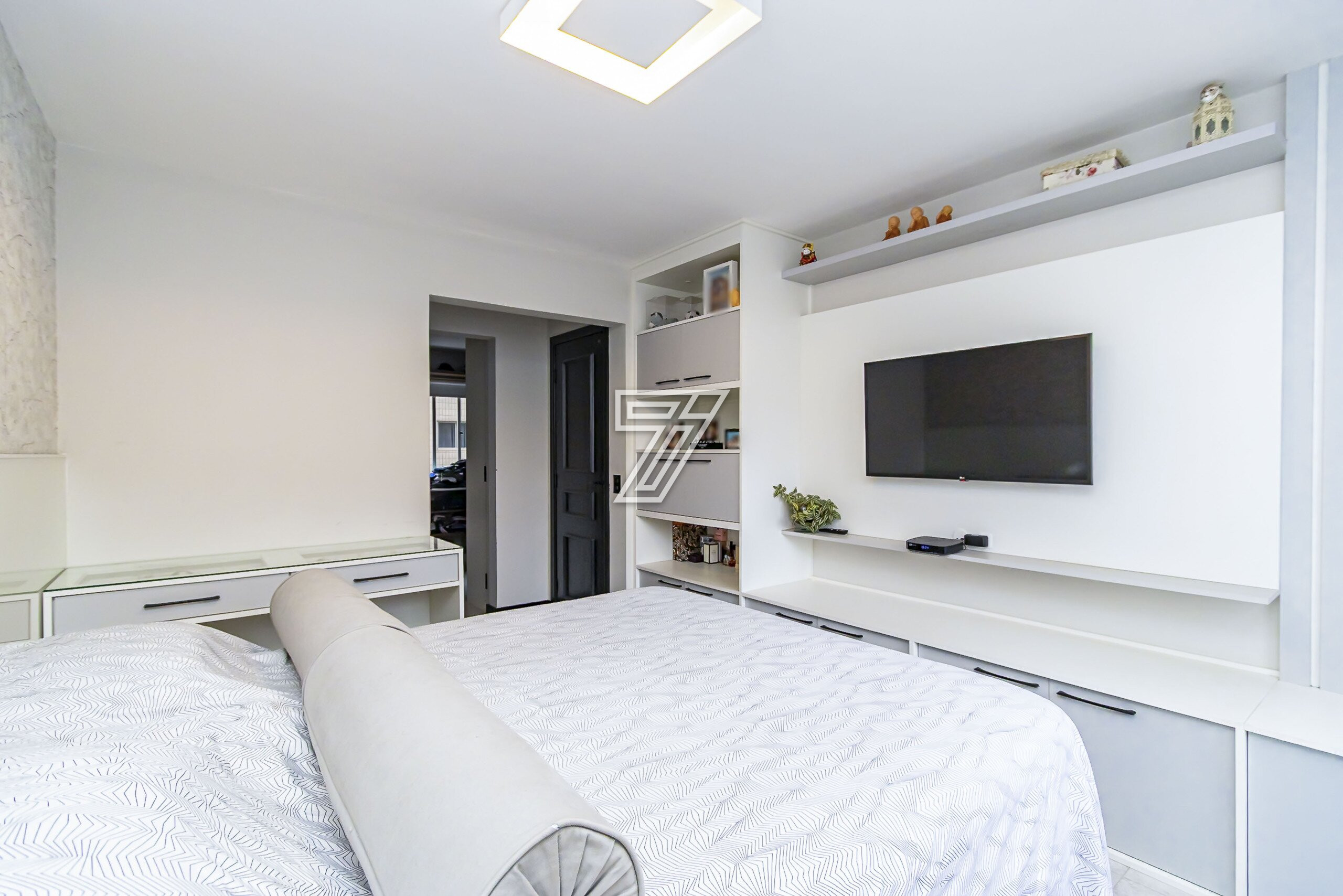 A planta original possui 3 quartos, porém atualmente o apartamento foi configurado com 2 dormitórios, sendo uma suíte ampliada com closet — reversível, caso haja necessidade.