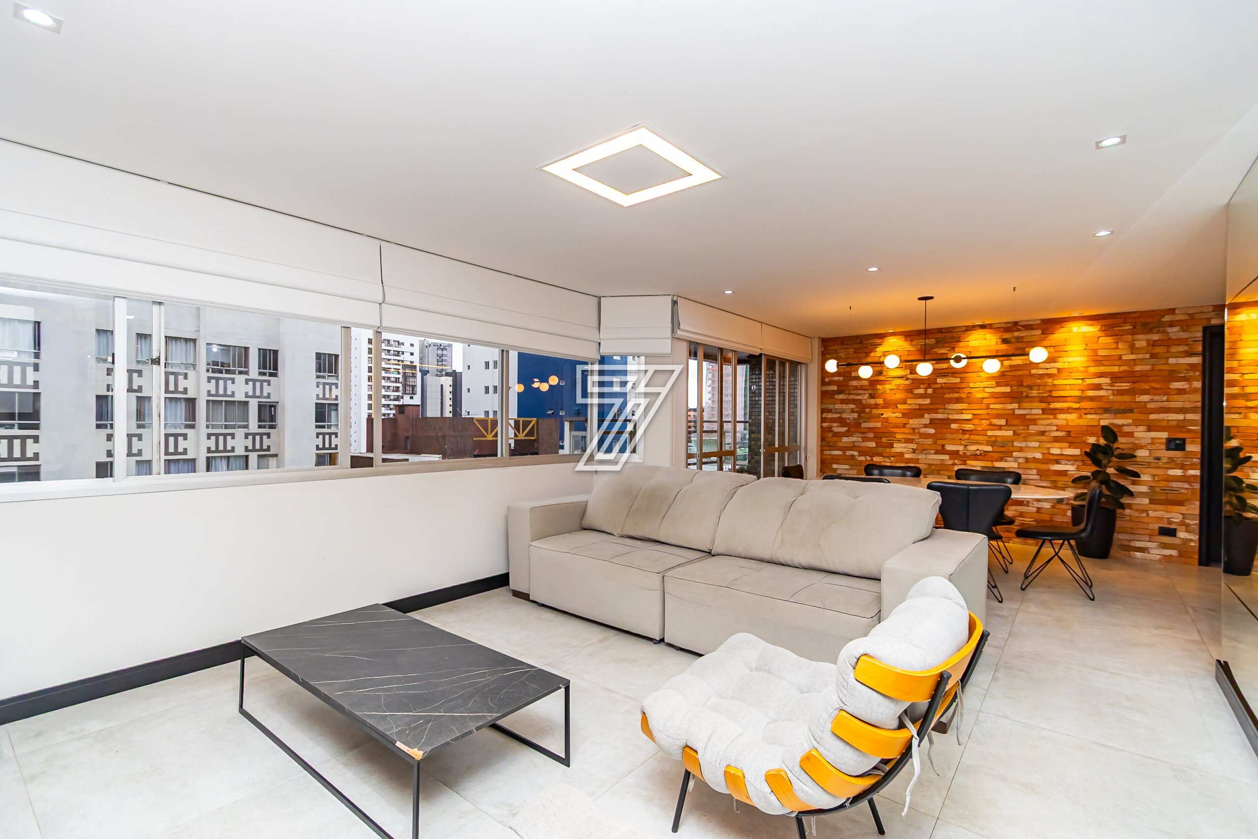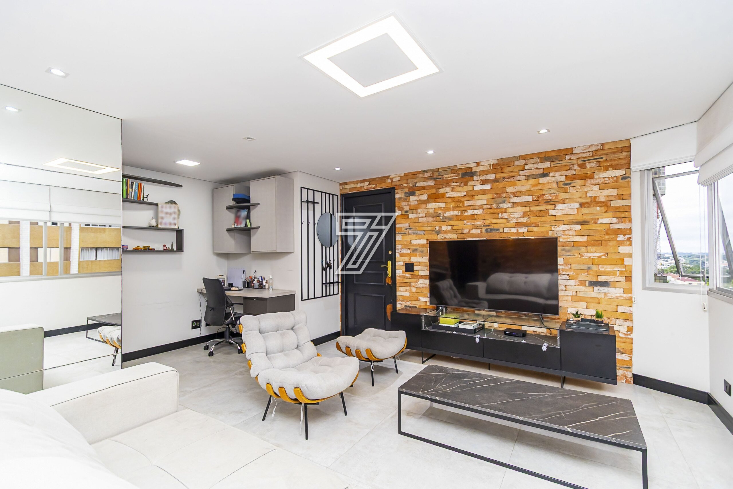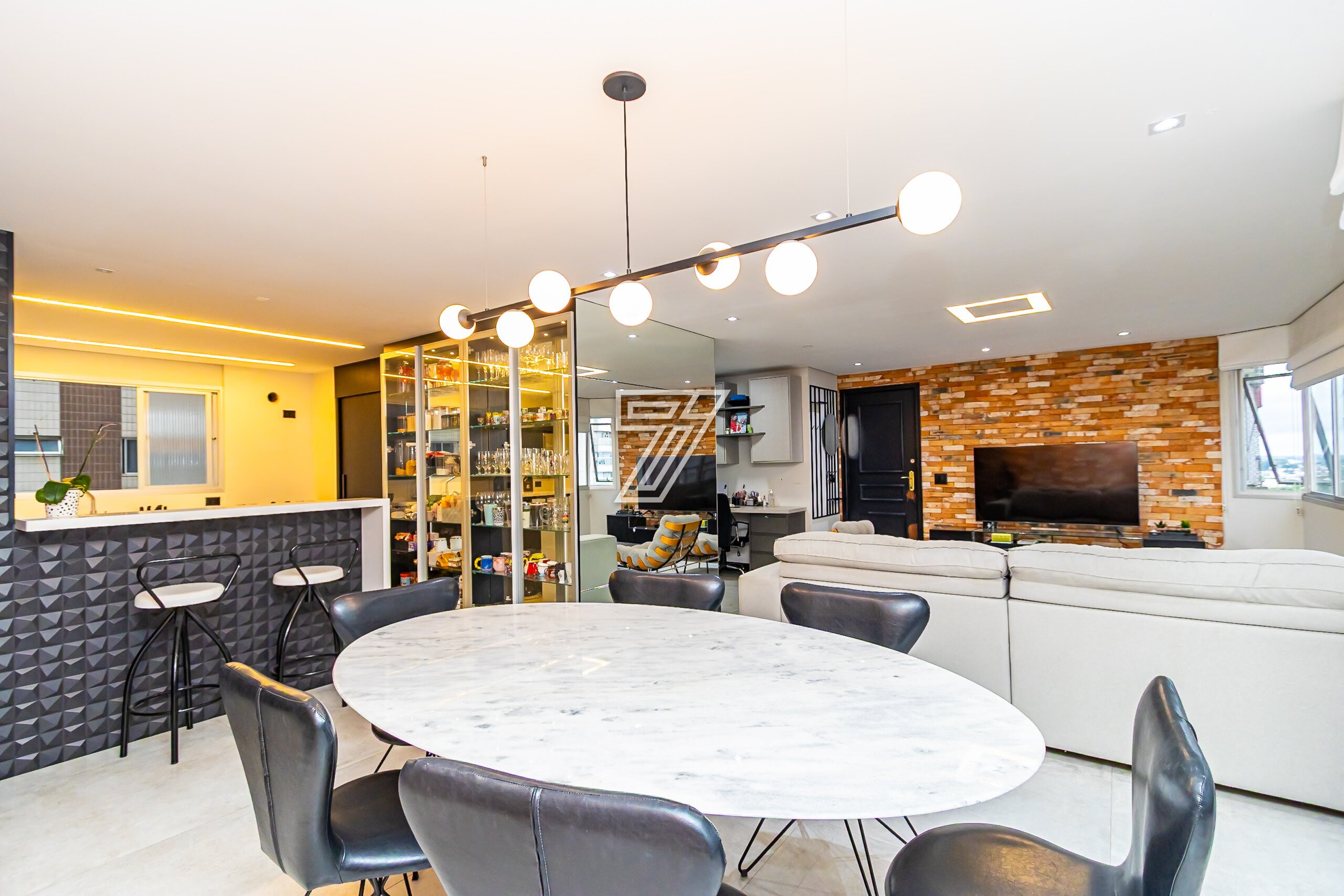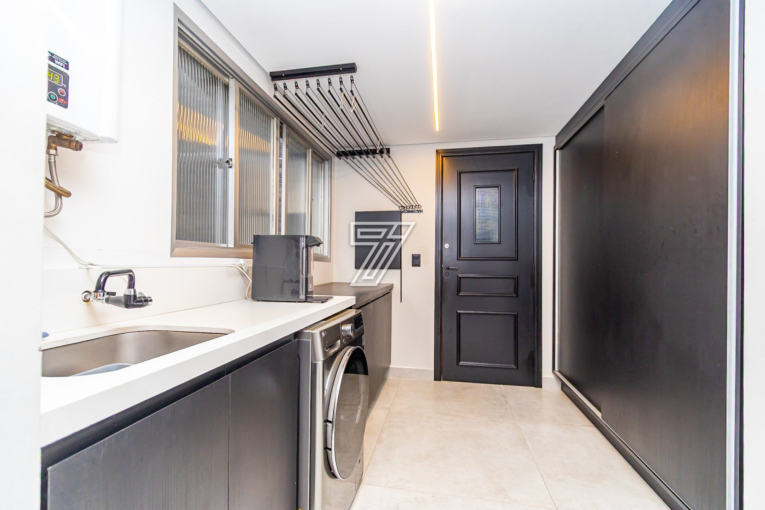 O imóvel conta com: Sala de estar e sala de jantar integradas, Lavabo, Escritório, Cozinha estilo aberta, equipada com armários planejados, Lavanderia, 1 quarto com armários planejados, 1 suíte com closet, armários planejados