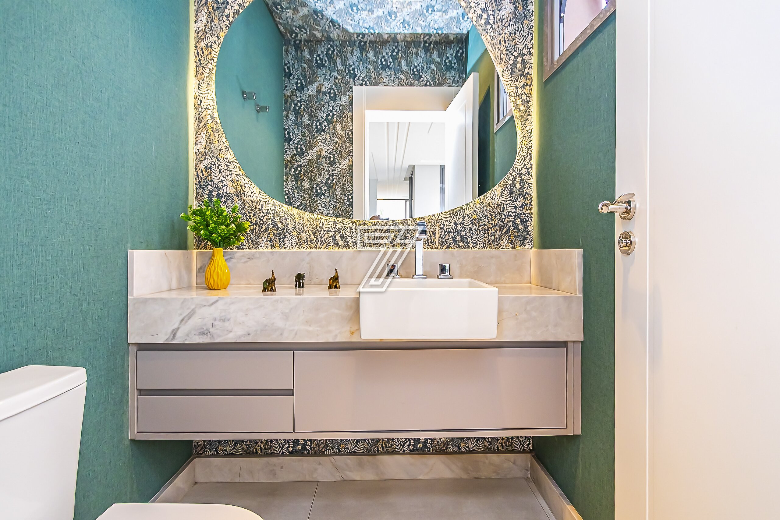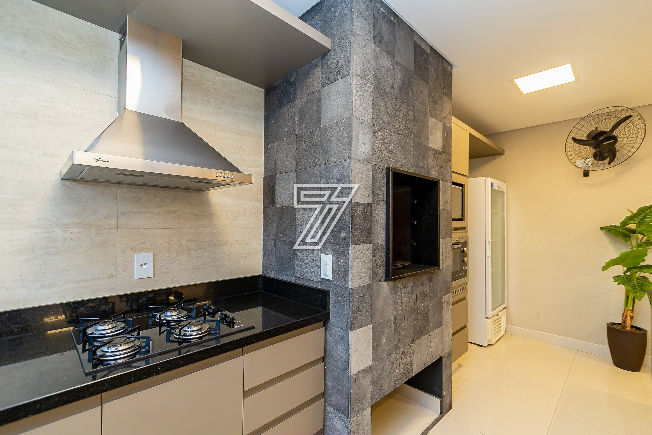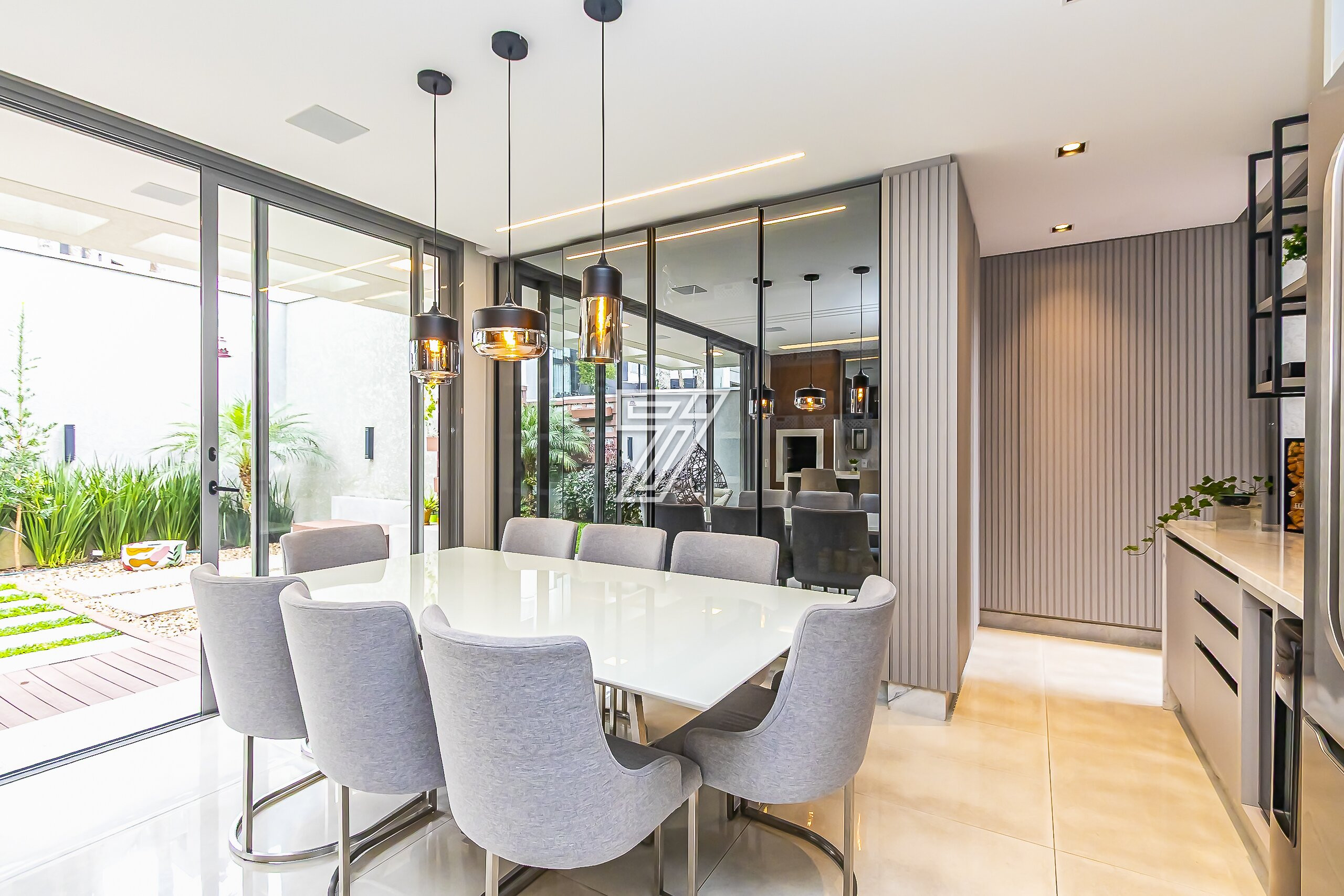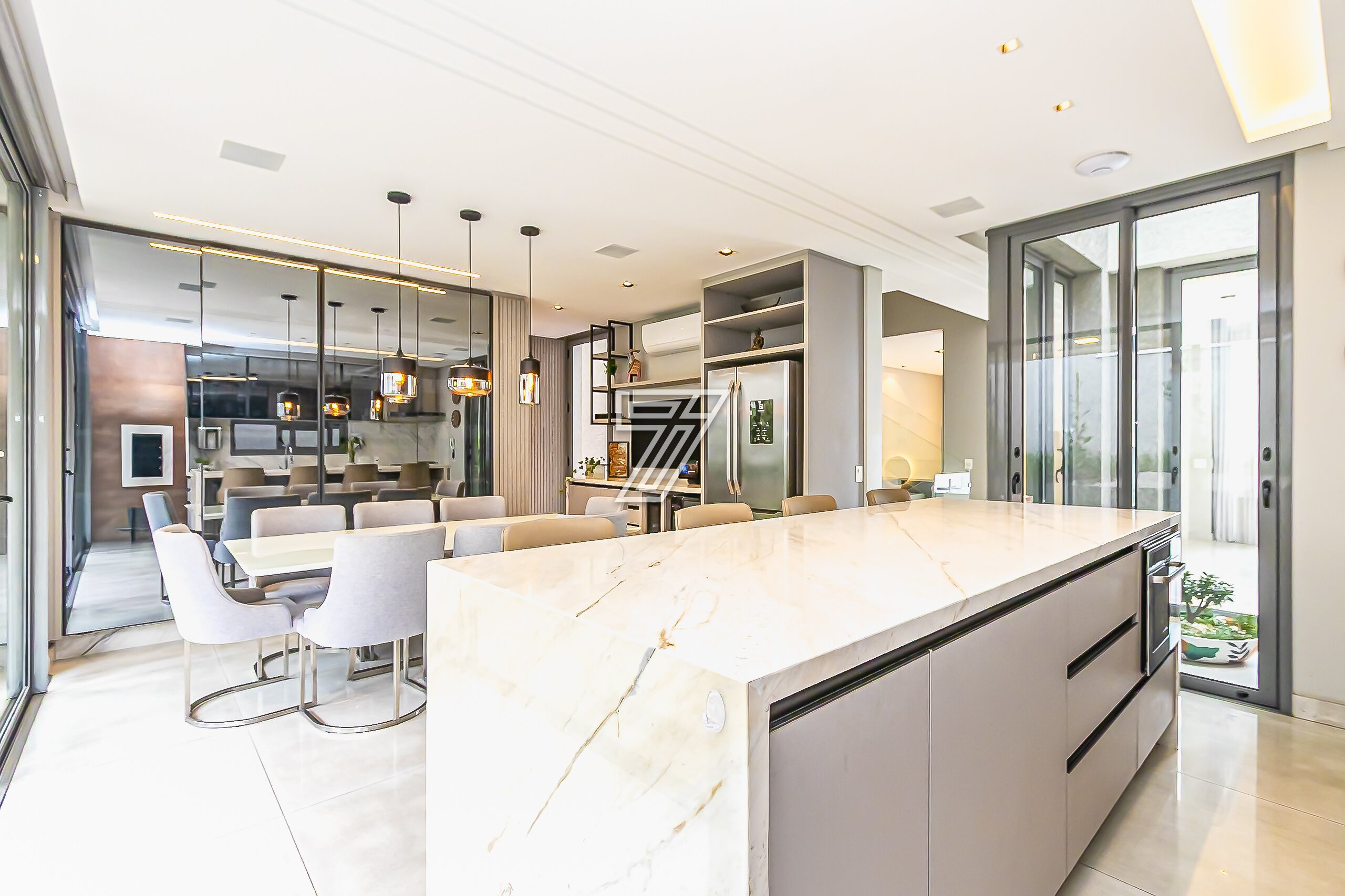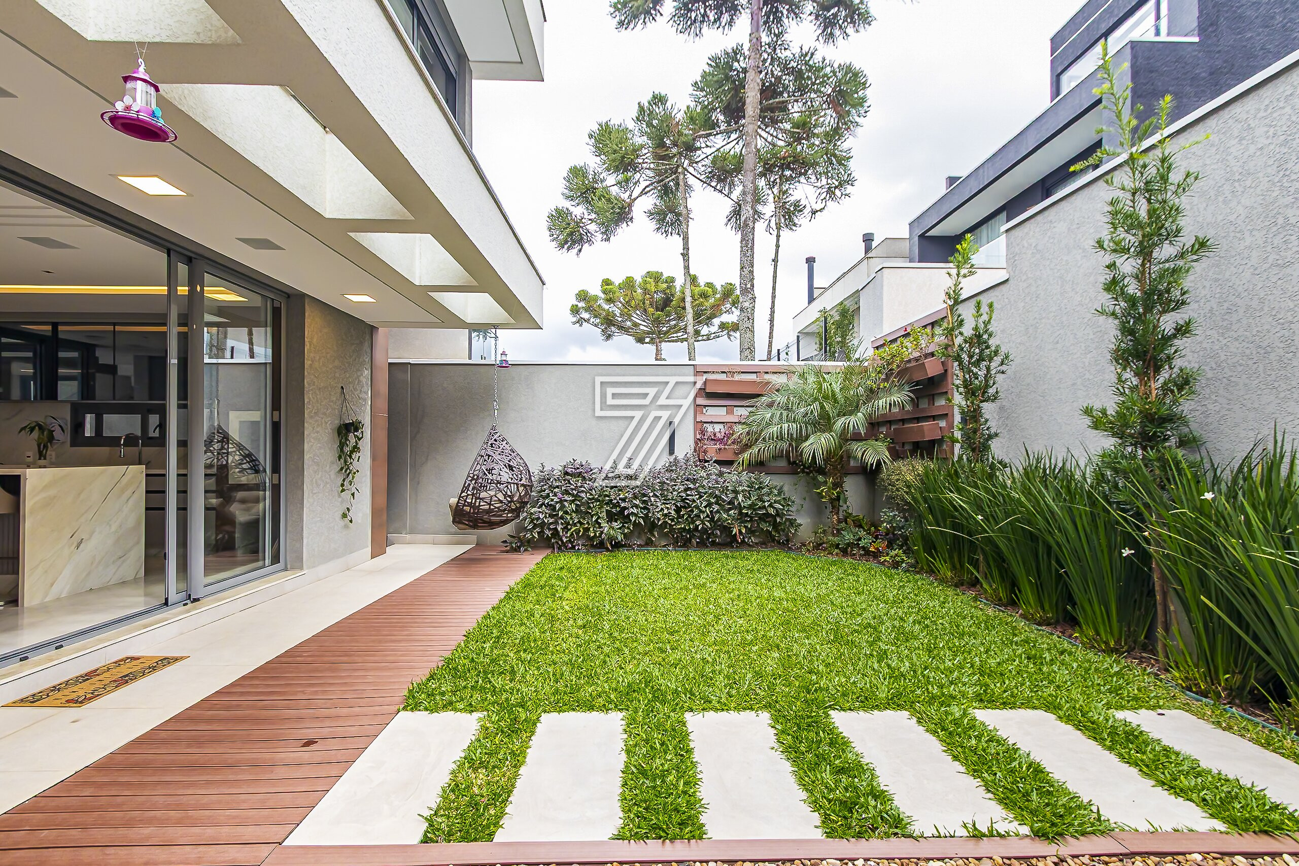 No térreo, ambientes integrados: lavabo e sala de estar, acesso a cozinha gourmet e churrasqueira à carvão com um incrível sistema de som. Nos dias mais ensolarados um terreno para a sua família aproveitar cada minuto.