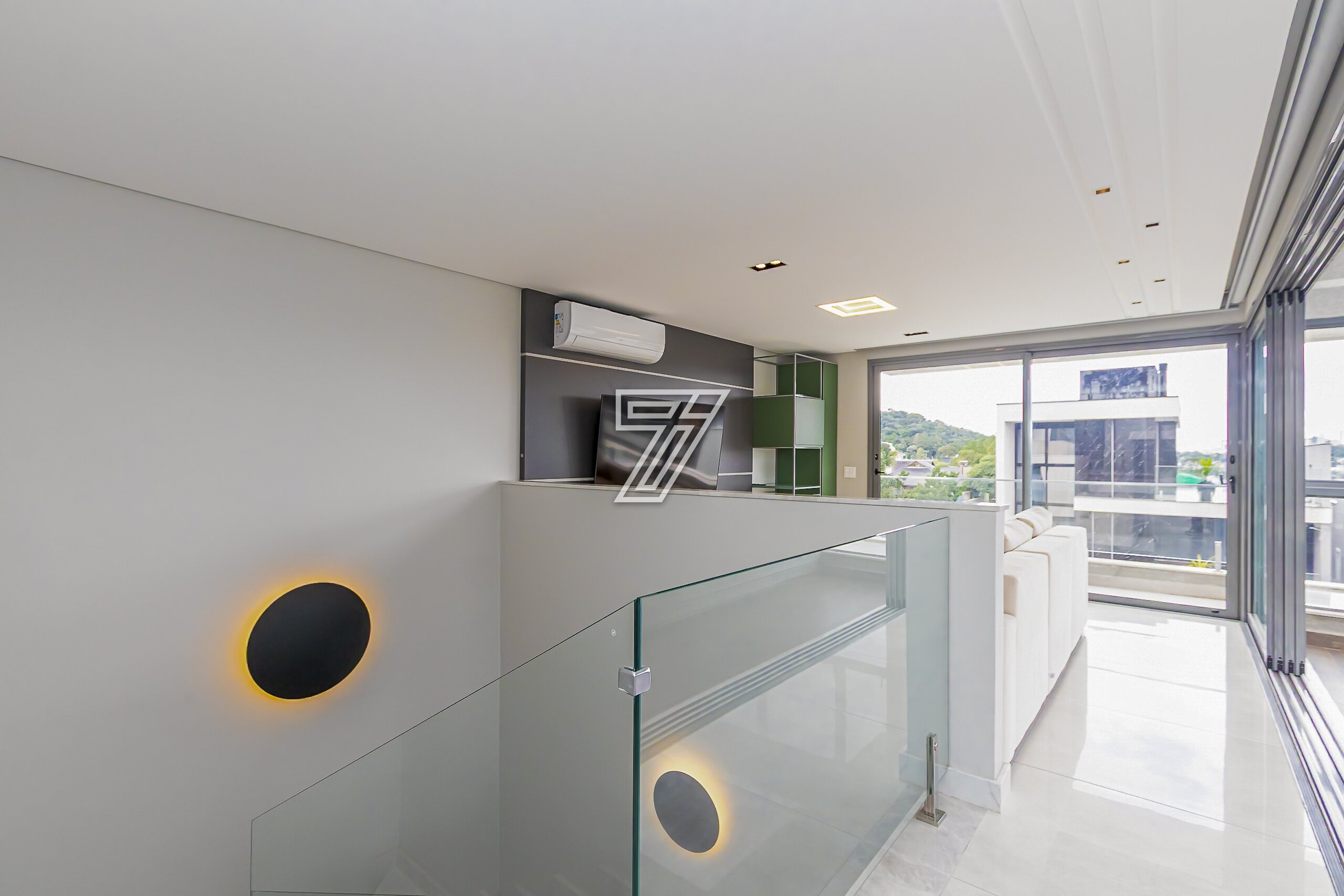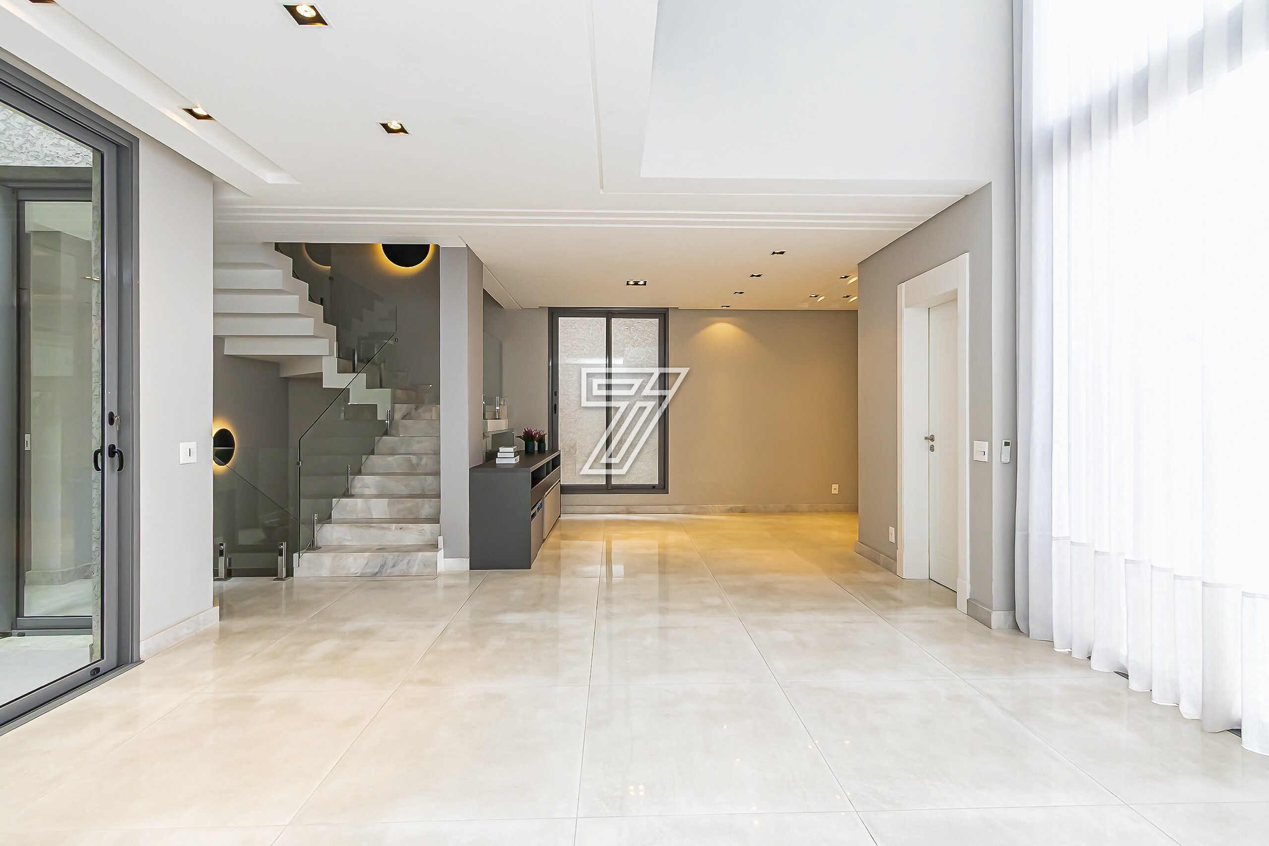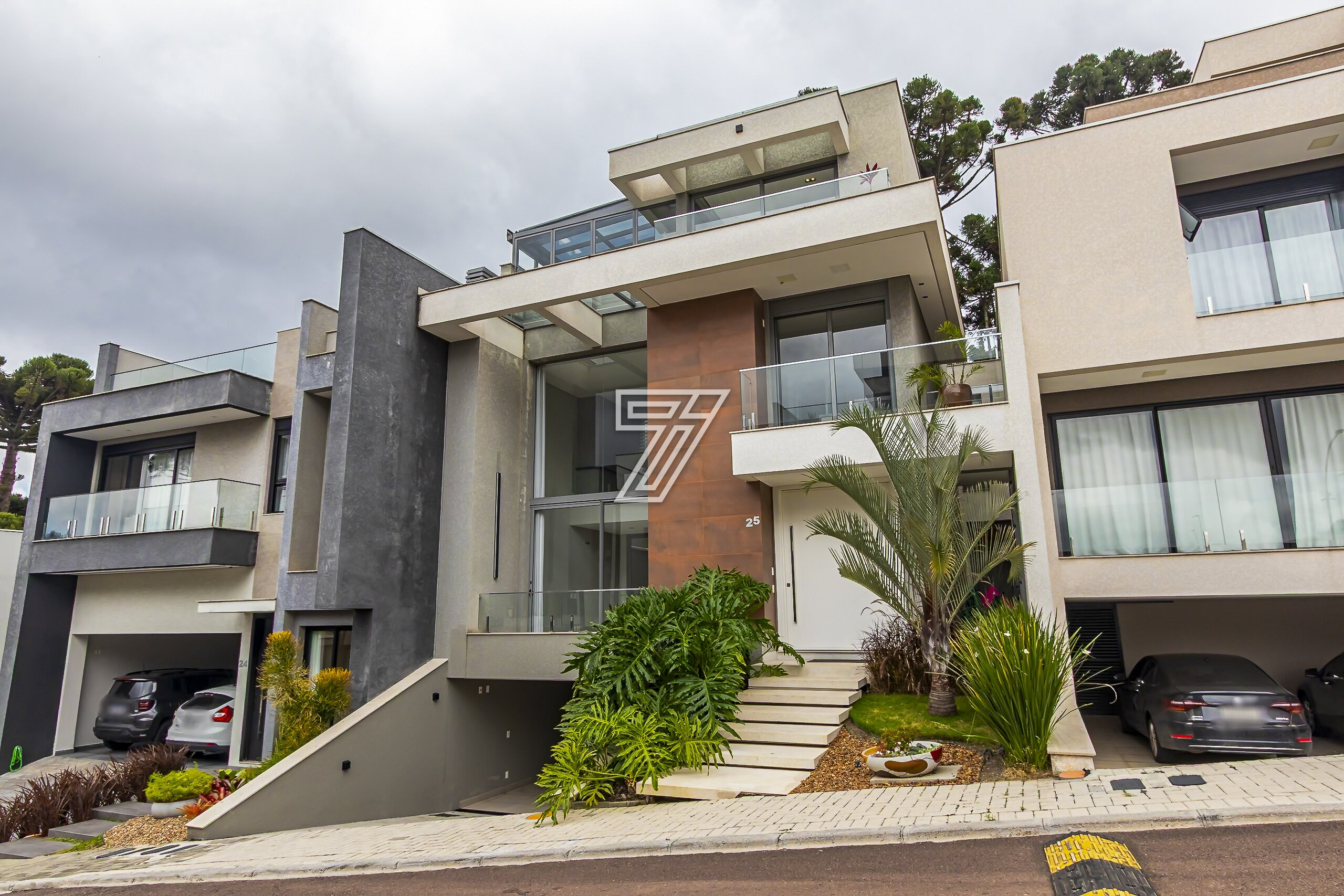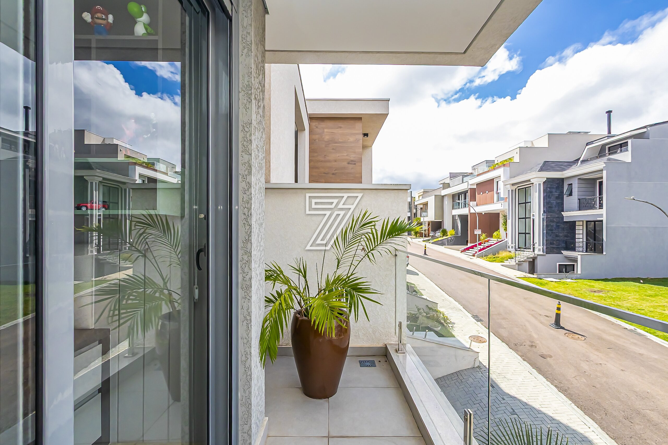Localizada no condomínio Park Boulevard, com 342 m² de área construída nas proximidades do Parque Barigüi e Park shopping Barigui está distribuída em três pavimentos.