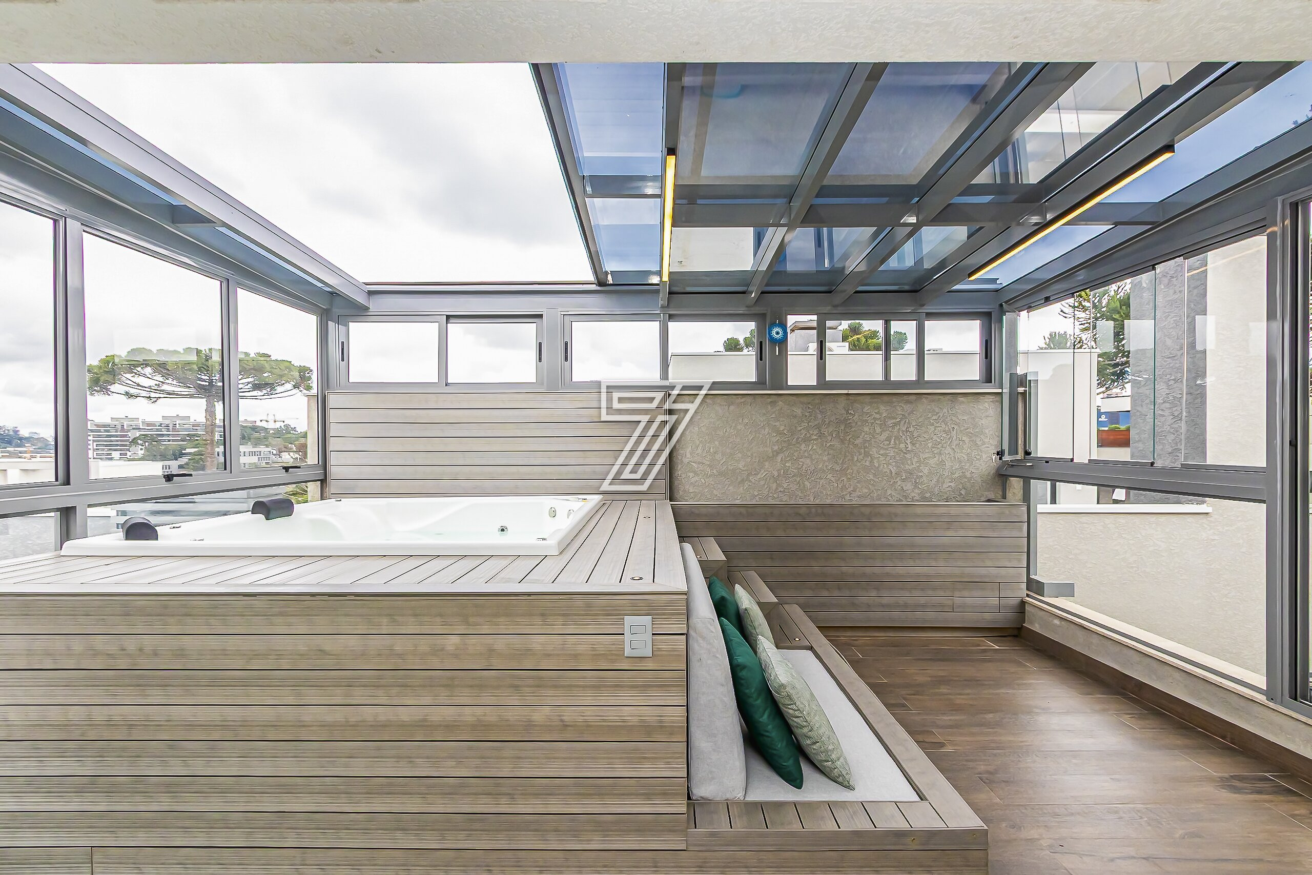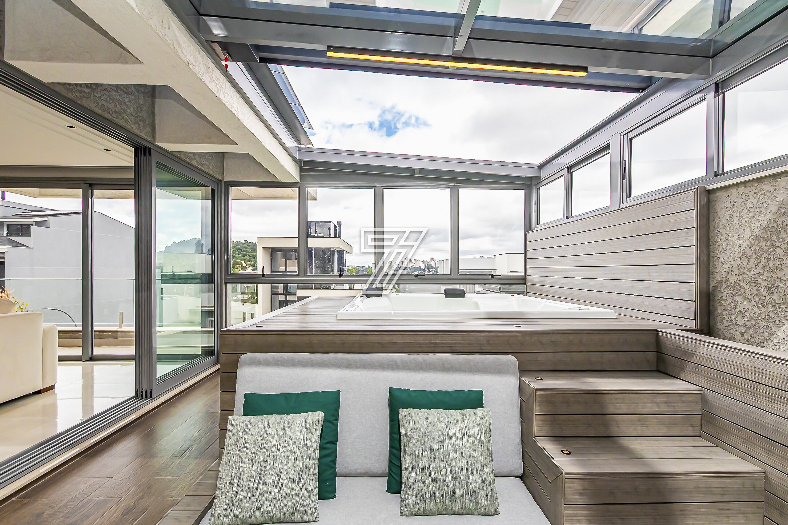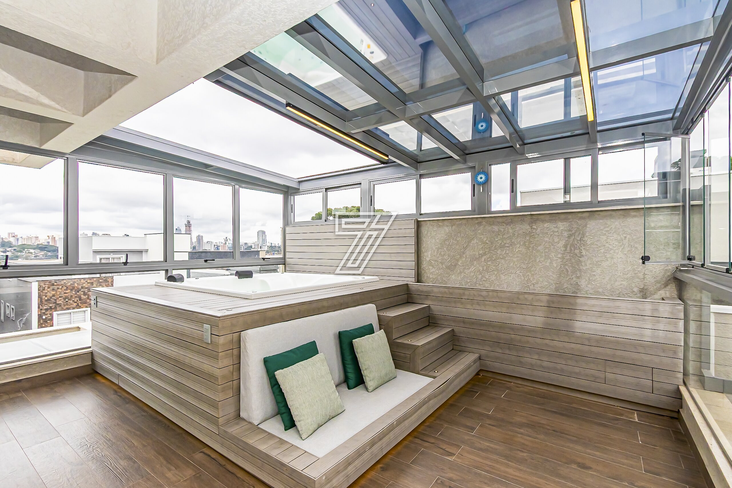 No terceiro pavimento, a vista panorâmica e com direito ao cantinho do lago do parque barigui, possui um banheiro, home theather e uma jacuzzi com teto retrátil para os melhores dias em familia!!