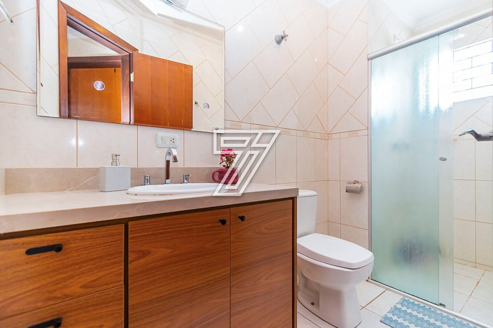 - Banheiro social com tampo em granito.