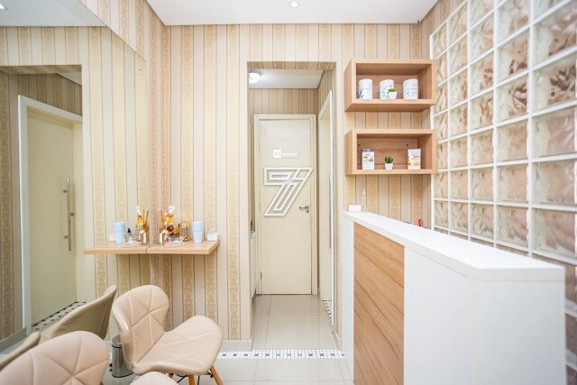 A área coberta de 30,89m² privativos está configurado hoje com recepção com frigobar, bebedouro e 2 cadeiras; copa com armário e ...