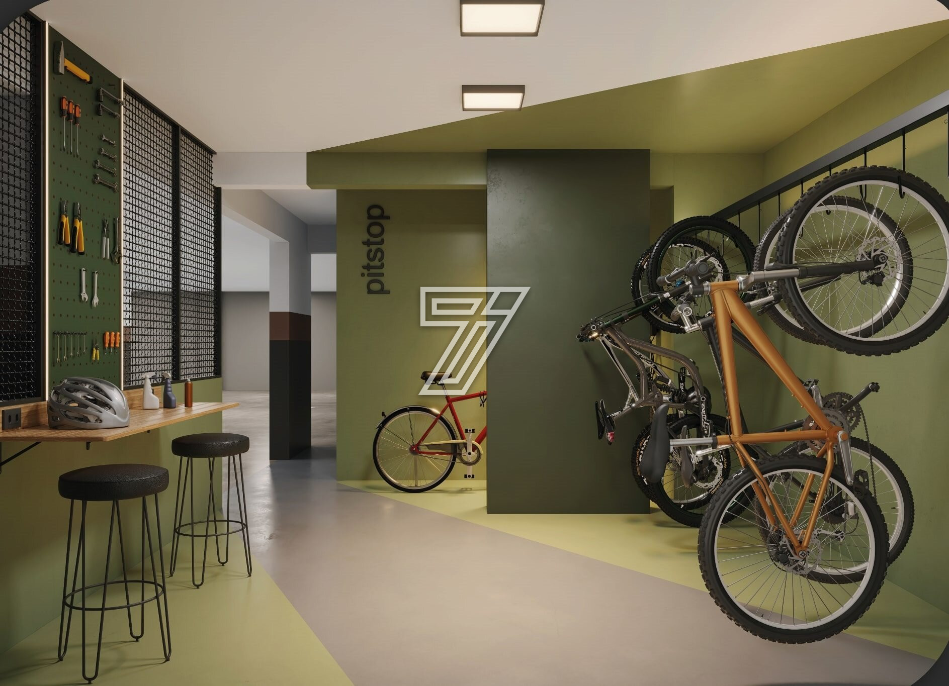 Hall de entrada, Mini market, Central de entregas e delivery, Lavanderia, Salão de festas com lounge externo, Academia, Bike place com oficina, Horta, Coworking, 5 vagas para carregamento de carro elétrico.