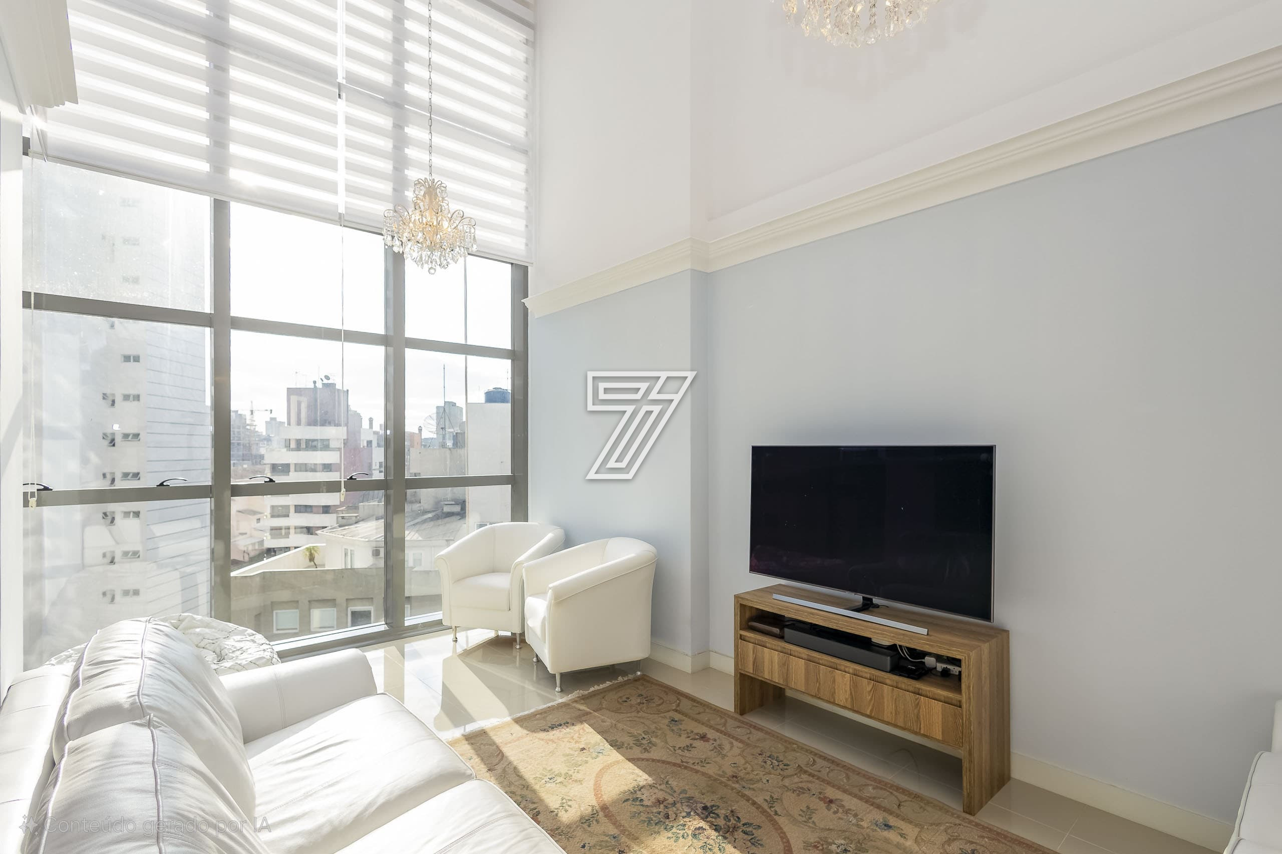2 quartos, sendo 2 suítes, 3 banheiros, 2 vagas de garagem; Móveis embutidos da marca Florense, com eletrodomésticos incluídos, Sala ampla com pé direito duplo, com estrutura para mezanino; Piso aquecido nos banheiros das suítes; Ar condicionado instalado em todos os ambientes; Aquecedor de passagem; Churrasqueira privativa.