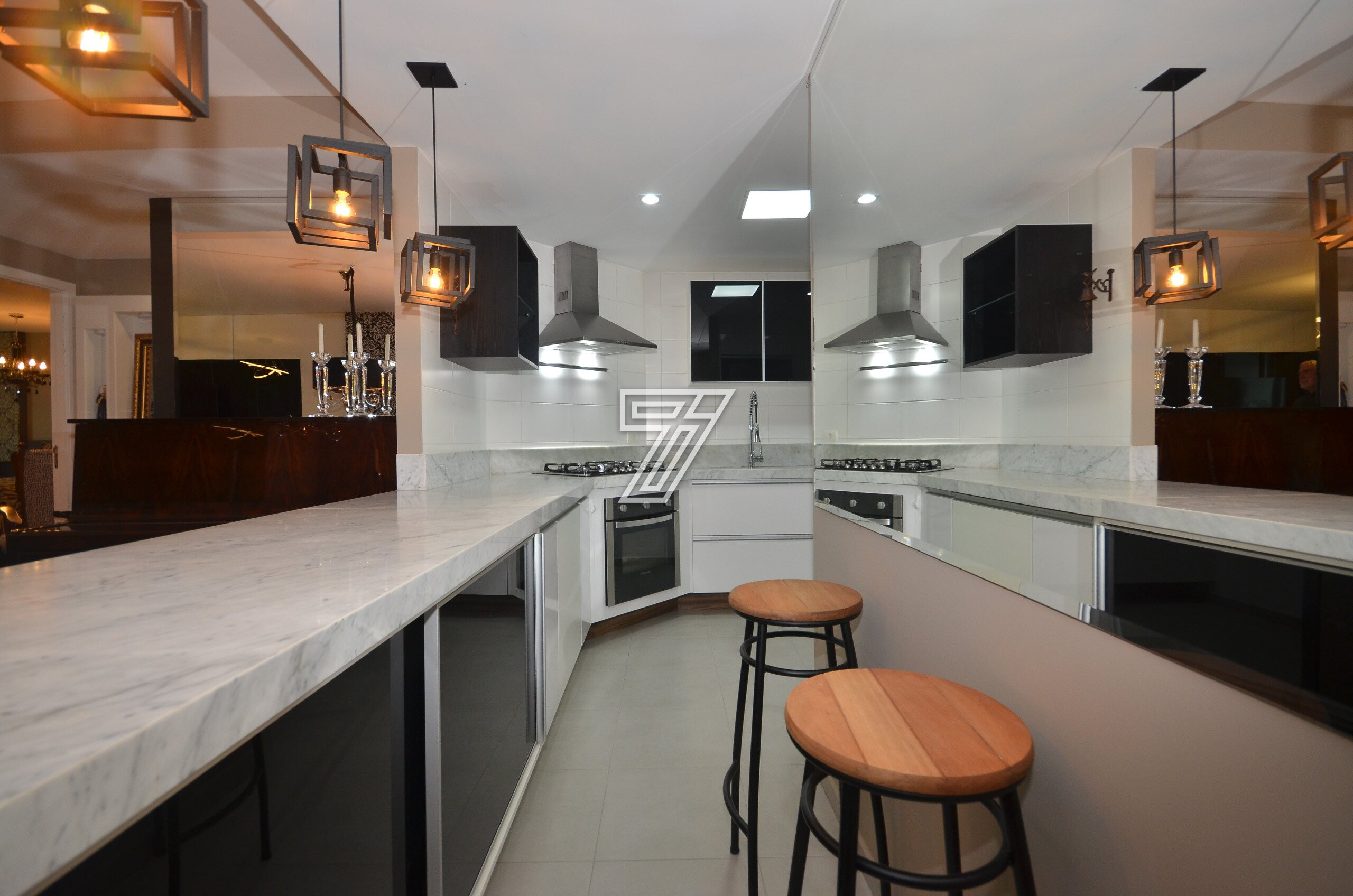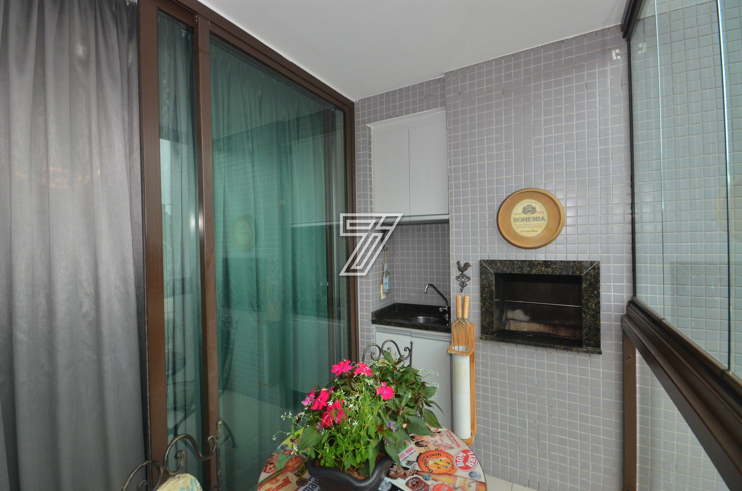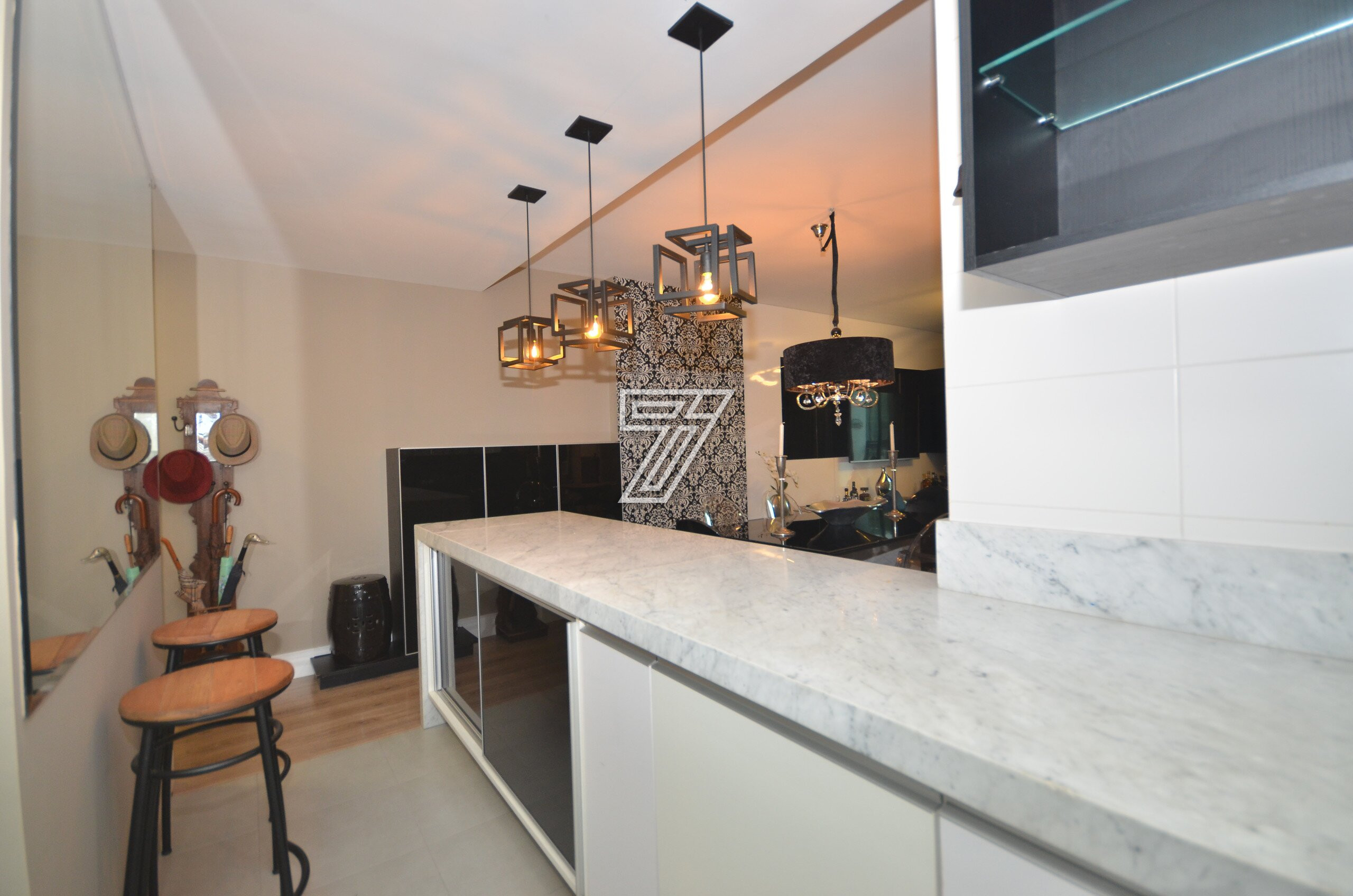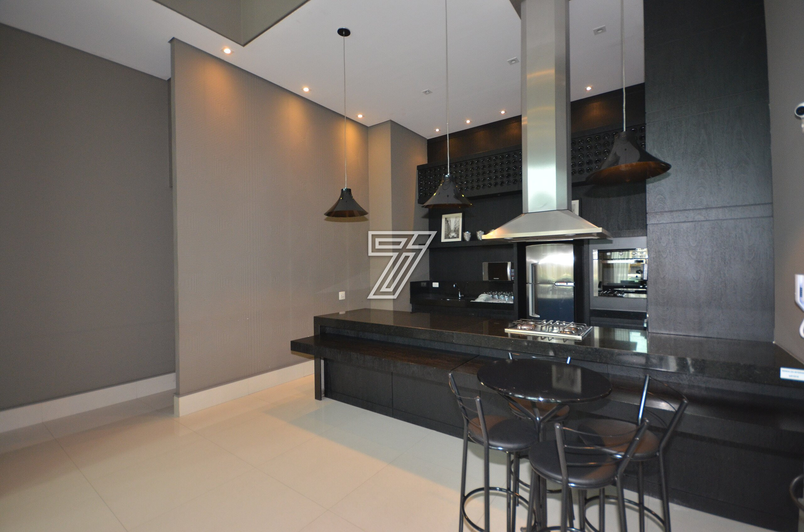 Sala de estar com ar condicionado, sacada ampla fechada com vidro com churrasqueira a carvão, sala de jantar integrada, cozinha em conceito aberto com balcão americano, lavanderia separada e lavabo.