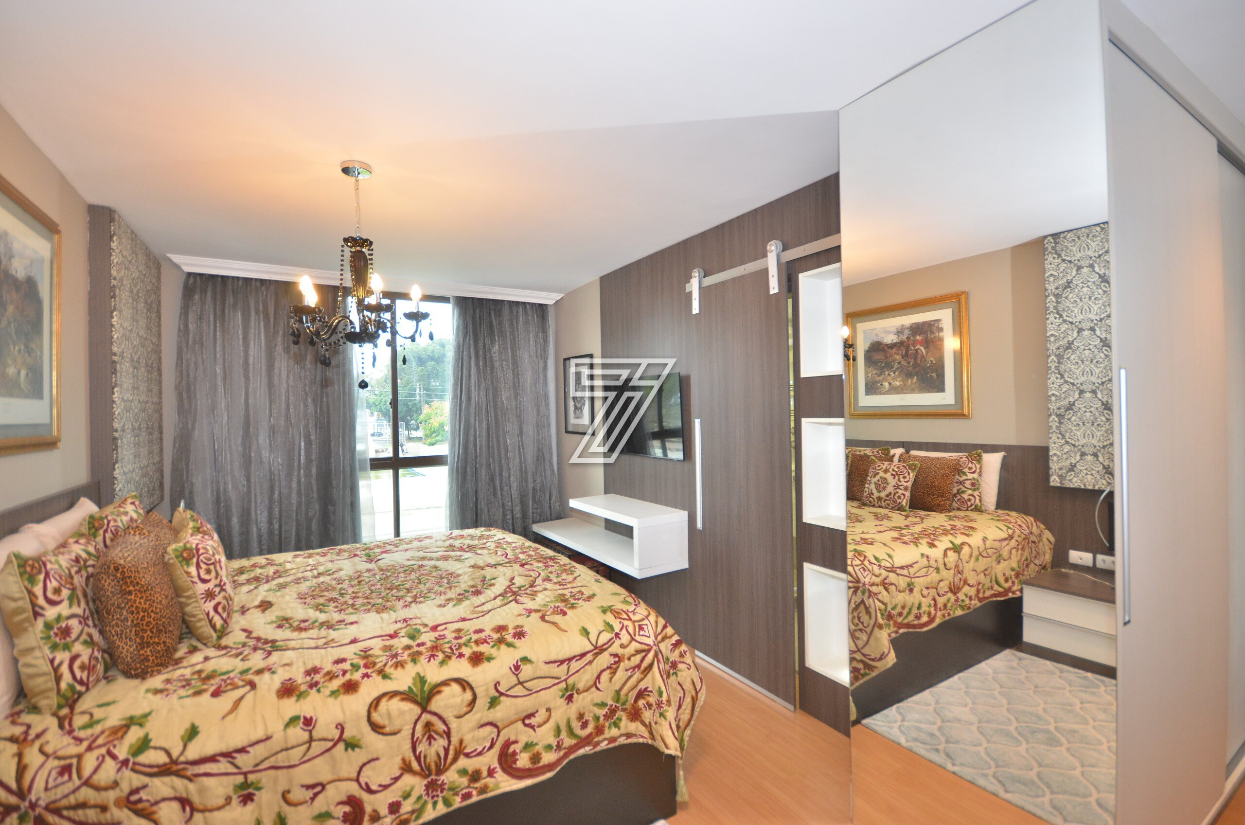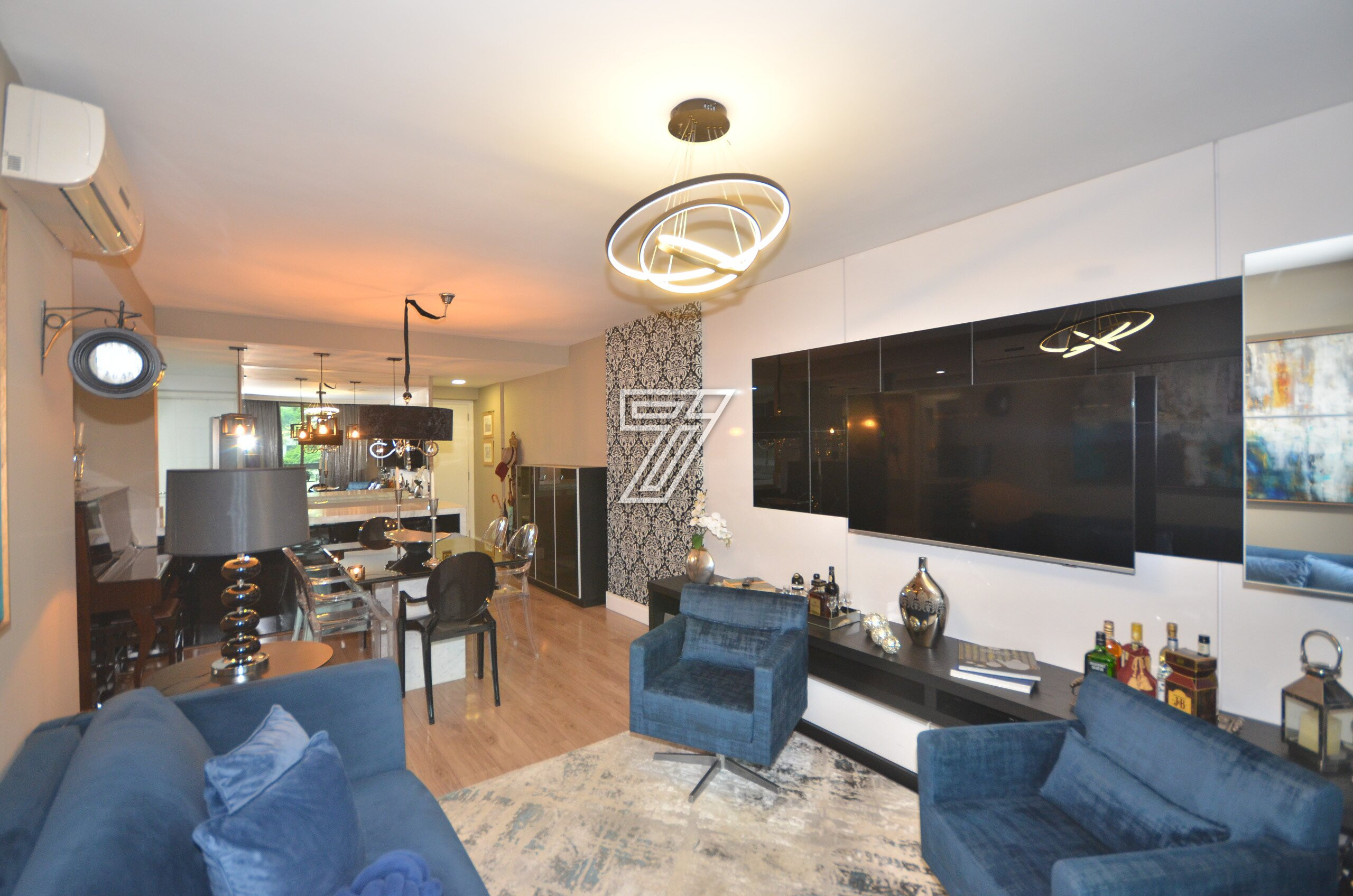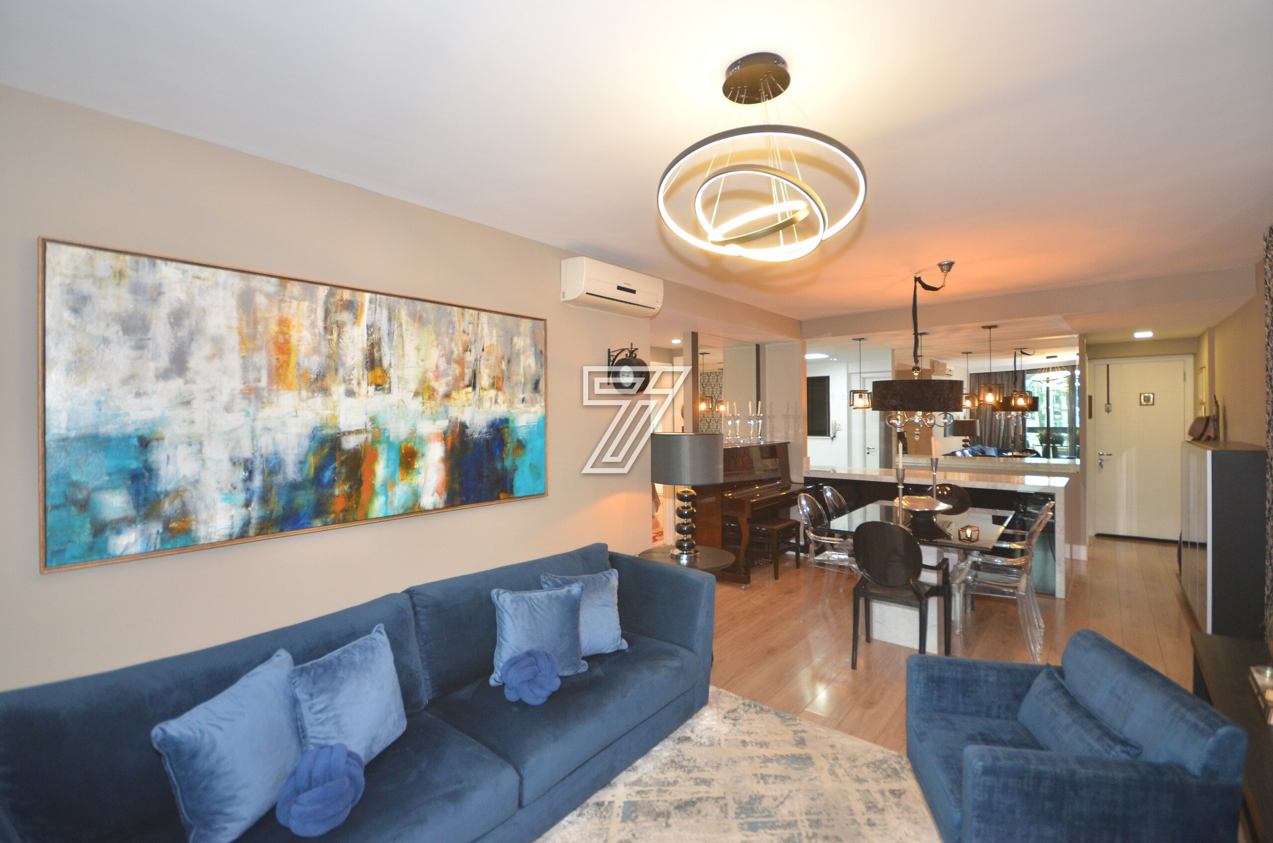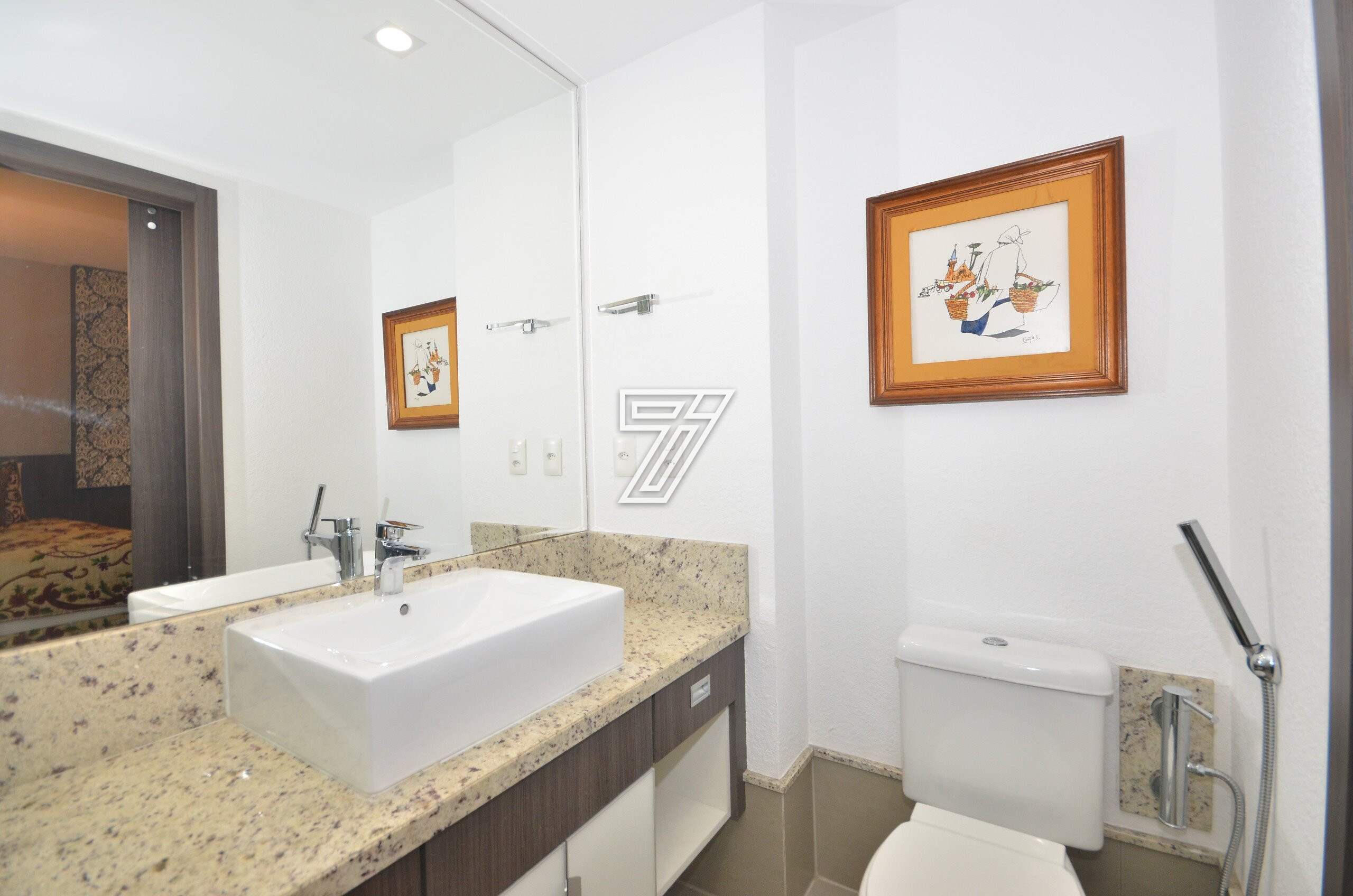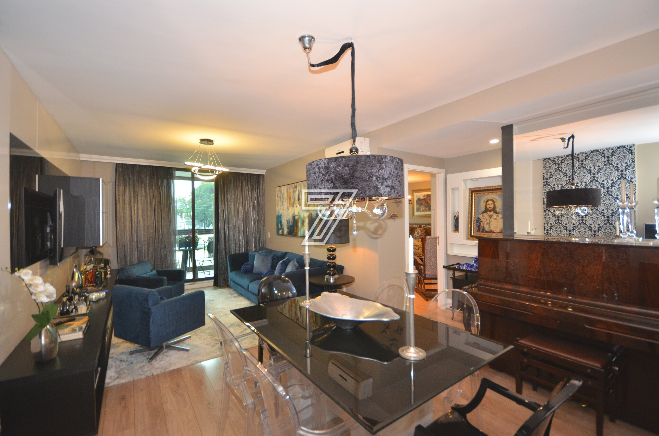 Com seus 105,33 m² privativos, este apartamento mobiliado e decorado possui ambientes integrados, amplos e iluminados.